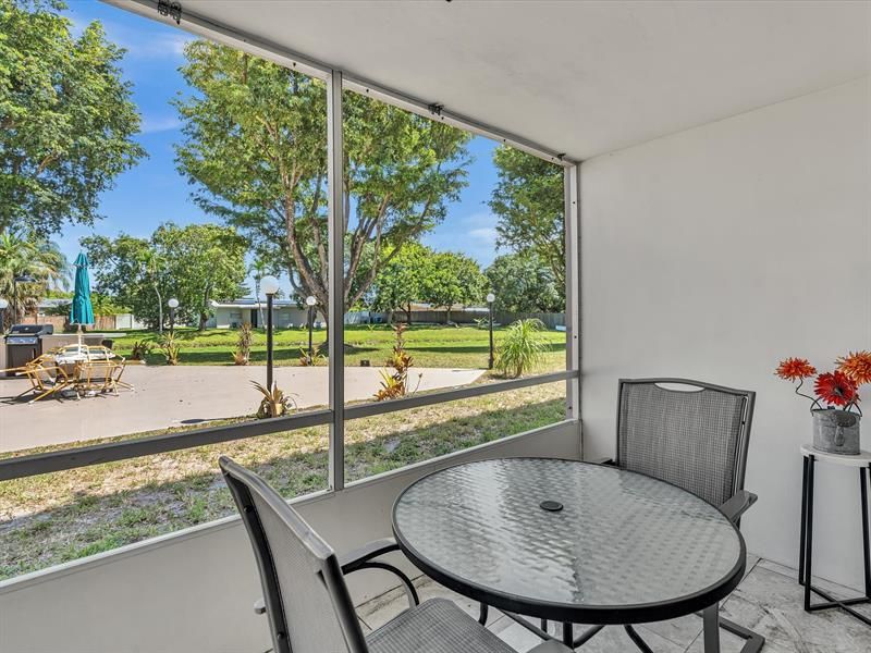 Beautiful first floor, corner unit in the Lauderdale Oaks community. This 1-bedroom, 1-bathroom condo with no special assessments, features a spacious Florida room with direct access to a back patio perfect for lounging, sunbathing, and hosting with BBQs and seating areas. The condo boasts stunning water views and is located in a highly desirable 55+ community. Rentals are allowed after two years of ownership, with specific conditions. The property includes low HOA fees and fantastic amenities, making it a must-see opportunity.