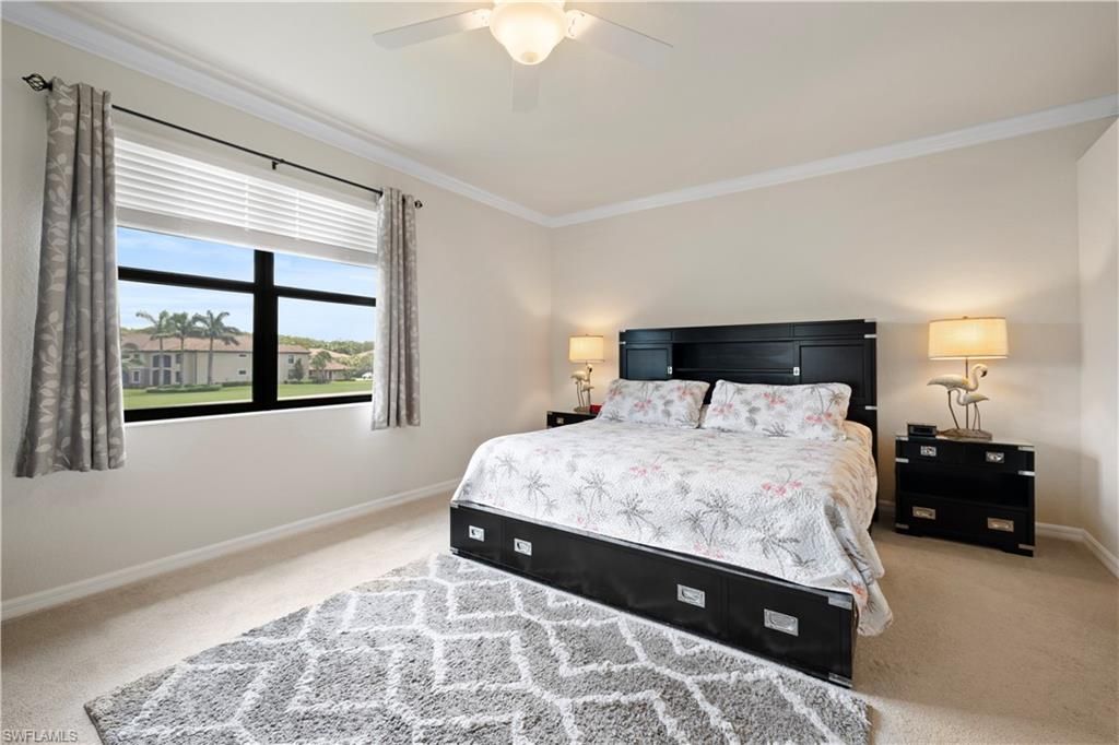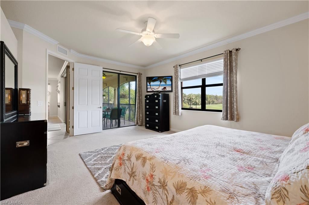WELCOME to Beautiful Bonita National Golf & Country Club. This Exquisite Designed 3 BR 2 BATH Social Membership Coach Home offers A breathtaking view over looking the Lake of 8th Green & 9th Fairway. Relax while sipping your morning coffee on the Spacious Tiled Lanai.Walk into the Living Room with exquisite hand split stone on 2 accented walls . Dining room has custom Plantation Shutters. Tile flooring throughout living areas.Master suite w/2 walk-in re-designed closets that feature built-in shelves ( one in Cedar ). Leading into the Master Bath w/ soaking tub ,double sinks and NEWLY REMOLDED SHOWER.A Linen closest was added in the private commode. New carpeting in 2nd & 3rd Bedrooms each with plantation shutters ,walk-in closets , and 55” wall mounted TV’s. Granite countertops in kitchen with GE Stainless Steel Appliances. The Tandem section of garage is insulated and enclosed w/cedar which makes for an air conditioned workshop with many added outlets. An abundance of Amenities included , Club House Dining, Resort Style Pool w/ Bar & Grill, additional 3 Satellite Pools,8 Har-Tru Tennis Courts, State of Art Fitness Center w/ Pickleball & Bocce Ball Coming Soon.Bonita National is located just minutes from I-75 RSW Airport,Endless Shopping Malls and the BEAUTIFUL BEACHES OF SOUTHWEST FLORIDA..