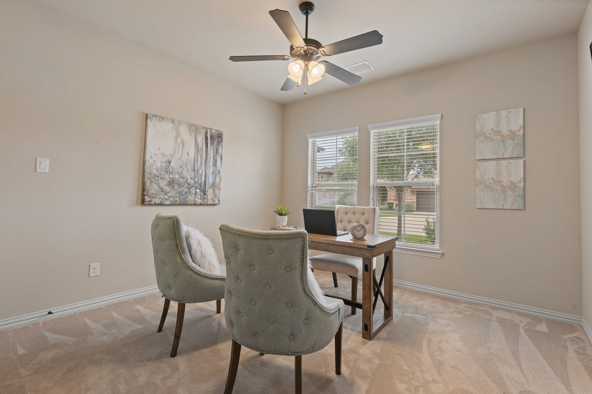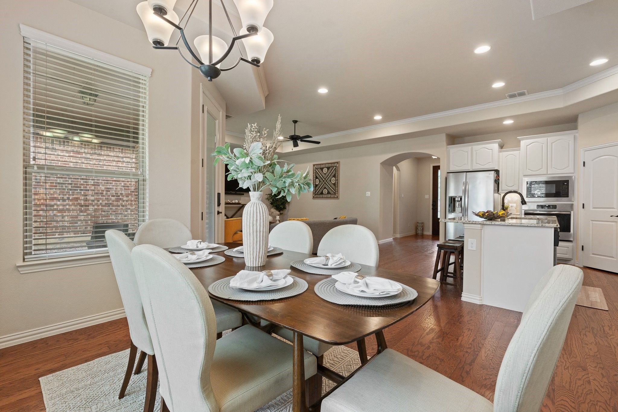 Welcome to easy, low-maintenance living in this beautifully appointed 2-bedroom, 2-bath home located in the highly sought-after Ladera Mansfield Condos, a gated 55+ community designed for active adults who want more out of everyday life. Inside, the open-concept layout offers seamless flow between the living, dining, and kitchen areas. Wood floors add warmth and character, while the gourmet kitchen serves as the heart of the home—featuring granite countertops, a gas cooktop, stainless steel appliances, and classic white cabinetry. Whether you're cooking for yourself or entertaining guests, this space delivers both style and function. The primary suite is tucked away for privacy and comfort, offering a large bedroom, a luxurious ensuite bath with dual vanities and a spacious tiled shower, and an oversized walk-in closet complete with built-in shelving. A second bedroom and full bath provide space for guests, hobbies, or a home office. Step outside to your covered patio, ideal for enjoying fresh air without the hassle of yard work. But what truly sets this home apart is the incredible community lifestyle that comes with it. The HOA takes care of all exterior and lawn maintenance, giving you more time to enjoy everything Ladera Mansfield has to offer. Spend your days at the resort-style pool, get moving in the fitness center, or challenge friends to a game on the pickleball or bocce ball courts. The community activity center offers a packed calendar of social events, clubs, and gatherings, making it easy to connect with neighbors and stay engaged. Enjoy peaceful strolls along over two miles of scenic walking trails, or simply relax knowing you're part of a vibrant, well-maintained, and secure neighborhood. From recreation to relaxation, this is a community designed to support the lifestyle you’ve been looking forward to. Discover comfort, convenience, and connection in one of Mansfield’s premier active adult communities—where every day feels like a getaway.