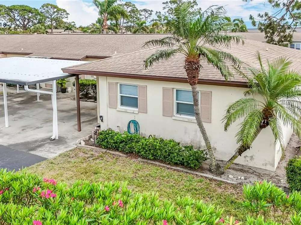 PRICE REDUCED on this cozy 2-bedroom, 2-bath paired villa is conveniently located in Sarasota, just three mile, 25 minute bike ride from the world-renowned Siesta Key Beach and just five miles from downtown Sarasota and all of the art, culture and fine dining. This community is a short walk to shopping, dining and public transportation. This end unit is light and bright and has a large rear porch, tile floors, a carport, and guest parking. All of the windows except for the sliding door are storm-rated and impact resistant. This villa comes equipped with a washer and dryer. Both bedrooms are comfortably generously sized. . The kitchen opens to the great room and has a popular open-concept plan, which is perfect for entertaining! This villa is priced below market and needs a little love. As part of this friendly 55+ community, you'll enjoy an active, social lifestyle. Spend your days relaxing by the pool, grilling at the clubhouse with friends, playing shuffleboard or bacci ball or joining one of the many social activities, from shuffleboard to Mahjong, bocce ball, and monthly potlucks. Whether you're looking to enjoy Florida sunshine for a season or a full-time residence, this home offers the best of Florida living. This is very well priced and will sell fast! and experience this charming home for yourself!