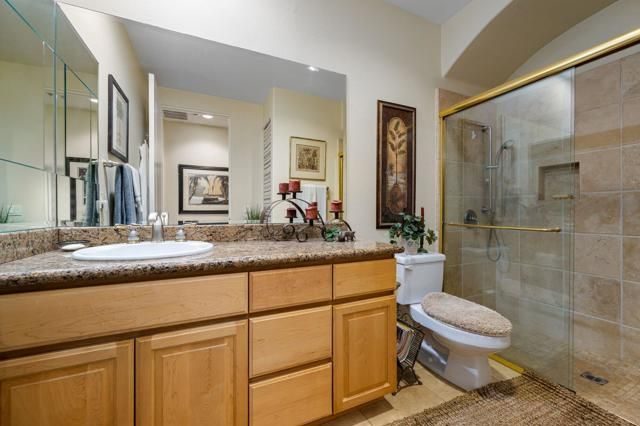 Welcome to 2802 Via Calderia -- where every day feels like a vacation. This stylish single-level condo is perfectly positioned within the coveted, fully built out, Villa Portofino 55+ gated community, Palm Desert's premier address for luxury, leisure, and low-maintenance living.Inside, the layout shines. High ceilings, elegant travertine flooring, and a warm fireplace set the tone in the open-concept living area--whether you're hosting friends for cocktails or enjoying a quiet night in. The chef's kitchen is ready for everything from charcuterie spreads to Sunday brunch, with rich cabinetry, granite countertops, and a breakfast bar that keeps the conversation flowing. An additional flexible den offers the ideal spot for a home office, yoga room, or impromptu guest retreat.The generous primary suite is designed for unwinding, featuring a spa-like bath with dual vanities, soaking tub, and separate shower--and best of all, direct access to the star of the show: the patio.Step outside to your private outdoor oasis--lush landscaping, no stairs, no peering neighbors, just peaceful mornings, glowing sunsets, and the sweet serenity of having your own slice of paradise. It's comfortable, quiet indoor-outdoor living at its finest.Assigned carport parking and ground-level accessibility make everyday living effortless.At Villa Portofino, the lifestyle is the amenity. A stunning 30,000 sq. ft. clubhouse acts as the community's social hub--with a restaurant and bistro for gourmet bites close to home, a movie theater for popcorn nights, yoga and fitness studios for staying active, a library, card and billiard rooms, and a sparkling resort-style pool and spa framed by dramatic mountain views. Just step outside your front door and choose your fun.With HOA services covering landscaping, building maintenance, water, gas, and cable/internet, you're free to spend your days doing what you love--golfing, dining, shopping, exploring cultural attractions--or simply soaking up the sunshine and the upscale ease of the Villa Portofino lifestyle.2802 Via Calderia isn't just a home -- it's a gateway to living beautifully. Move in, relax, and enjoy the desert life you've earned.Close to world class golf, tennis, pickleball, hiking, shopping, dining, and the Acrisure Arena.