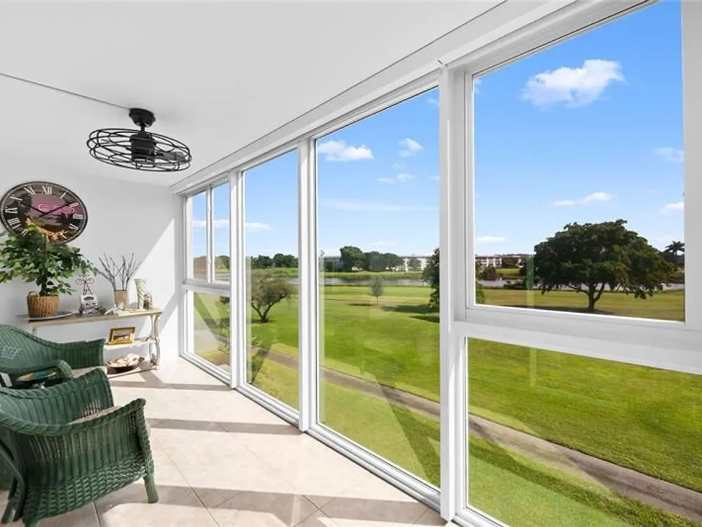 Just bring your toothbrush! Only thing missing is you. This is a fabulous completely updated unit. Hurricane impact windows and doors. Balcony has impact windows from ceiling to floor to give you unobstructed view of the golf course & lake. Tile floors throughout. Both bathrooms beautifully renovated. Master bedroom has views of the golf course and California closet. KItchen w/stainless steel appliances and granite countertop. Modern lighting & ceiling fans add to the ambience. All your big ticket items have been done for you. Community laundry & extra storage, assigned parking. List of amenties goes on & on. Clubhouse, movie theater, pools, fitness center, tennis, pickleball, billiards, golf course & more. Manned security guard at entrance.