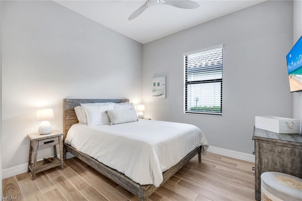 Welcome to Bonita National Golf & Country Club, where resort-style living meets effortless elegance. This highly sought-after Maria floor plan offers 4 bedrooms, 3 bathrooms, and a beautifully designed open-concept layout ideal for both everyday living and entertaining. The heart of the home features a spacious kitchen that flows seamlessly into the main living area, creating a bright and inviting communal space. Step outside to your private outdoor retreat complete with a custom pool, spa, and fully equipped outdoor kitchen, all overlooking a tranquil lake view. The east-facing lanai is perfectly positioned to capture stunning sunrise views. Located within a gated community with guard-gated access, Bonita National offers both privacy and peace of mind along with an unmatched lifestyle. As a social membership home, residents enjoy access to the beautifully designed Gordon Lewis–inspired golf course (with seasonal play from May through October), along with Har-Tru tennis courts for year-round enjoyment. The grand clubhouse features Boulevard dining, while the poolside café offers both restaurant-style seating and full resort-style service delivered right to your lounge chair—bringing a true vacation experience home. Additional amenities include a state-of-the-art fitness center, sauna, and a vibrant social calendar. Pickleball and bocce ball are also in the works, continuing to enhance the community lifestyle. Ideally located just minutes from the upcoming Midtown Bonita development, offering future dining, live music, shopping, and spa experiences, this home presents an exceptional opportunity to enjoy the best of SWFL living with a short commute to the Beach & RSW airport!