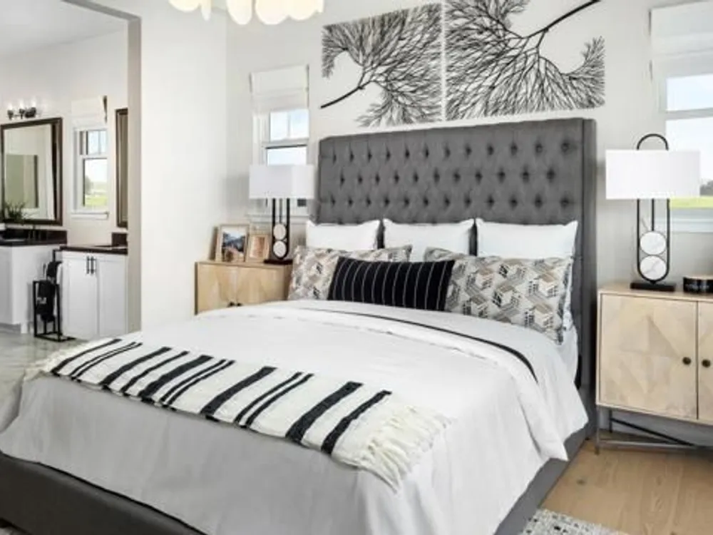 Welcome to Regency at Tracy Lakes, where luxury living takes center stage in this exceptional active adult 55+gated community. Three picturesque lakes, this vibrant community offers a fishing dock, 1-acre community garden and dog park. With a wealth of amenities, including a clubhouse, pools, cabanas, yoga studio, fitness center, bocce ball, and pickleball courts, every day is an opportunity for relaxation and recreation. The onsite lifestyle director ensures there’s always something to look forward to; from fitness classes to comedy shows and wine nights. This home is single-level at its finest. The gourmet kitchen makes a statement with it's premium finishes, including KitchenAid stainless steel appliances, 36" gas cook, modern cabinets, and quartz countertop with complementing backsplash. Luxury vinyl wood plank flooring flows throughout main living space. Elegant craftsmanship with 10-foot ceilings, 8-foot doors, 5 1/4 baseboards, dual-pane Anderson windows, and Western stacking slider doors. Primary bedroom suite complete with an impressive walk-in closet and a spa-like bath with dual vanities, large luxe shower with seat. Bonus flex room or home office extends the possibilities of this home.(photos not of actual home or yard, for marketing only)
