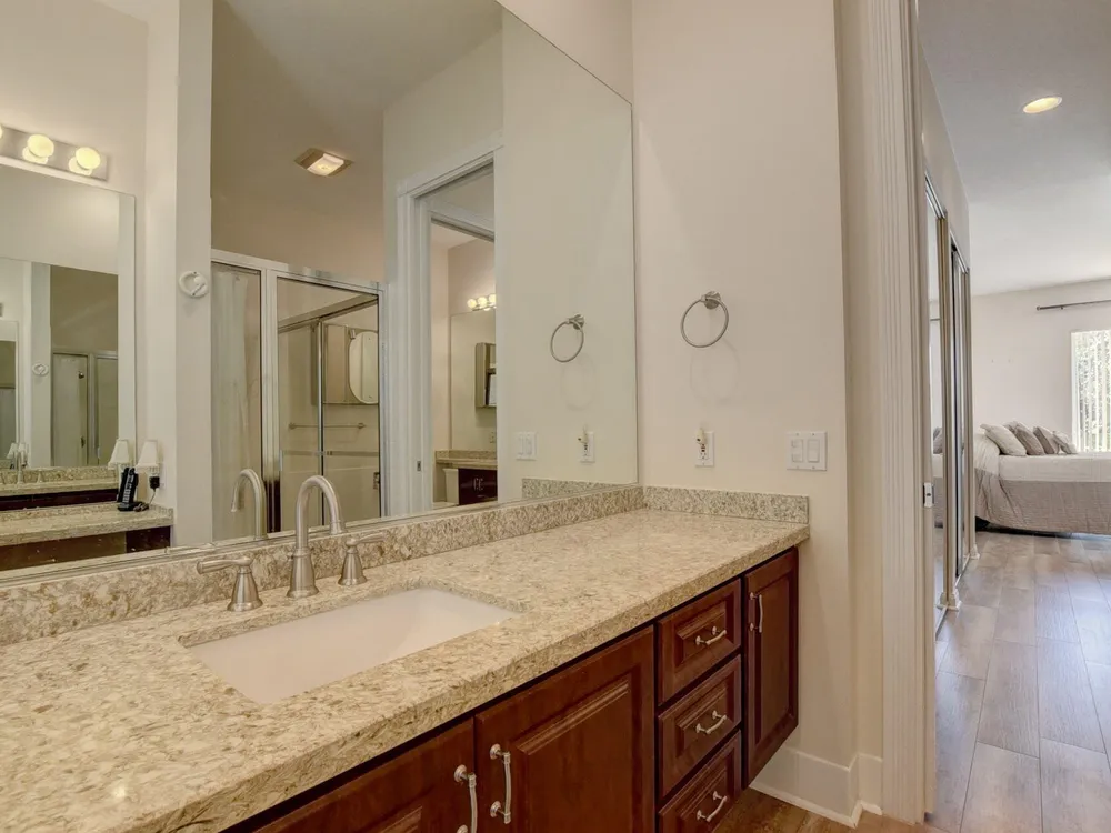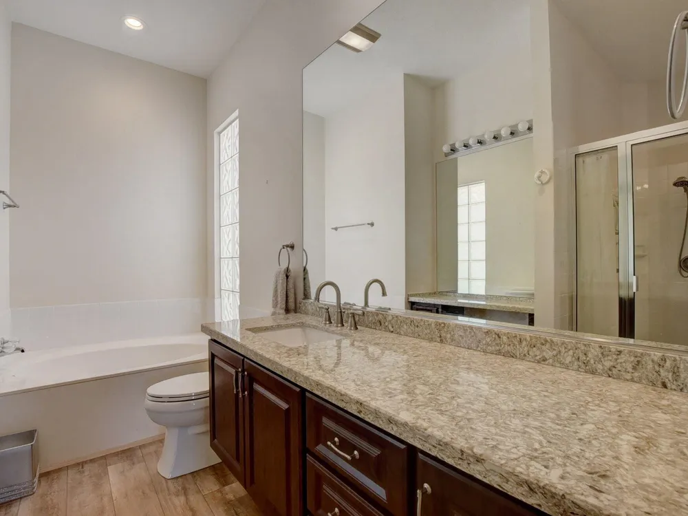 - Built-in Shelving, Cathedral Ceiling(s), Entrance Foyer, Pantry, Garden Tub/Roman Tub, Split Bedrooms, High Ceilings, Walk-In Closet(s), Home Office, Great Room, Living/Dining Room, Single Hung Metal Window(s), Sliding Window(s), Window Vertical(s), Multiple Primary Bathrooms, Dual Sinks, Primary Downstairs, Separate Shower, Bathtub, Storm Shutters