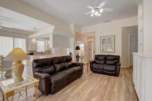 If it's an Oakmont model you are looking for then look no further! With 12ft ceilings in the Great Room and 10ft ceilings elsewhere this home flows beautifully and is the perfect floor plan for entertaining. The principal bedroom boasts a double bathroom arrangement with Roman tub and walk in shower, a large walk in closet plus an additional wall of closet space. The two guest bedrooms are located on the opposite side of the home allowing privacy for all.Gorgeous neutral luxury vinyl flooring throughout the entire home! Updated kitchen with granite counters - most appliances have recently been replaced - reverse osmosis water system 2025 - both bathrooms have been updated to include walk in showers, comfort level commodes and granite counters.