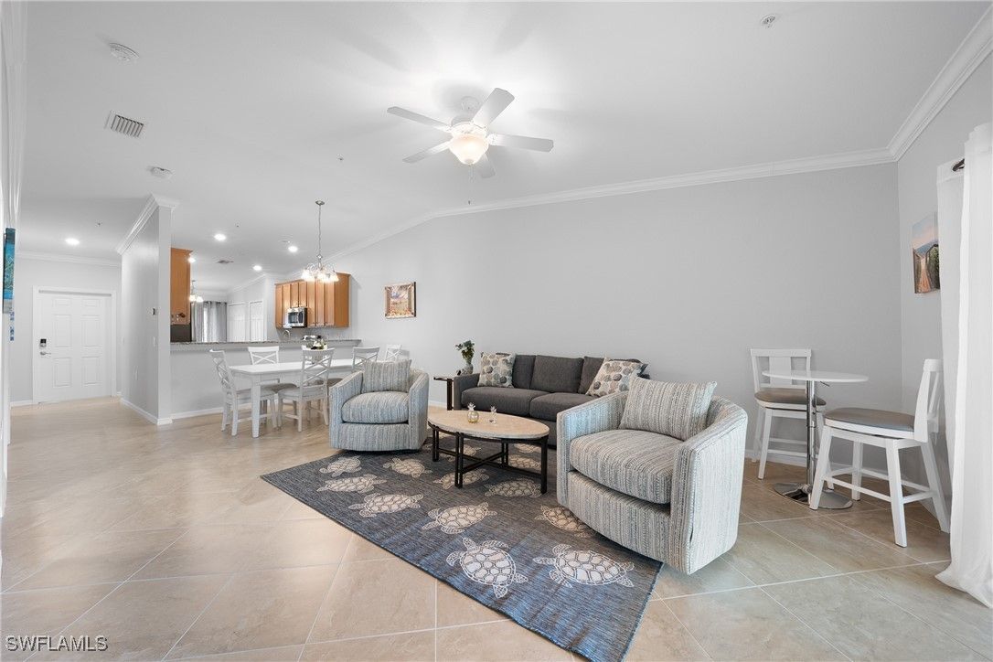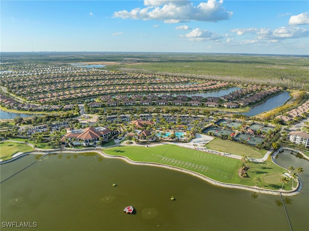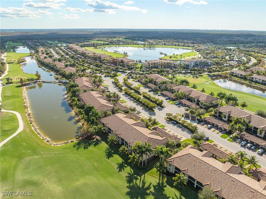 A social membership is included with this beautifully appointed second-floor Veranda residence, where refined living is paired with truly exceptional views. Enjoy sweeping panoramas of the championship golf course hole 7, lake and a peaceful nature like setting—some of the most coveted vistas in the community. Two expansive screened lanais seamlessly extend the living space outdoors, offering the perfect settings for both glowing sunsets and tranquil sunrise mornings. Offered furnished, this residence allows you to step right into the Southwest Florida lifestyle from day one. Located within Bonita National, a prestigious gated community rich in resort-style amenities, residents enjoy lighted tennis courts, an aqua driving range, a professional putting green, and a full-service pro shop. The stunning resort pool features a dramatic waterfall and dedicated lap lanes, complemented by a state-of-the-art fitness center, full-service spa, and an inviting poolside bar and grill. New bocce and pickleball courts are scheduled for completion in 2026. The elegant clubhouse offers formal dining, meeting spaces, and additional upscale amenities. Ideally situated with convenient access to I-75, award-winning Gulf beaches, booming downtown Bonita, and RSW International Airport, this home is surrounded by premier shopping, dining, cultural attractions delivering an exceptional blend of luxury, comfort, and convenience in Southwest Florida.