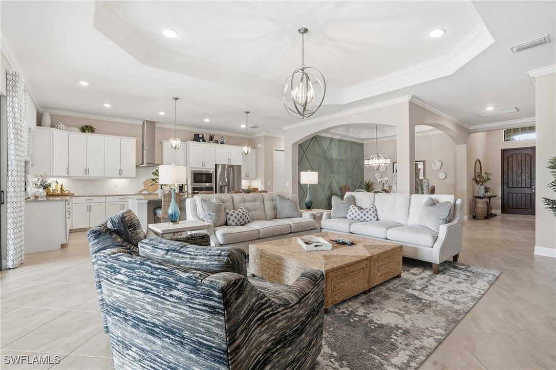 Introducing a rarely available Angelina model in the highly sought-after Bonita National Golf & Country Club—where elegance, comfort, and resort-style living truly come together. This stunning 3-bedroom, 2-bath home is one of the most desirable floor plans in the community. Better than a model, this beautifully designer-decorated home is truly move-in ready and offers the perfect blend of coastal elegance and casual sophistication. The open-concept layout effortlessly flows from the great room to the gourmet kitchen and dining areas, creating an ideal space for relaxed living and effortless entertaining. The gourmet kitchen is as functional as it is beautiful, featuring an abundance of cabinetry that offers exceptional storage space for all your culinary needs. Thoughtfully designed with extended upper cabinets, deep lower drawers, and a large pantry area, this kitchen ensures everything has its place—keeping your counters clutter-free and your cooking experience seamless. Whether you love to entertain or simply enjoy an organized home, the generous storage options make this kitchen a standout. A rare vented kitchen hood with exterior exhaust—a highly sought-after upgrade for serious cooks. Slide open the pocketing glass doors and step into your private outdoor sanctuary. The extended screened lanai showcases a sparkling heated salt water pool and spa, a custom-built outdoor kitchen with sink, and generous seating areas for lounging and dining. Thoughtfully placed professional landscape lighting creates an inviting evening ambiance, perfect for entertaining under the stars. Eastern exposure delivers beautiful sunrise views and comfortable afternoon shade on the lanai. Additional features include: Spacious primary suite with lanai access and luxurious ensuite bath, two beautifully finished guest bedrooms, upgraded laundry room with storage and utility sink. Epoxy-finished garage floor with overhead storage racks and custom cabinets, impact-resistant doors and windows for peace of mind and the Lani is equipped with hurricane design storm shades. Located in the resort-style community of Bonita National, offering golf privileges for social member May thru October, tennis, future pickleball courts, fitness center, full-service spa, clubhouse dining, and more! This home offers everything you dreamed of in Florida living—elegance, comfort, and a lifestyle that feels like vacation every day. A must-see in person—homes like this don’t come along often!