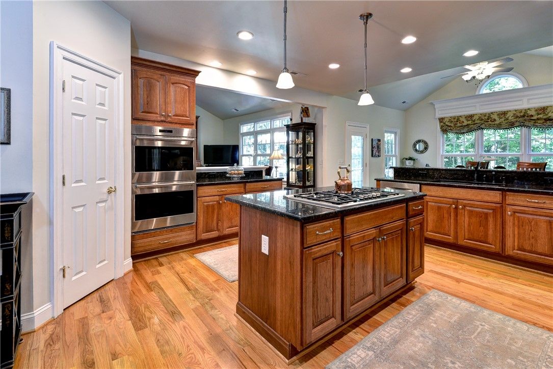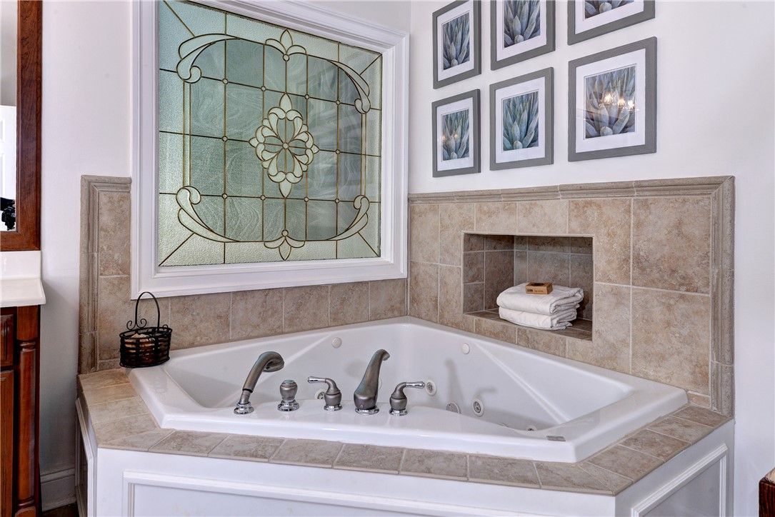 - Bookcases, Built-in Features, Tray Ceiling(s), Ceiling Fan(s), Cathedral Ceiling(s), Dining Area, Separate/Formal Dining Room, Double Vanity, Eat-in Kitchen, Granite Counters, High Ceilings, Jetted Tub, Kitchen Island, Pantry, Recessed Lighting, Walk-In Closet(s), Window Treatments, Programmable Thermostat