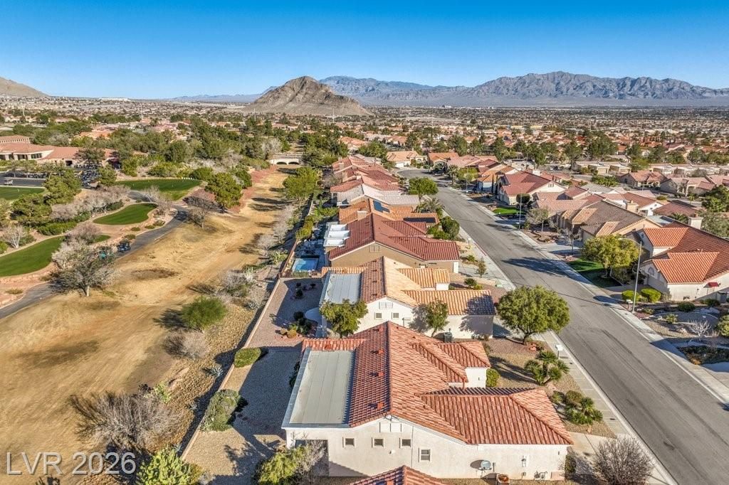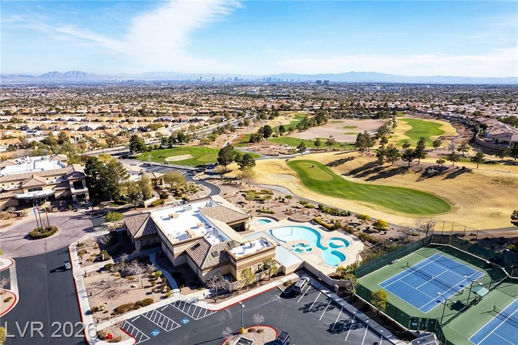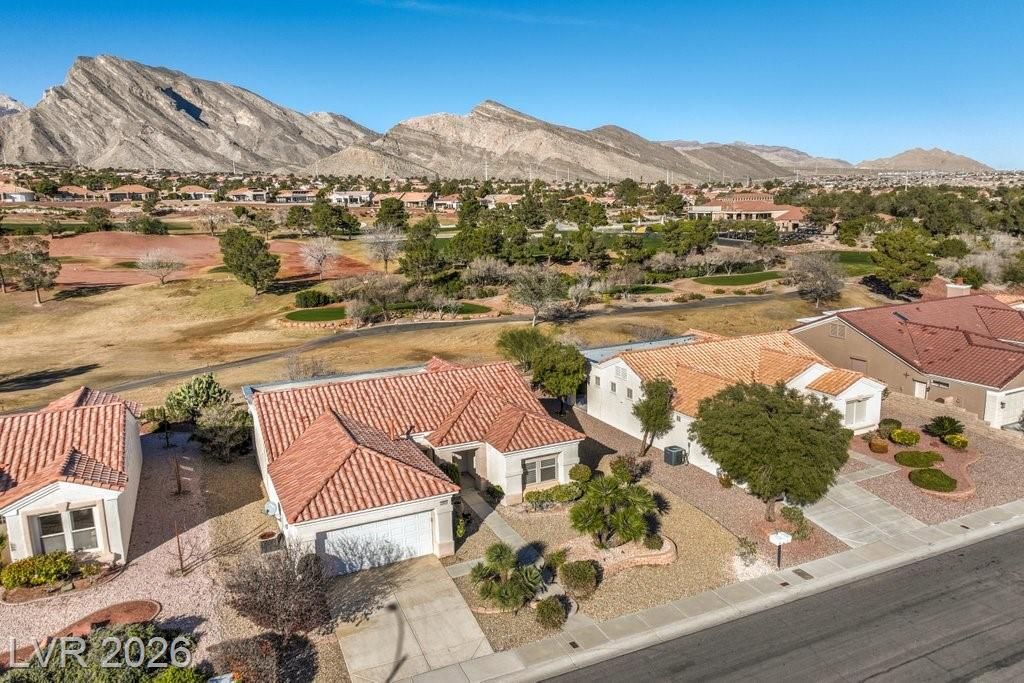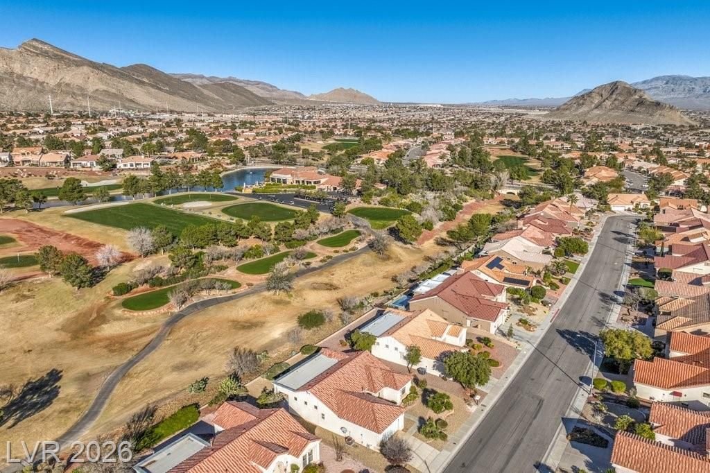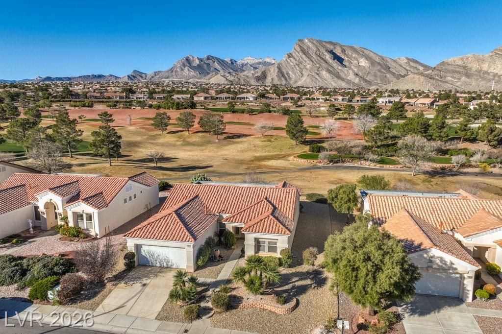 Welcome to this beautiful Royale model on a premium golf front lot in Sun City Summerlin, a 55+ lifestyle community. Popular floor plan is open and bright with high ceilings and perfectly placed windows allowing natural light to pour in. Kitchen features a breakfast bar and nook with bay window looking out to the first tee of the golf course. Upgrades include rolling shutters, silhouette shades, stone pattern tile, and plush carpet. Convenience items consist of a hobby room, garage cabinets, epoxy garage floor, extra garage space, and water softener. Backyard offers a sense of privacy with no rear neighbor highlighted by amazing views of the golf course and mountains. Sunsets are spectacular from this vantage point. The state-of-the-art clubs of Sun City Summerlin provide world class entertainment, dining, relaxation, wellness, fitness, aquatic centers, recreation, activities, clubs, and exciting social calendars.