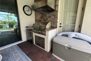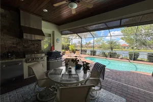Step into this impeccably maintained Princeton floor plan that truly feels like a model home. The open-concept great room seamlessly flows into the gourmet kitchen, creating a bright and airy space ideal for both relaxed living and entertaining. The kitchen features elegant crown molding, granite countertops, and custom cabinetry with convenient pull-out drawers. Expansive sliding doors open to a stunning outdoor kitchen and covered patio—complete with a Kevlar electric screen for added comfort and protection—perfect for hosting guests or simply enjoying tranquil lake views. Unwind in your private pool and spa, surrounded by an oversized lanai designed for ultimate comfort and style. Every detail has been thoughtfully cared for, making this home completely move-in ready. A Social Membership is included, offering access to exceptional resort-style amenities: a sparkling pool and spa, poolside dining, lap pool, full-service spa, pub, formal and patio dining, state-of-the-art fitness center, aerobic/spin studio, sauna, Har-Tru tennis courts, and so much more. Discover the perfect balance of luxury, leisure, and location—this home truly has it all.