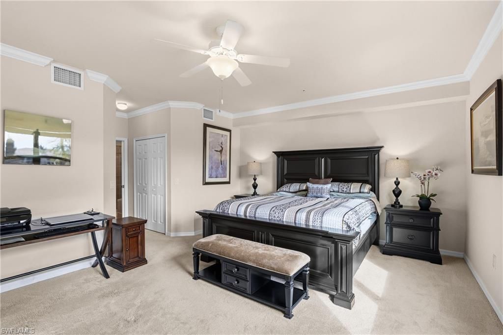 GOLF MEMBERSHIP INCLUDED, BONITA NATIONAL GOLF & COUNTRY CLUB IN SW FLORIDA! Rare 1st floor end-unit with lush views of the 9th hole, tropical landscape and lake. Both the great room and Owners retreat have sliding glass doors to the expansive screened in lanai. What a VIEW! LIVE AN ACTIVE, OUTDOOR LIFESTYLE! Open floor plan offers 3 bedrooms, 2 full baths and oversized owners retreat with double closets, dual sinks and sep bath tub and shower. A 2-car attached garage, pavered driveway and walkway, and tile roof complete the exterior features. INCLUDED with this coach home unit #4004 is a full GOLF MEMBERSHIP, giving you access to Bonita National’s championship 18-hole golf course. Enjoy a wealth of resort-style amenities including a zero-entry lagoon style pool with rock waterfall, lap lanes, a full-service spa, state-of-the-art fitness center, tennis courts, fine and casual dining, and a vibrant social calendar. In addition to the stunning clubhouse pool, residents can enjoy 3 additional pools with available grills. Exciting pickleball courts and bocce will be all new. Ideally located in Bonita Springs, near the white-sand Gulf beaches, shopping, dining, RSW airport and the all new upcoming Midtown at Bonita.