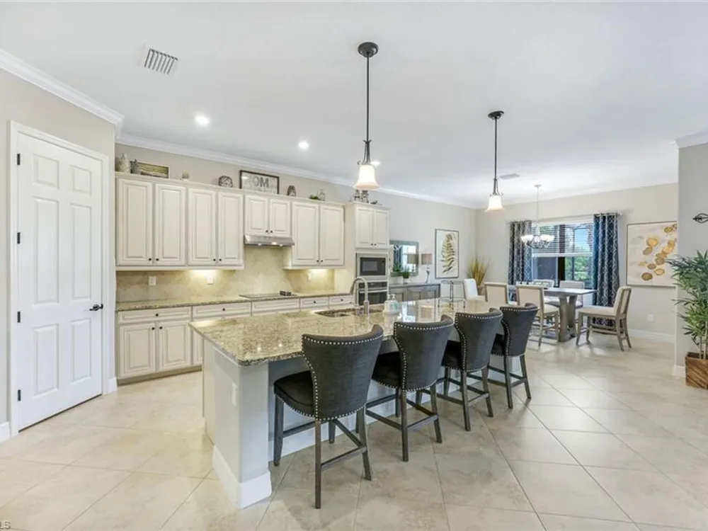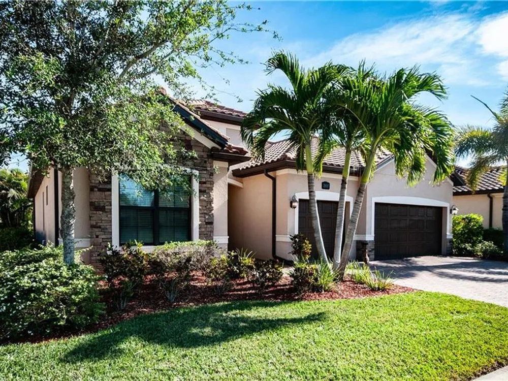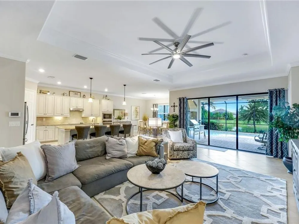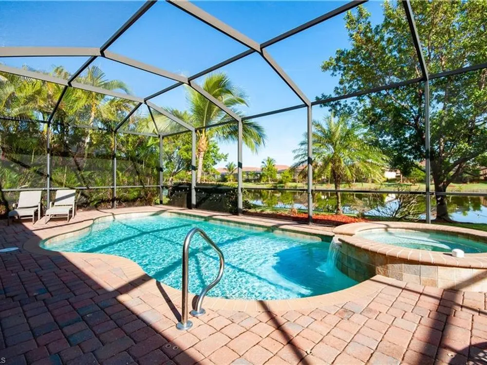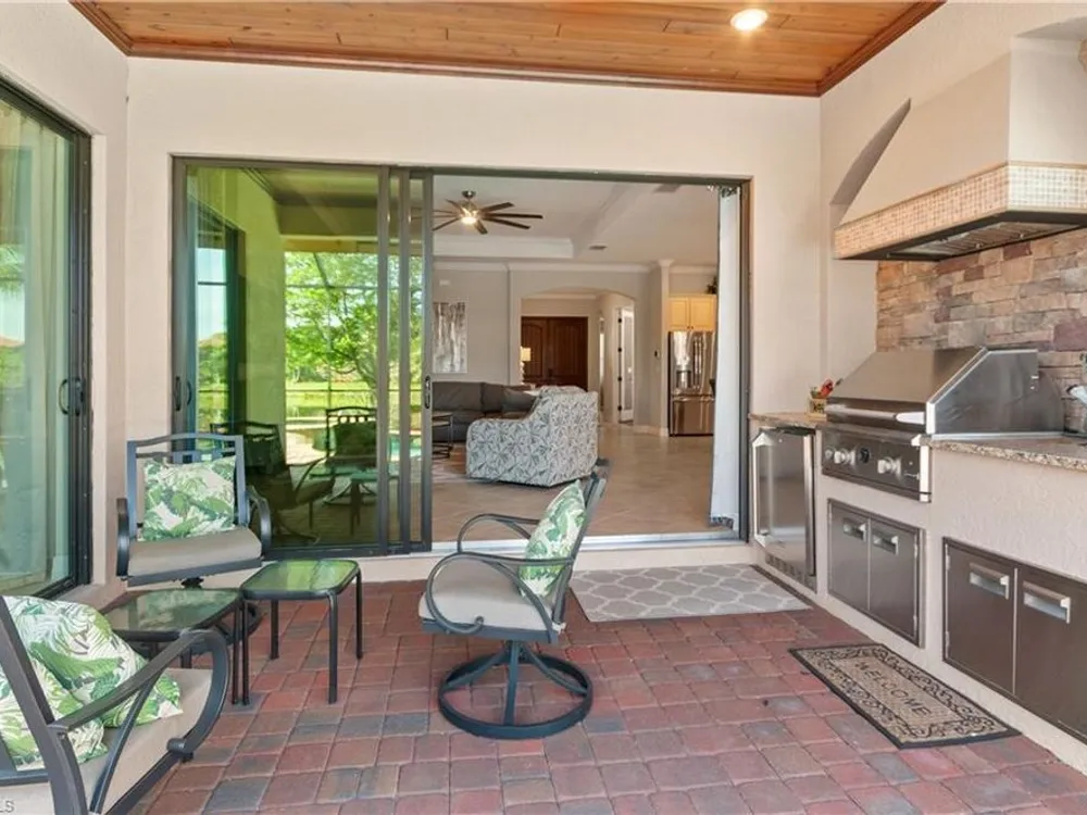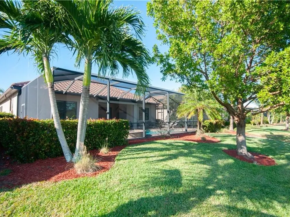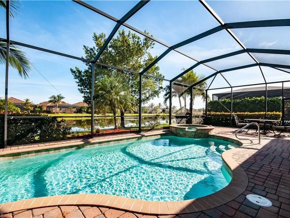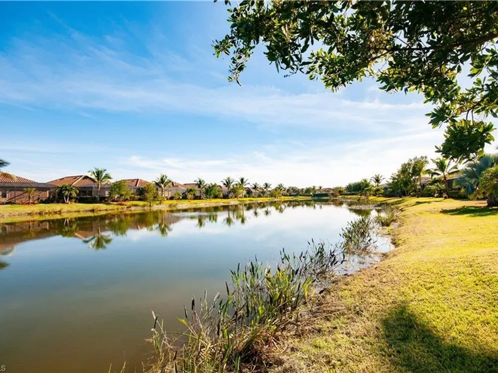PRICE IMPROVEMENT, Motivated Seller -- Bonita National Golf and Country Club is a highly-sought after community in the SW FL area. Social Membership is included…ALL the SOCIAL amenities are included with the monthly HOA fee…Fine dining in the clubhouse, poolside full food service and casual restaurant dining, yoga room, staffed fitness center, spa, beauty salon, 8 tennis courts, card/gathering room, a book share room, and PICKLEBALL IS COMING SOON! This well-thought-out and open-concept Summerville floor plan features 3 large bedrooms, a den/study, 3 full baths, and a 3 car garage. Many upgrades are included in this more than 2,400 sq ft home with 10-foot ceilings that create an open and airy atmosphere with abundance of natural light. You will be wowed by the beautiful coffered ceiling detail and custom-crafted woodwork providing elegance and sophistication while maintaining a warm welcoming atmosphere. Step outside to enjoy the in-ground pool and spa, a large paved deck, a screened lanai, a lake view, and attractive landscaping for a private oasis and a piece of the SW Florida lifestyle. The rear Eastern exposure to watch the beautiful sunrises while enjoying your morning beverage and for the sun tan lovers, enjoy the full sun most of the day from the lanai. Convenient outdoor kitchen with a propane gas grill, beverage cooler, storage, wood-appointed ceiling, and awnings to extend your relaxation time and protect your outdoor furniture. Built in 2018, all storm-rated impact resistant windows and doors meet or exceed codes. No flood insurance needed. Bonita Beach, an ample selection of restaurants and lots of shopping are close by. Come enjoy the SW Florida lifestyle in this home. REMEMBER - ALL the social membership amenities: Fine Dining, Casual restaurant and service around the resort type pool. Golf privileges year round with appointments. Yard maintenance, internet connectivity (Wifi.Cable), staffed guard gate are a handful of the benefits included in your HOA fees.