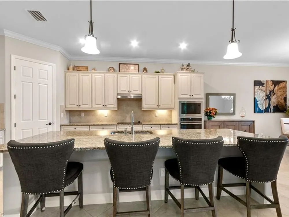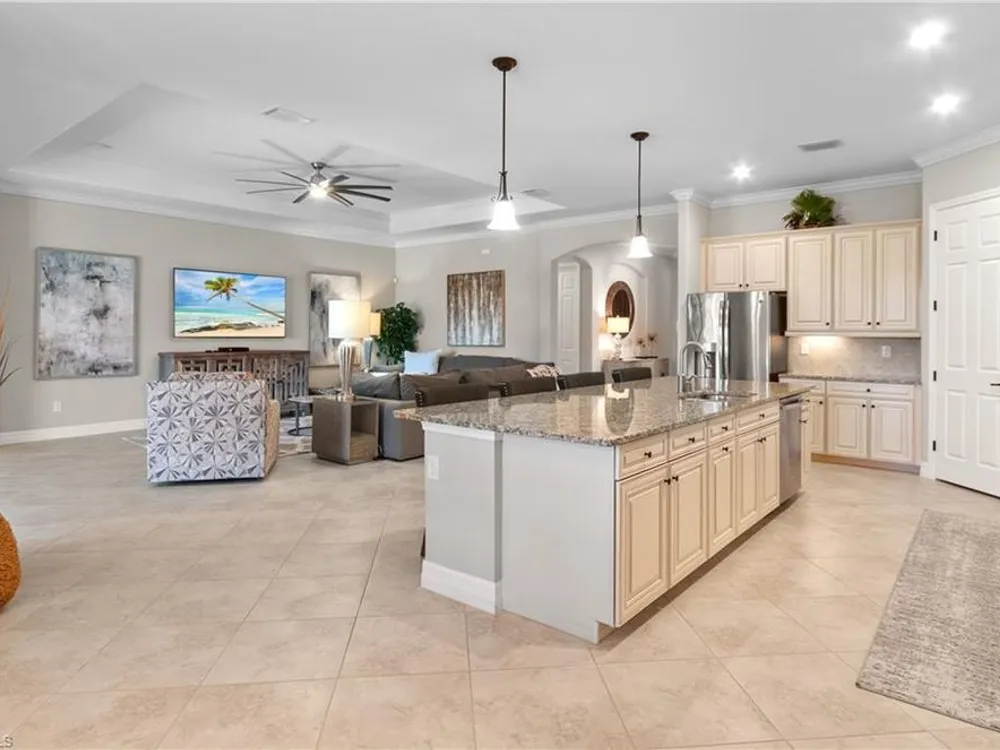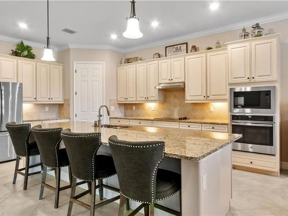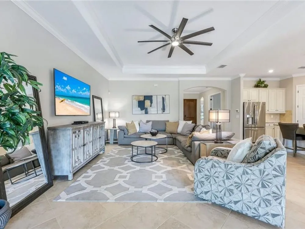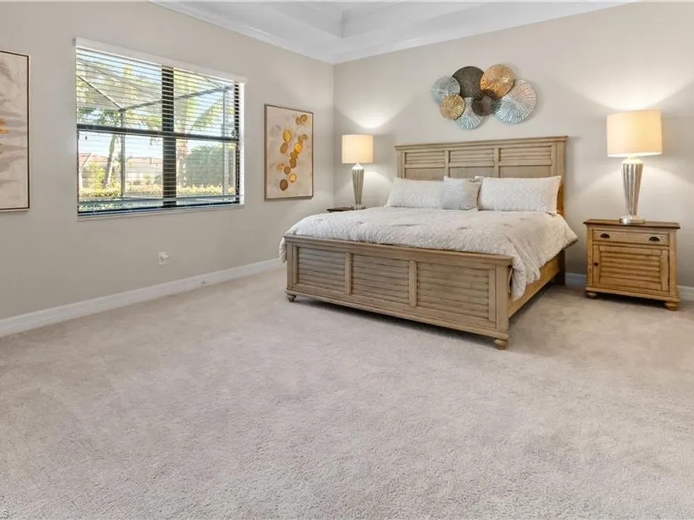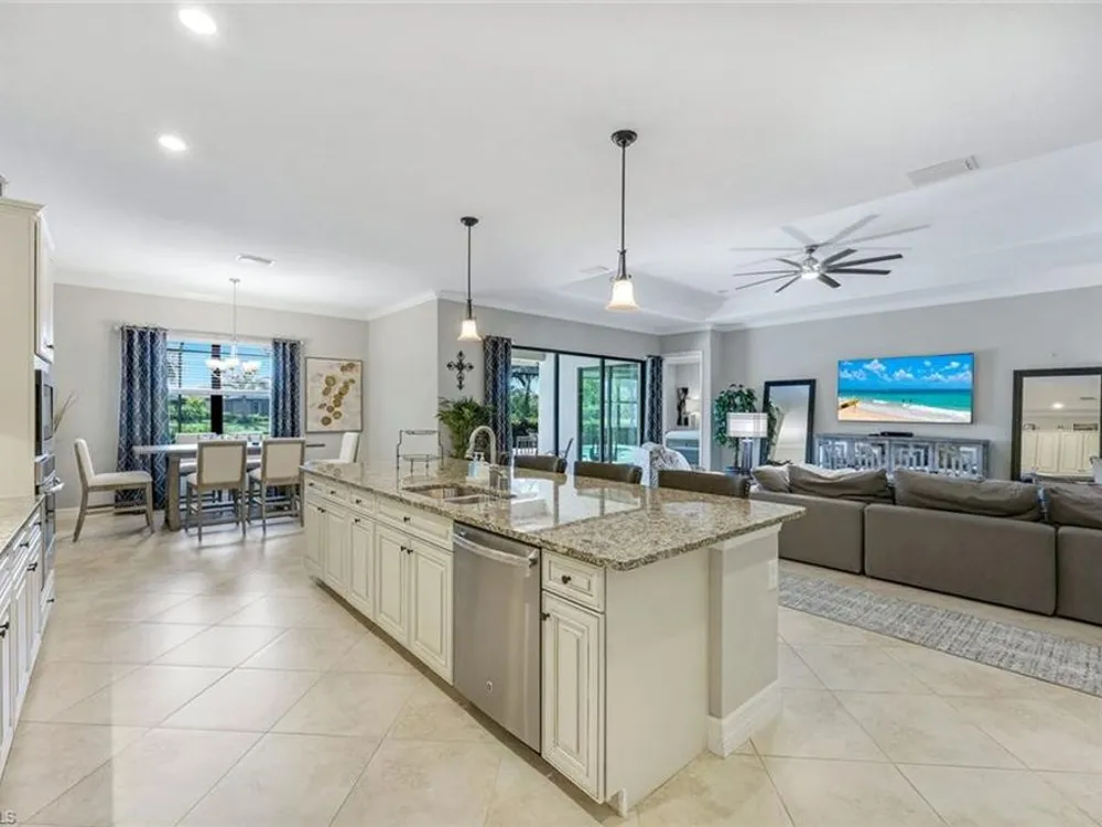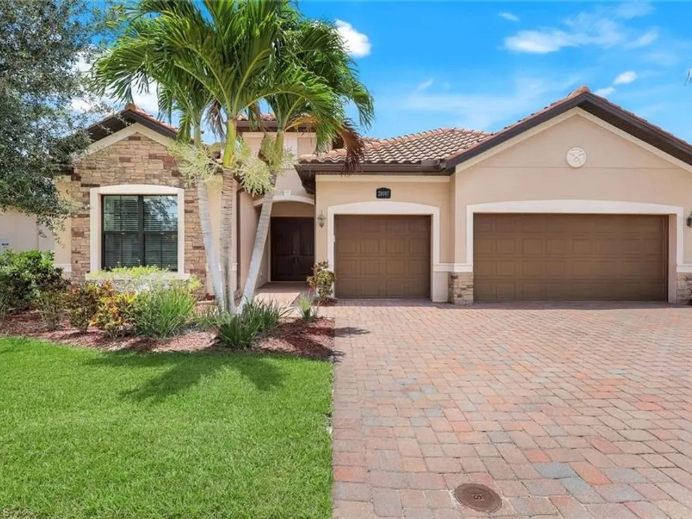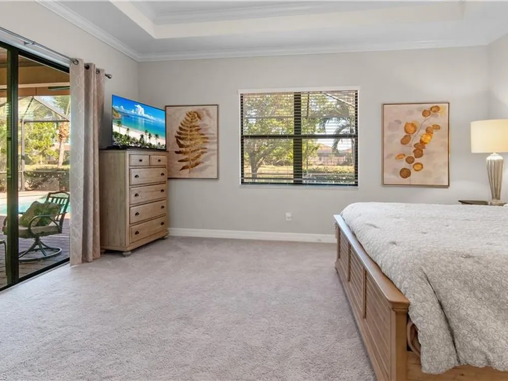 PRICE IMPROVEMENT, Motivated Seller -- Bonita National Golf and Country Club is a highly-sought after community in the SW FL area. Social Membership is included…ALL the SOCIAL amenities are included with the monthly HOA fee…Fine dining in the clubhouse, poolside full food service and casual restaurant dining, yoga room, staffed fitness center, spa, beauty salon, 8 tennis courts, card/gathering room, a book share room, and PICKLEBALL IS COMING SOON! This well-thought-out and open-concept Summerville floor plan features 3 large bedrooms, a den/study, 3 full baths, and a 3 car garage. Many upgrades are included in this more than 2,400 sq ft home with 10-foot ceilings that create an open and airy atmosphere with abundance of natural light. You will be wowed by the beautiful coffered ceiling detail and custom-crafted woodwork providing elegance and sophistication while maintaining a warm welcoming atmosphere. Step outside to enjoy the in-ground pool and spa, a large paved deck, a screened lanai, a lake view, and attractive landscaping for a private oasis and a piece of the SW Florida lifestyle. The rear Eastern exposure to watch the beautiful sunrises while enjoying your morning beverage and for the sun tan lovers, enjoy the full sun most of the day from the lanai. Convenient outdoor kitchen with a propane gas grill, beverage cooler, storage, wood-appointed ceiling, and awnings to extend your relaxation time and protect your outdoor furniture. Built in 2018, all storm-rated impact resistant windows and doors meet or exceed codes. No flood insurance needed. Bonita Beach, an ample selection of restaurants and lots of shopping are close by. Come enjoy the SW Florida lifestyle in this home. REMEMBER - ALL the social membership amenities: Fine Dining, Casual restaurant and service around the resort type pool. Golf privileges year round with appointments. Yard maintenance, internet connectivity (Wifi.Cable), staffed guard gate are a handful of the benefits included in your HOA fees.