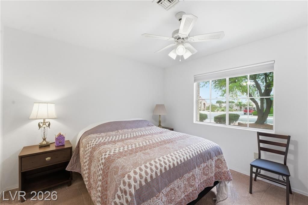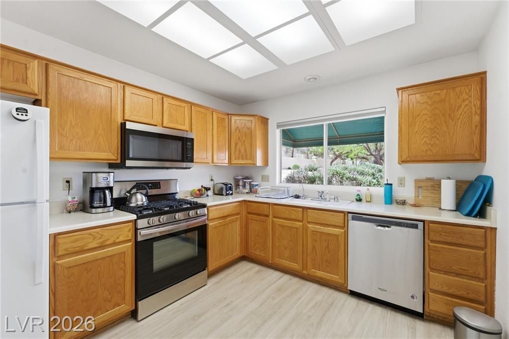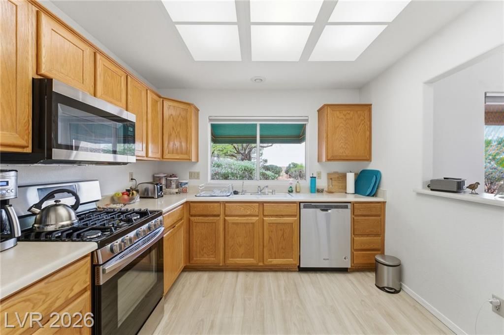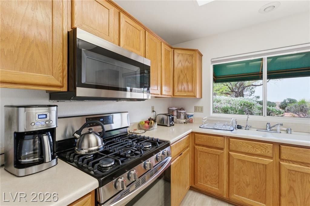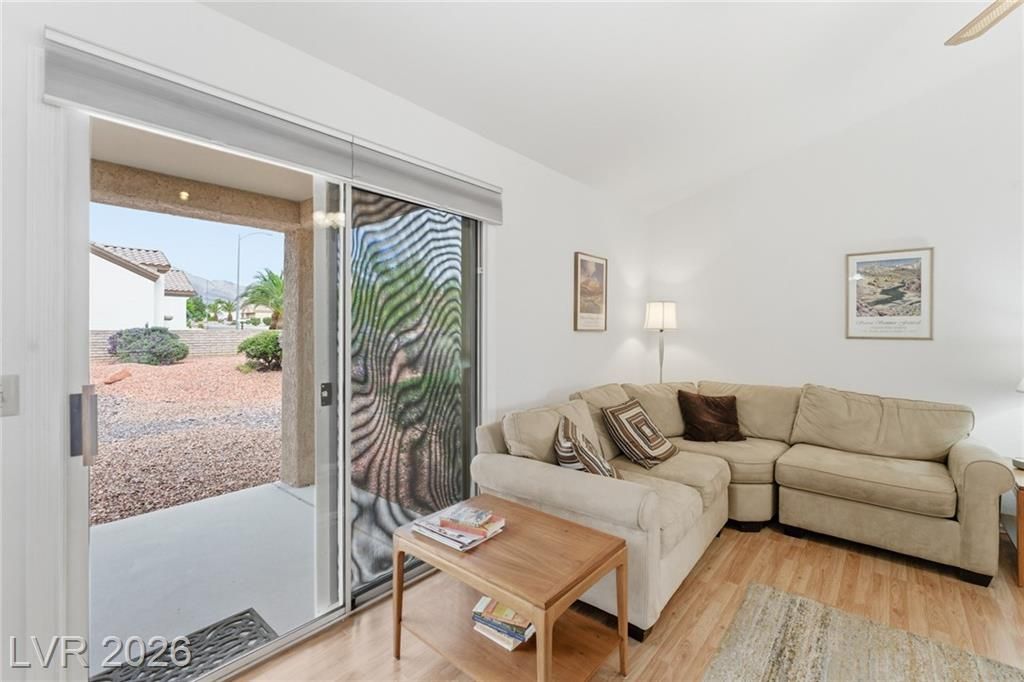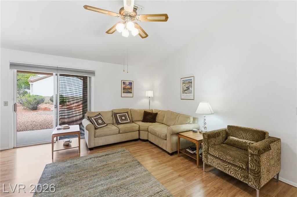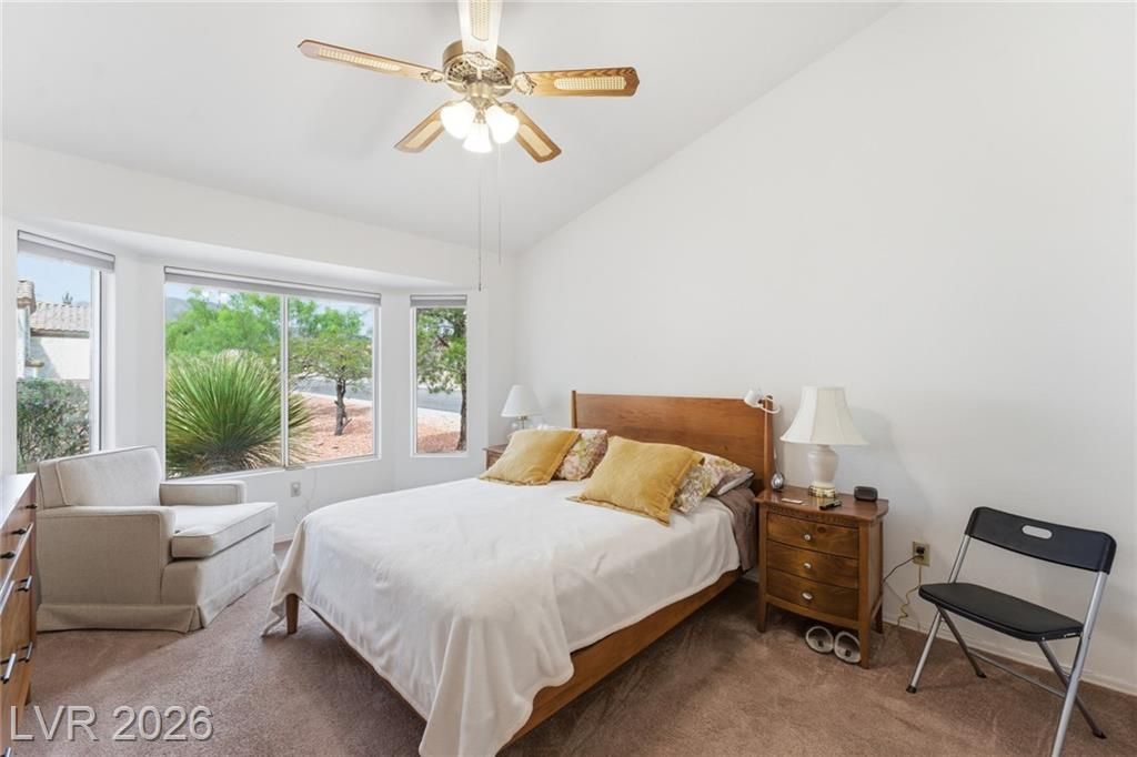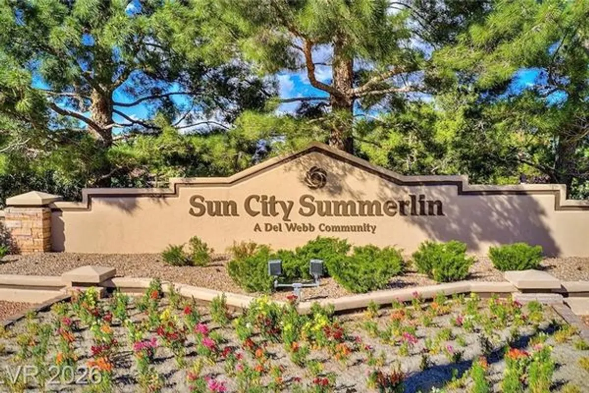 Discover the vibrant lifestyle of Sun City Summerlin, one of the most desirable 55+ communities in Las Vegas. Residents enjoy access to exceptional amenities, including golf courses, a clubhouse, fitness centers, pickleball courts, and a full calendar of social activities.This charming Weston model offers the ideal blend of comfort and functionality. Situated on a quiet cul-de-sac with an oversized lot, the home features a bright, open living and dining area—perfect for both everyday living and entertaining.The kitchen is thoughtfully designed with a convenient passthrough window and upgraded with stainless steel appliances, including a microwave, dishwasher, and stove. Additional highlights include an indoor laundry room, kitchen pantry, and a soft water system for added convenience.The spacious primary bedroom overlooks the expansive backyard and includes an en-suite bathroom with a walk-in shower and dedicated vanity area.
