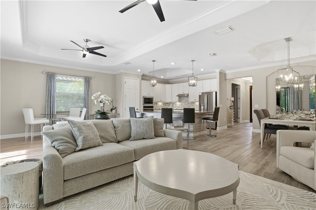 One you won't want to miss - where luxury, lifestyle, and location combine in this exceptional move-in-ready home. Immaculate Victoria model with social membership in Bonita National Golf & Country Club, just 4 years young and beautifully upgraded. This highly sought-after floor plan offers 2 bedrooms + den and is the only model featuring a convenient exterior half bath on the lanai, ideal for poolside entertaining and true indoor-outdoor Florida living. Step inside to discover a light, sophisticated interior with neutral décor, upgraded tile flooring throughout, custom designer lighting, and numerous high-end enhancements. The home is offered with all new elegant, quality furnishings (within the past year), creating a move-in-ready residence with a refined coastal luxury feel. The expansive screened lanai is designed for entertaining and relaxation, complete with a fully equipped outdoor kitchen. Residents enjoy access to Bonita National’s exceptional resort-style amenities, including a grand clubhouse, a full-service spa, a state-of-the-art fitness center, card rooms, lighted tennis courts, and soon to be added pickleball and bocce. Relax at the spectacular resort pool with poolside service, plus three additional satellite pools throughout the community. Dining options abound with formal clubhouse dining or casual fare at the popular tiki bar & grill with poolside service. Ideally located near the exciting new Midtown at Bonita development, pristine Gulf beaches, premier shopping, and an array of local dining — all within minutes of Bonita Springs and everything Southwest Florida has to offer.
