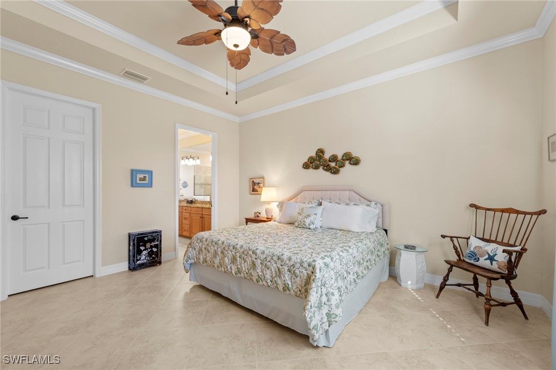 This impeccably maintained Princeton model residence is set on an oversized premium lot with expansive water views, and offers a rare combination of privacy, functionality, and peaceful surroundings in Bonita National Golf & Country Club. Tucked away in an exceptionally quiet setting, the home overlooks a tranquil lake that attracts a variety of birdlife, creating a serene backdrop for everyday living. The well-appointed kitchen features a glass cooktop, built-in oven and microwave, and a breakfast nook perfectly positioned to take in the beautiful water views. The primary suite serves as a private retreat, complete with dual sinks, a large soaking tub, and a separate walk-in shower. Four full bedrooms and two full baths offer flexible living options for family, guests, or a home office. Additional highlights include impact windows and doors, a tile roof, beautiful upgraded landscaping, and an elevation survey indicating over 20 feet of elevation for added peace of mind. The expansive lot provides ample space to design and build a personalized pool and spa. Bonita National is a gated, resort-style community thoughtfully designed around a wildlife preserve, where nature and lifestyle blend seamlessly. Residents enjoy a Gordon Lewis–designed 18-hole championship golf course, professional tennis courts, a state-of-the-art fitness center, spa services, and three on-site dining venues. A Social Membership is included with homeownership, offering access to an active calendar of amenities and clubs that promote a vibrant, healthy lifestyle. Social Members and Social Member Guests can pay-to-play golf from May - October. Ideally located just five miles east of I-75 on Bonita Beach Road, the community provides convenient access to pristine Gulf beaches, shopping, dining, and the cultural attractions of Bonita Springs, Naples, and Fort Myers. **Some photos in this listing have been virtually staged to illustrate the potential use and layout of the space. Furnishings and décor shown are for illustrative purposes only and are not included in the sale.**