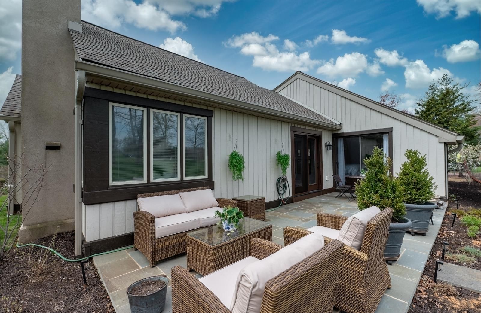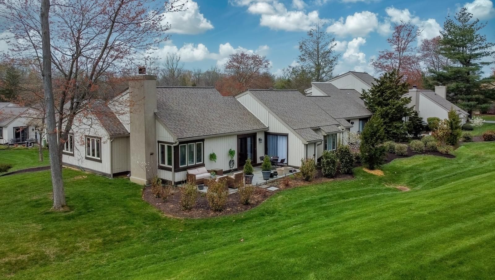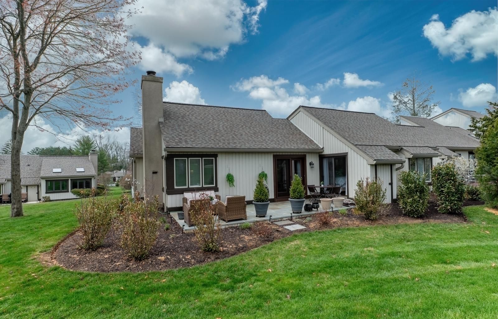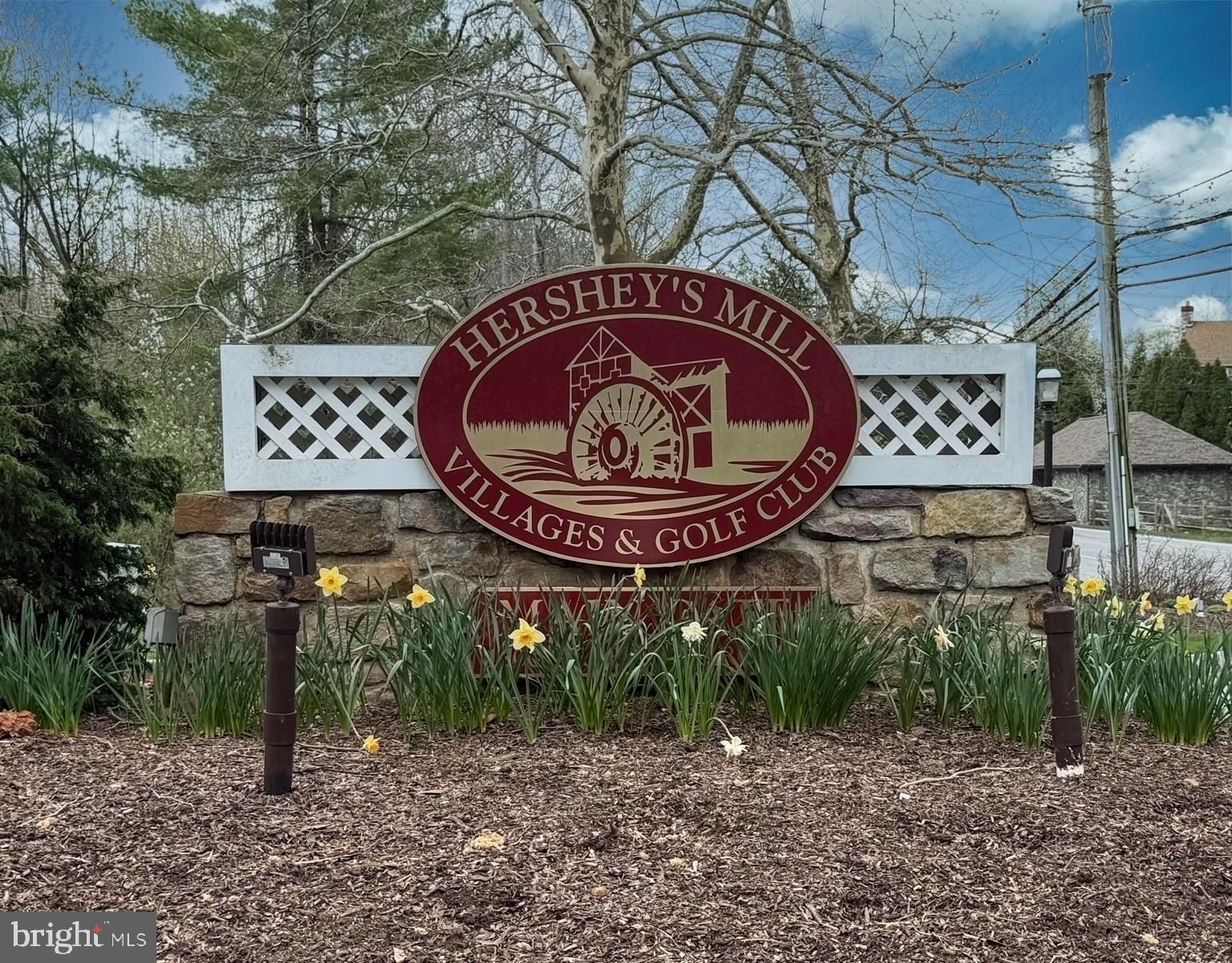 Welcome to this stunning, beautifully updated, and sun-drenched end-unit home in Hershey’s Mill, offering picturesque golf course views. This desirable Malbrough floor plan with 3 bedrooms, 2 full baths has been thoughtfully opened to create a seamless flow, perfect for both everyday living and elegant entertaining. Every window showcases breathtaking and unobstructed views, filling the home with natural light. Designer touches abound, including impressive millwork, custom built-in cabinetry, and a stylish bar/butler’s buffet area. The living room is a true showpiece, featuring shiplap detailing surrounding the fireplace and a striking new mantel. Every detail has been carefully curated to impress. Meticulously maintained, this home is truly move-in ready, with a newer kitchen with island seating, updated bathrooms, newer windows, newer roof, and fresh paint inside and out—offering both beauty and peace of mind. Step outside to the new private and spacious slate patio with lovely new landscaping, where you can enjoy your morning coffee or unwind in the evening while taking in the serene open space and sweeping views of the 17th hole. Hershey’s Mill is an active and sought after 55+ community with 24-hour security, low maintenance living with plenty of activities and amenities for everyone. You will enjoy the heated outdoor pool, library, community center, pickleball, tennis, walking trails, woodshop, bocce, gardens….the list goes on. There is an 18-hole golf course and clubhouse for an additional fee. You will wish you moved in sooner!