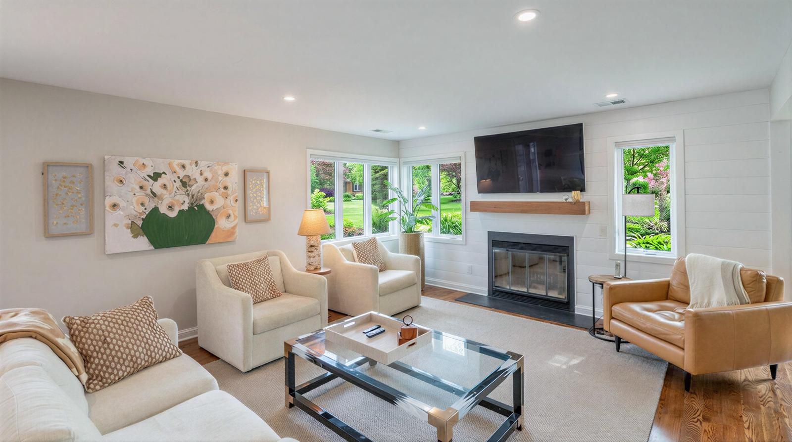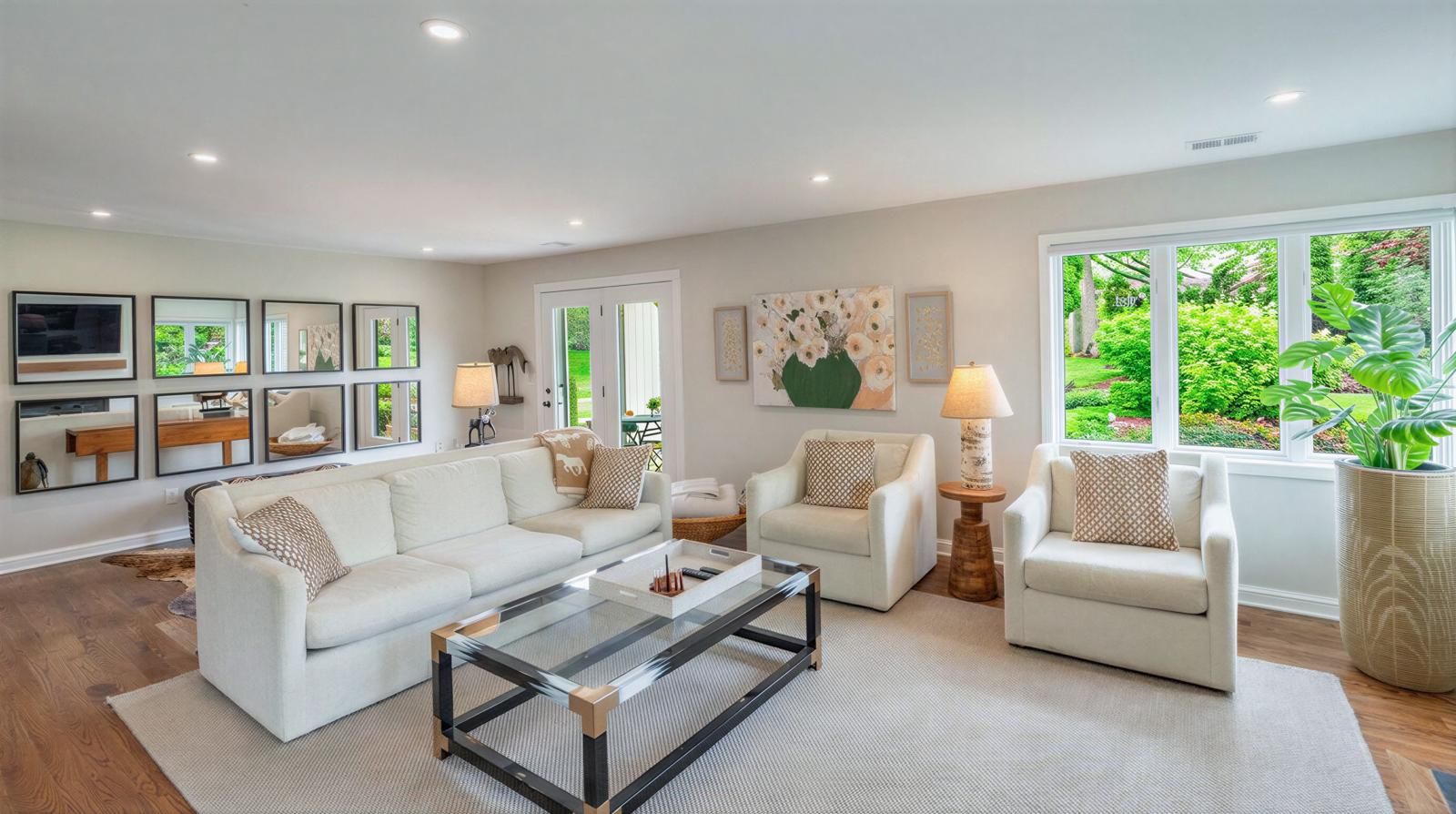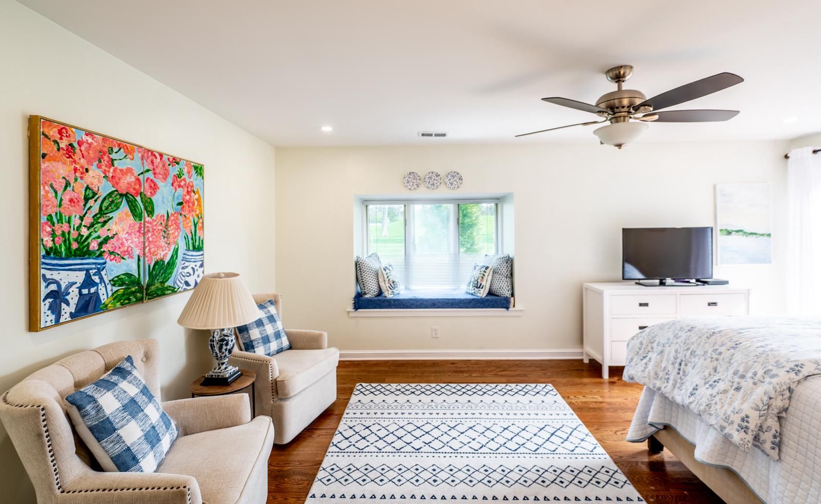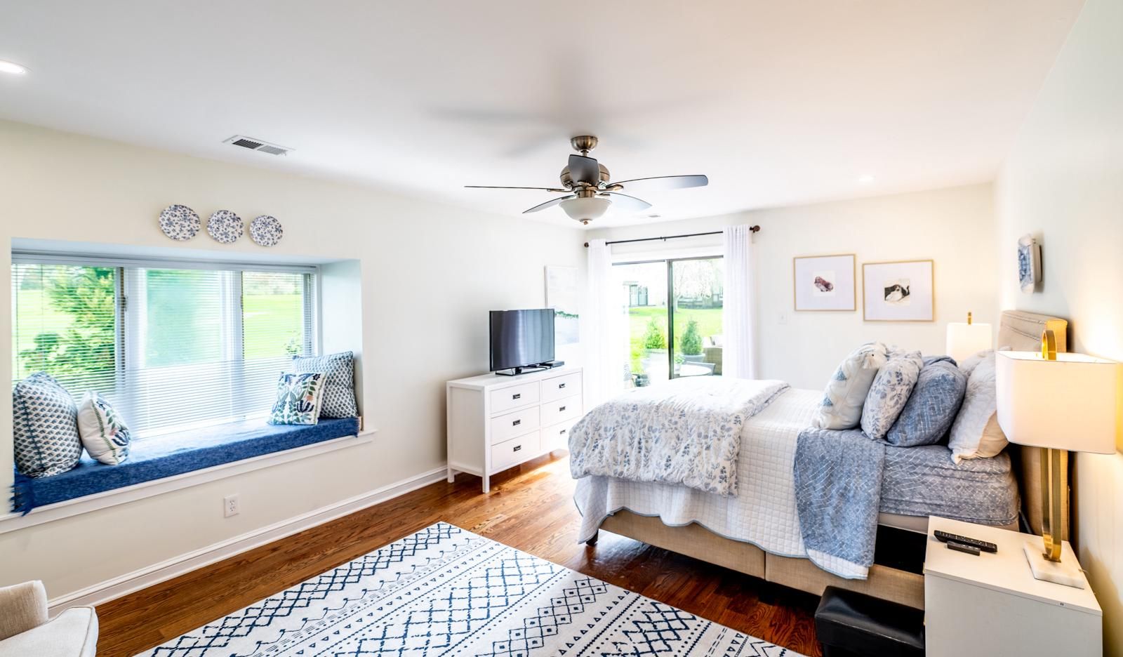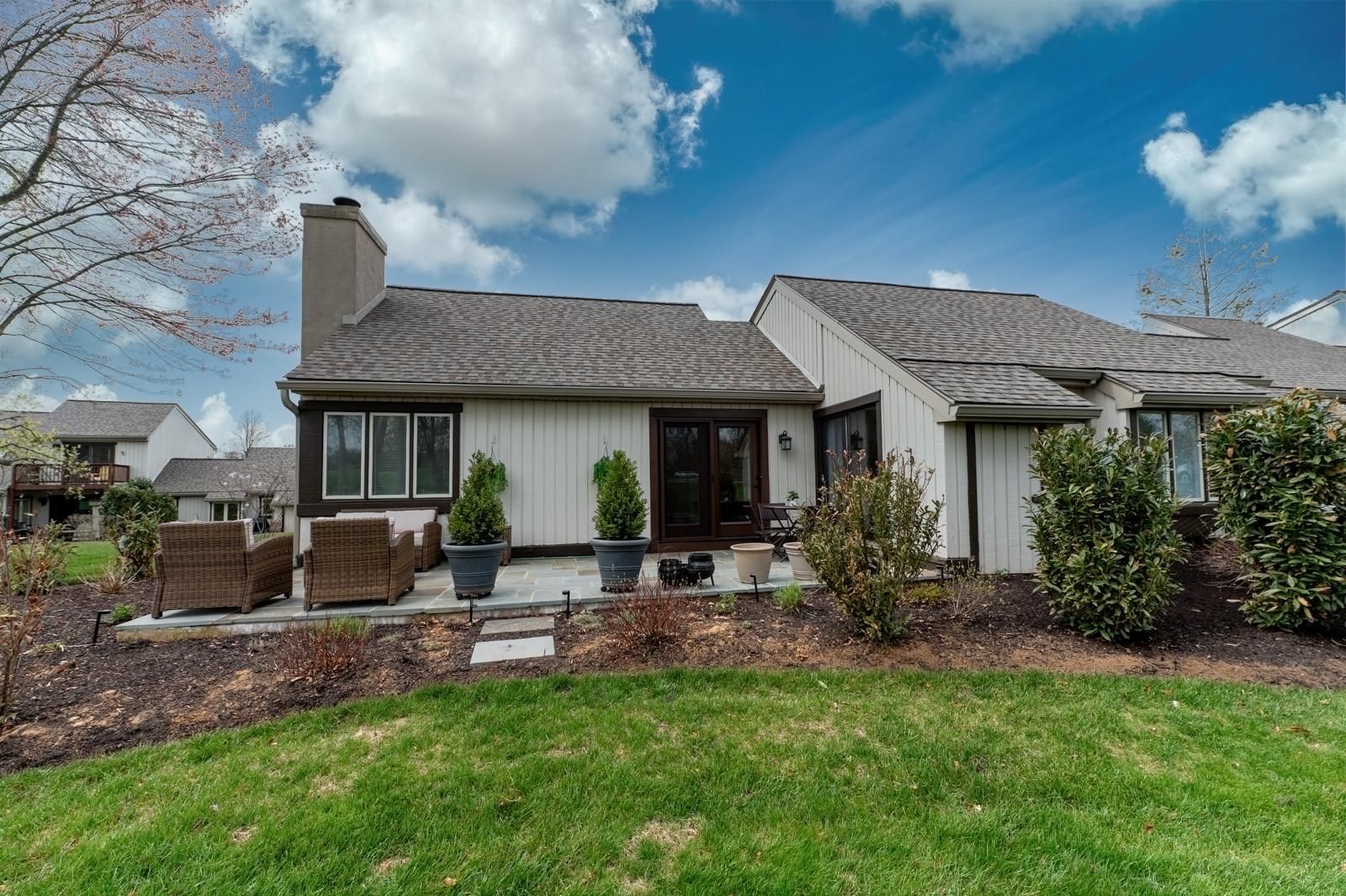 Welcome to this stunning, beautifully updated, and sun-drenched end-unit home in Hershey’s Mill, offering picturesque golf course views. This desirable Malbrough floor plan with 3 bedrooms, 2 full baths has been thoughtfully opened to create a seamless flow, perfect for both everyday living and elegant entertaining. Every window showcases breathtaking and unobstructed views, filling the home with natural light. Designer touches abound, including impressive millwork, custom built-in cabinetry, and a stylish bar/butler’s buffet area. The living room is a true showpiece, featuring shiplap detailing surrounding the fireplace and a striking new mantel. Every detail has been carefully curated to impress. Meticulously maintained, this home is truly move-in ready, with a newer kitchen with island seating, updated bathrooms, newer windows, newer roof, and fresh paint inside and out—offering both beauty and peace of mind. Step outside to the new private and spacious slate patio with lovely new landscaping, where you can enjoy your morning coffee or unwind in the evening while taking in the serene open space and sweeping views of the 17th hole. Hershey’s Mill is an active and sought after 55+ community with 24-hour security, low maintenance living with plenty of activities and amenities for everyone. You will enjoy the heated outdoor pool, library, community center, pickleball, tennis, walking trails, woodshop, bocce, gardens….the list goes on. There is an 18-hole golf course and clubhouse for an additional fee. You will wish you moved in sooner!