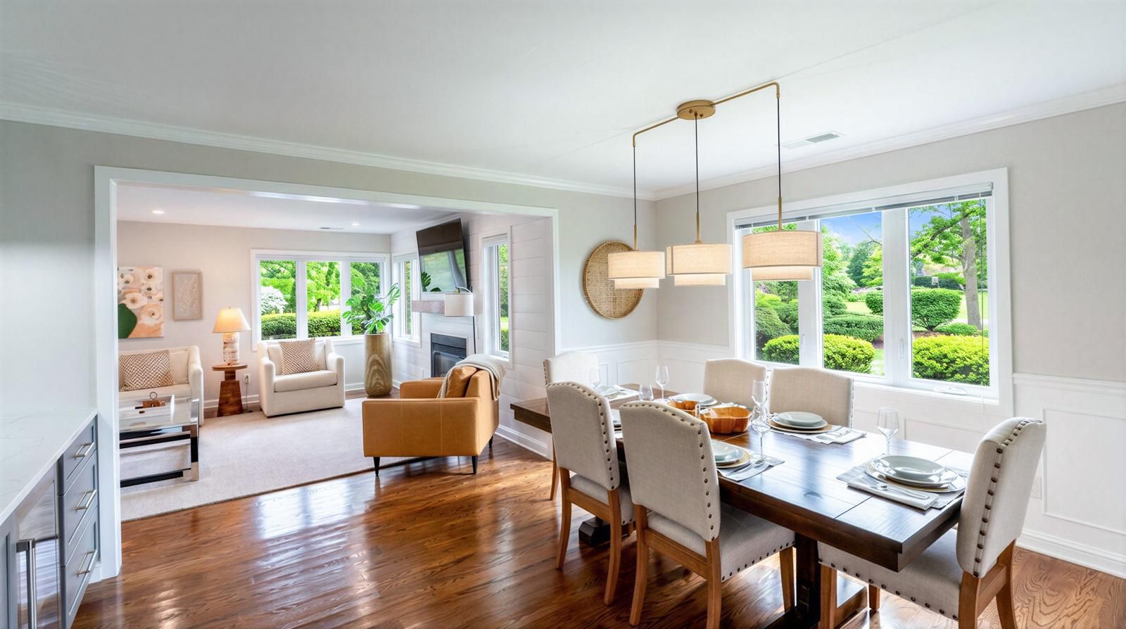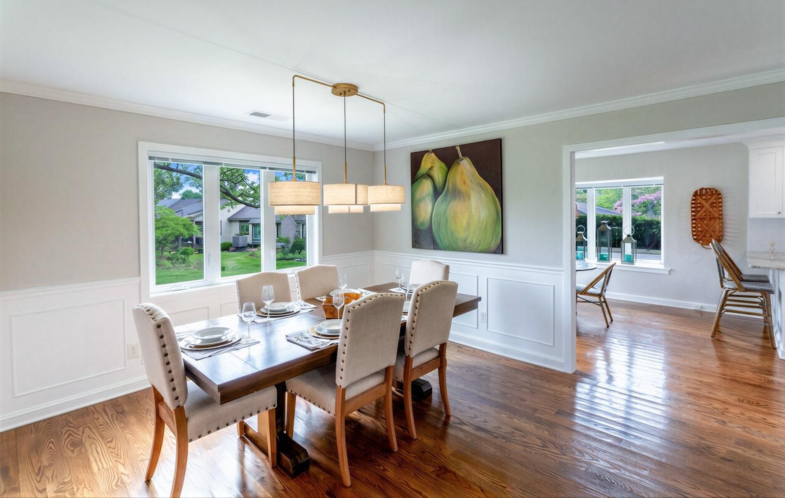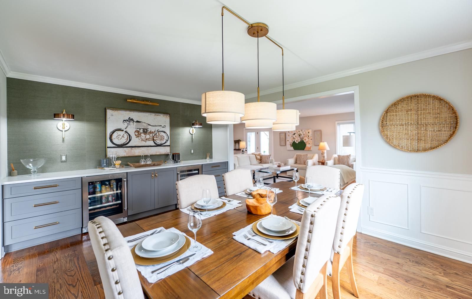 - Bathroom - Stall Shower, Bathroom - Tub Shower, Breakfast Area, Built-Ins, Butlers Pantry, Crown Moldings, Dining Area, Entry Level Bedroom, Floor Plan - Open, Formal/Separate Dining Room, Kitchen - Gourmet, Pantry, Primary Bath(s), Recessed Lighting, Upgraded Countertops, Wainscotting, Walk-in Closet(s), Wet/Dry Bar, Wood Floors, Ceiling Fan(s)