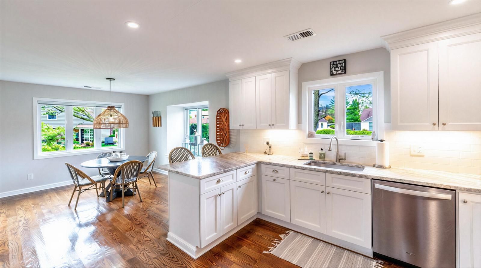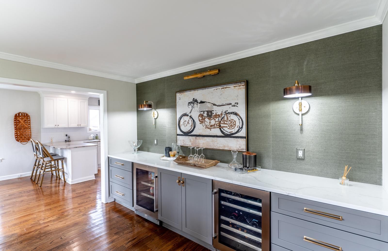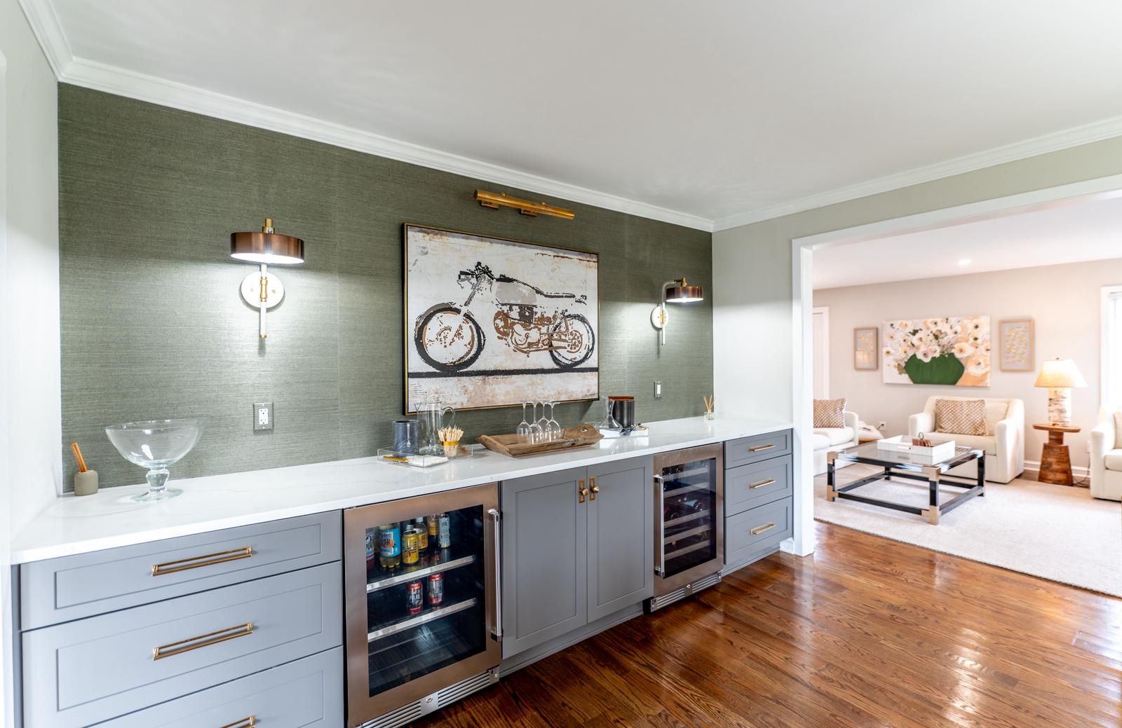 - Bathroom - Stall Shower, Bathroom - Tub Shower, Breakfast Area, Built-Ins, Butlers Pantry, Crown Moldings, Dining Area, Entry Level Bedroom, Floor Plan - Open, Formal/Separate Dining Room, Kitchen - Gourmet, Pantry, Primary Bath(s), Recessed Lighting, Upgraded Countertops, Wainscotting, Walk-in Closet(s), Wet/Dry Bar, Wood Floors, Ceiling Fan(s)
