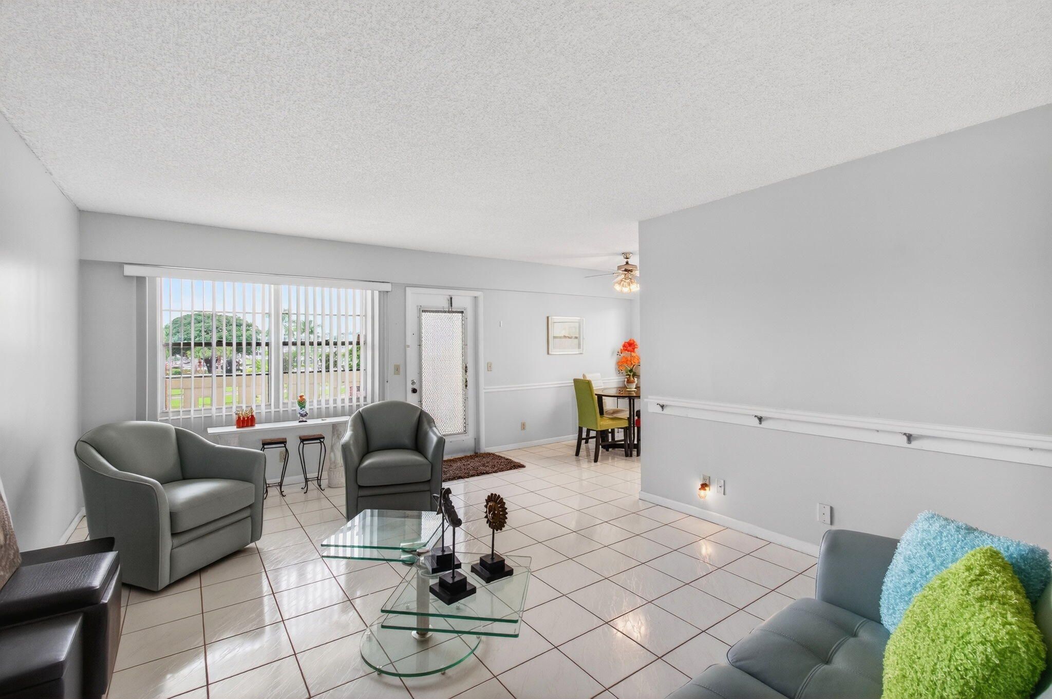 CENTURY VILLAGE--ACTIVE ADULT COMMUNITY, 55+ COMMUNITY. This fantastic condo is in the highly coveted Century Village Active Adult Community. The corner third-floor condo is in a peaceful, tranquil location, offering a breathtaking lake view. The screened-in patio has ample space for seating, dining, and entertainment. The building is conveniently located, just a 5-minute walk to the gate and a 10-minute walk from places of worship and the clubhouse. The monthly HOA payments include WiFi, basic cable, and water, making it a hassle-free living experience for residents. Moreover, residents can enjoy world-class amenities, including a fitness center, social spaces, a performance theater, and more, all housed in the expansive clubhouse.