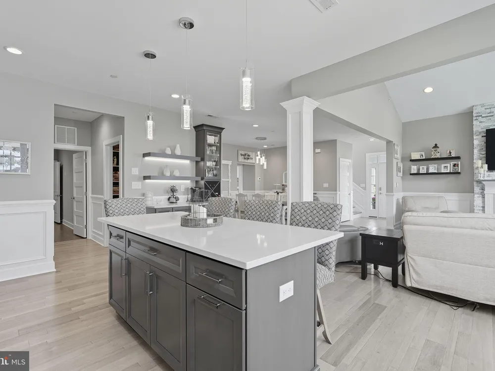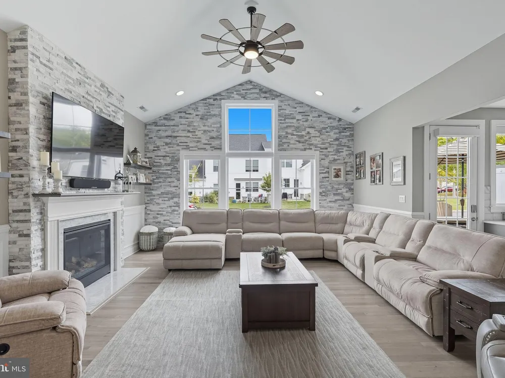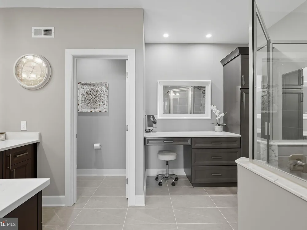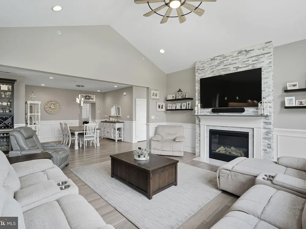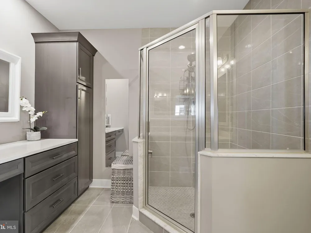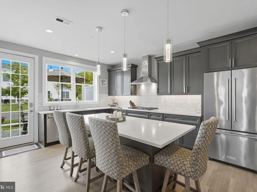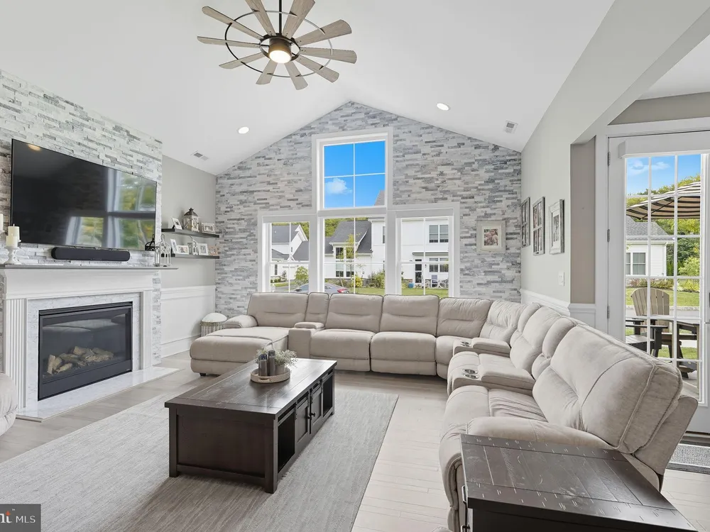 Welcome to this stunning quad-style home with 3 bedrooms and 2.5 baths that blends luxury, comfort, and convenience in the highly sought-after 55+ community of Yardley Preserve. From the moment you arrive, you’ll be impressed by the landscaping, decorative stone accents, high-end exterior lighting, a bluestone patio, and a Larson front storm door with a built-in screen—setting the tone for refined living. Step inside to discover an open floor plan filled with natural light, recessed lighting, Bengal Bay random-width hardwood floors, and fresh designer paint. The spacious family room boasts a dramatic cathedral ceiling, a stone fireplace wall with a custom mantle, a ceiling fan, and motorized window treatments. The dining area is a spacious, open area. The gourmet kitchen is a true showstopper with upgraded Century cabinetry, high-end hardware, Eternal Calcutta Gold countertops, KitchenAid stainless steel appliances, a walk-in pantry with custom organization, and a stylish coffee/wine bar with a built-in beverage cooler. Custom trim work, wainscoting, and thoughtful details carry throughout. The first-floor owner’s suite offers a luxurious retreat with a cathedral ceiling, two professionally organized walk-in closets, a custom-built accent wall for added elegance, and a spa-like bathroom featuring an additional custom vanity, upgraded ceramic tile, dual sinks, and a walk-in shower. Also on the main level, a large laundry room with abundant storage and an upgraded powder room with a stone accent wall add both convenience and style.On the second floor, you’ll find a generous loft perfect as a second family room or office, two spacious bedrooms, a full bath with upgraded tile and an oversized linen closet, and a huge storage room.Additional highlights include a finished, expanded 25' oversized 2-car garage with an epoxy-coated floor and storage room, a Ring doorbell, and an outdoor sound system with patio speaker. Designer upgrades such as crown molding in the foyer and loft, stained treads with painted risers, and contemporary railings add elegance throughout. With every detail thoughtfully designed, this home blends luxury, comfort, and convenience in one of Yardley’s most desirable active-adult communities.