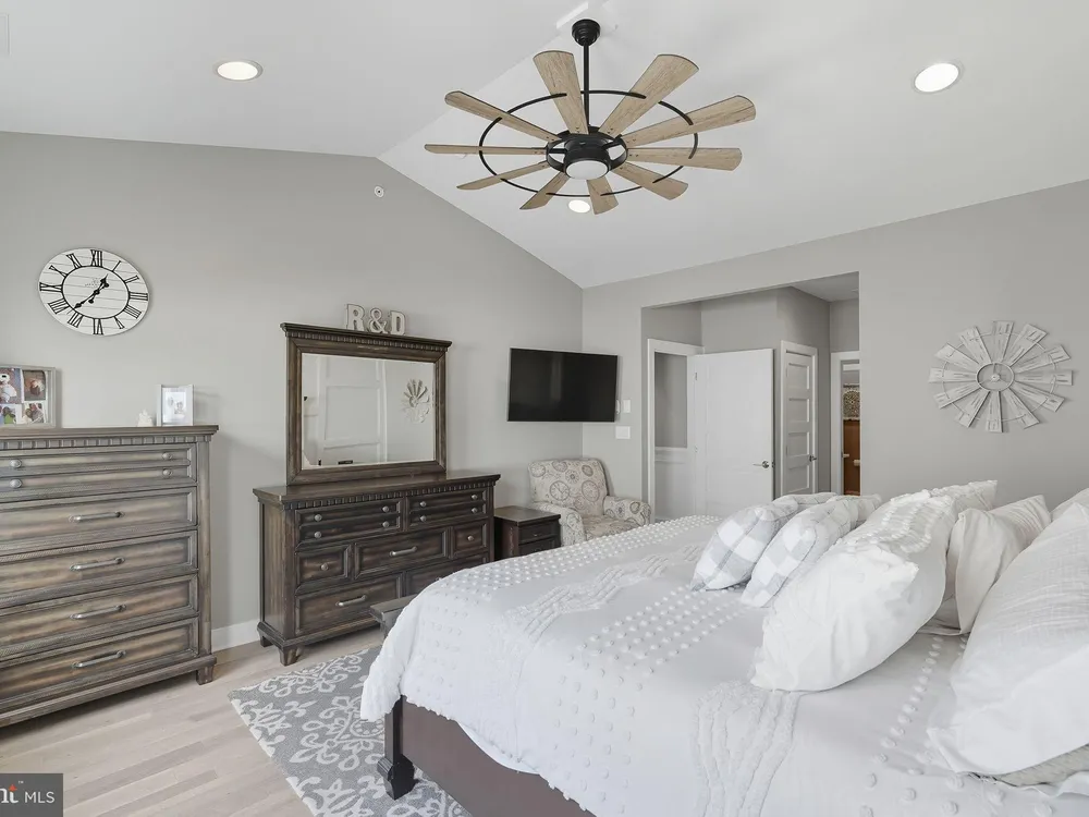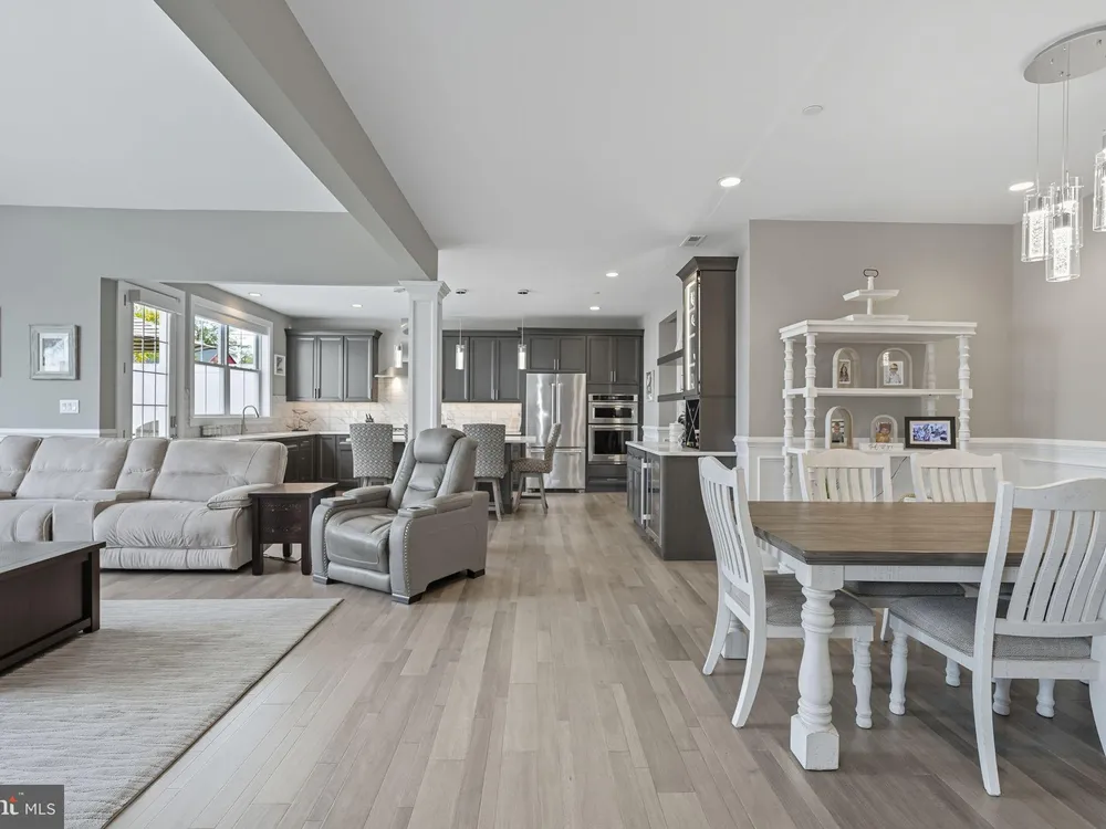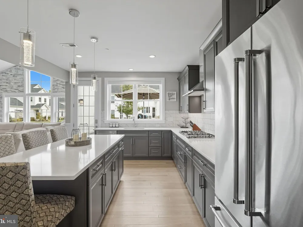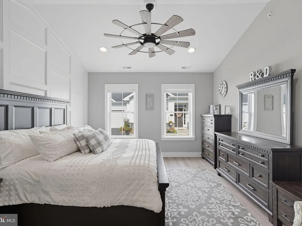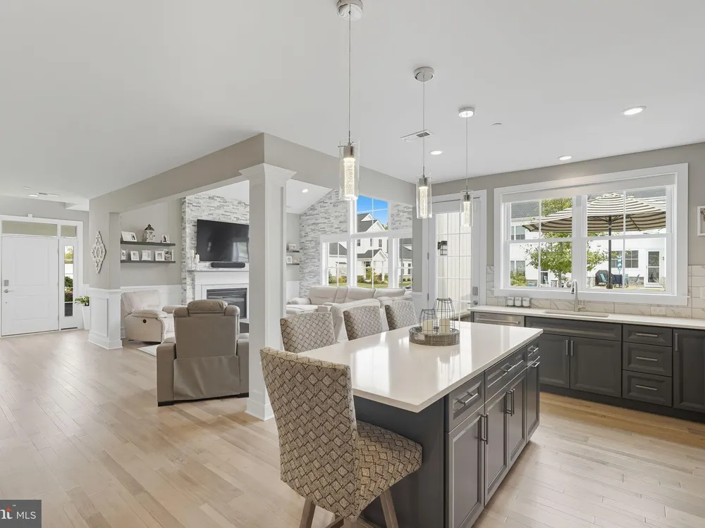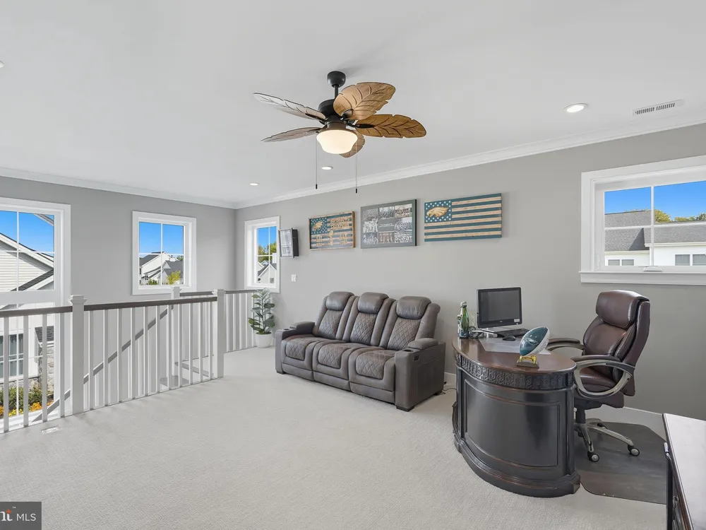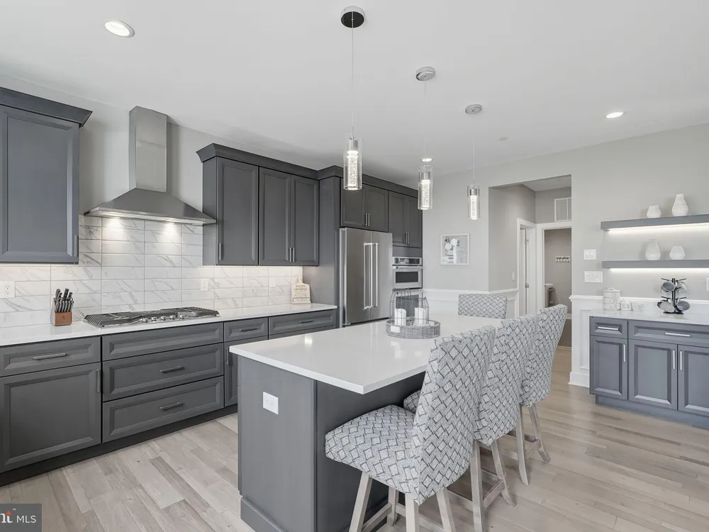 Welcome to this stunning quad-style home with 3 bedrooms and 2.5 baths that blends luxury, comfort, and convenience in the highly sought-after 55+ community of Yardley Preserve. From the moment you arrive, you’ll be impressed by the landscaping, decorative stone accents, high-end exterior lighting, a bluestone patio, and a Larson front storm door with a built-in screen—setting the tone for refined living. Step inside to discover an open floor plan filled with natural light, recessed lighting, Bengal Bay random-width hardwood floors, and fresh designer paint. The spacious family room boasts a dramatic cathedral ceiling, a stone fireplace wall with a custom mantle, a ceiling fan, and motorized window treatments. The dining area is a spacious, open area. The gourmet kitchen is a true showstopper with upgraded Century cabinetry, high-end hardware, Eternal Calcutta Gold countertops, KitchenAid stainless steel appliances, a walk-in pantry with custom organization, and a stylish coffee/wine bar with a built-in beverage cooler. Custom trim work, wainscoting, and thoughtful details carry throughout. The first-floor owner’s suite offers a luxurious retreat with a cathedral ceiling, two professionally organized walk-in closets, a custom-built accent wall for added elegance, and a spa-like bathroom featuring an additional custom vanity, upgraded ceramic tile, dual sinks, and a walk-in shower. Also on the main level, a large laundry room with abundant storage and an upgraded powder room with a stone accent wall add both convenience and style.On the second floor, you’ll find a generous loft perfect as a second family room or office, two spacious bedrooms, a full bath with upgraded tile and an oversized linen closet, and a huge storage room.Additional highlights include a finished, expanded 25' oversized 2-car garage with an epoxy-coated floor and storage room, a Ring doorbell, and an outdoor sound system with patio speaker. Designer upgrades such as crown molding in the foyer and loft, stained treads with painted risers, and contemporary railings add elegance throughout. With every detail thoughtfully designed, this home blends luxury, comfort, and convenience in one of Yardley’s most desirable active-adult communities.