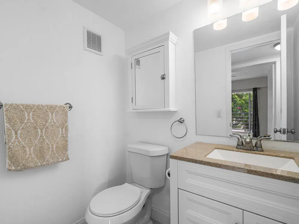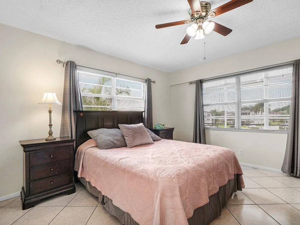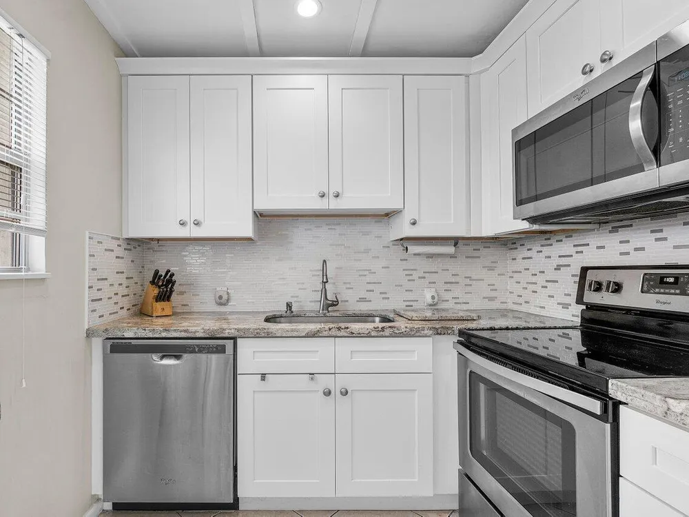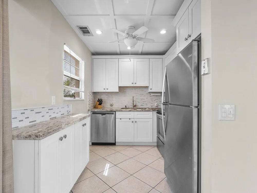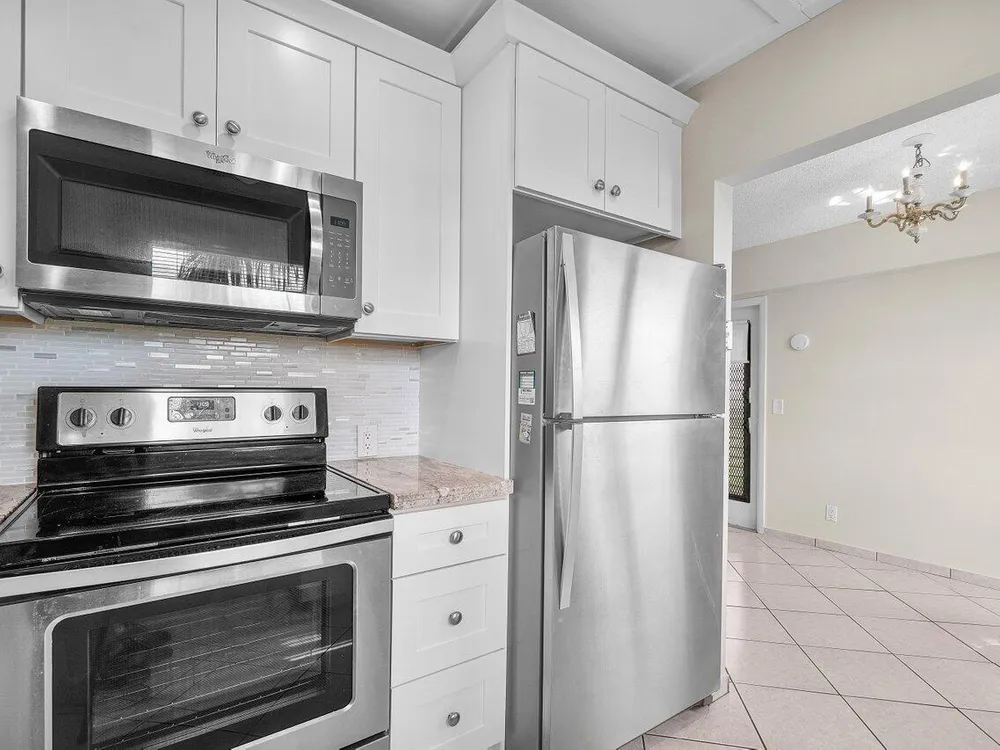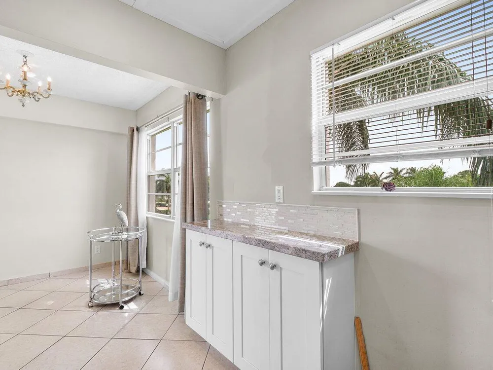 Top-floor corner unit in Century Village Boca Raton featuring 2 bedrooms, impact windows, and an updated kitchen with granite counters, white cabinets, and stainless appliances. Newer mechanicals. No upstairs neighbors. Easy to show and priced to sell. HOA includes cable, internet, and water. Century Village offers a clubhouse, fitness studio, theater, tennis, pickleball, bocce, and more. A must-see.