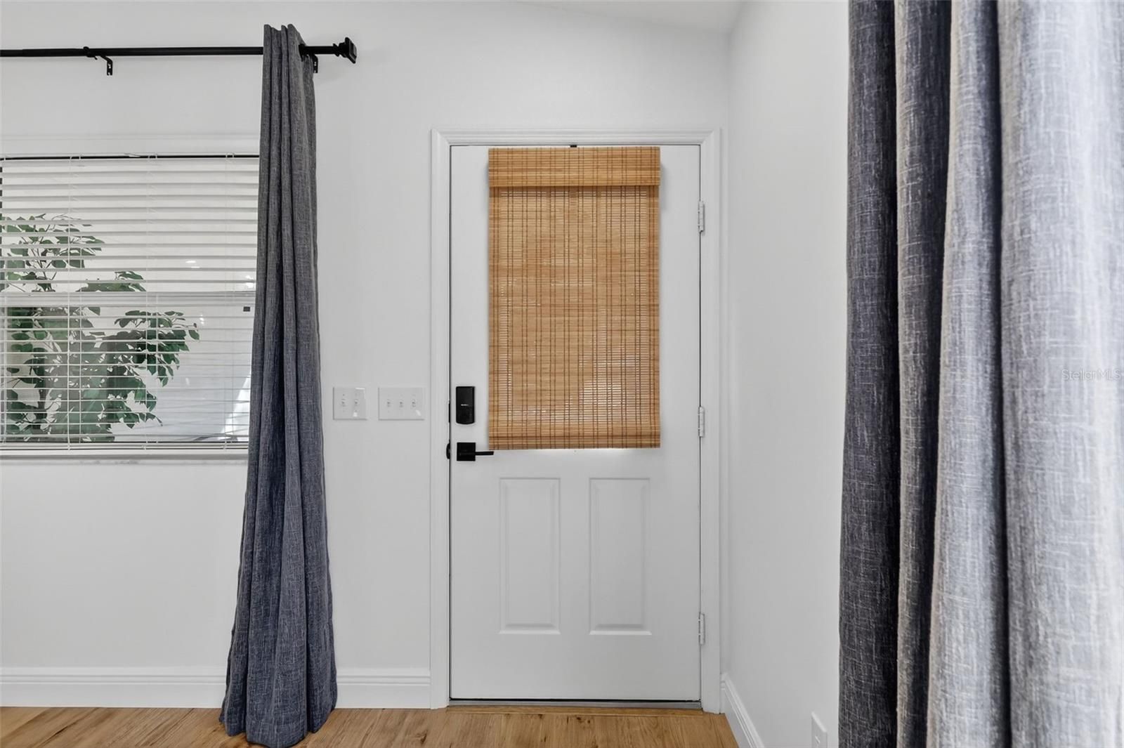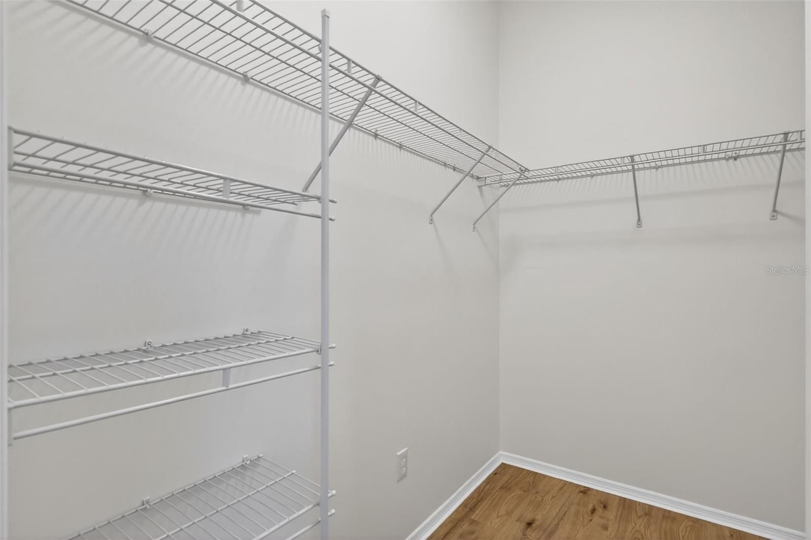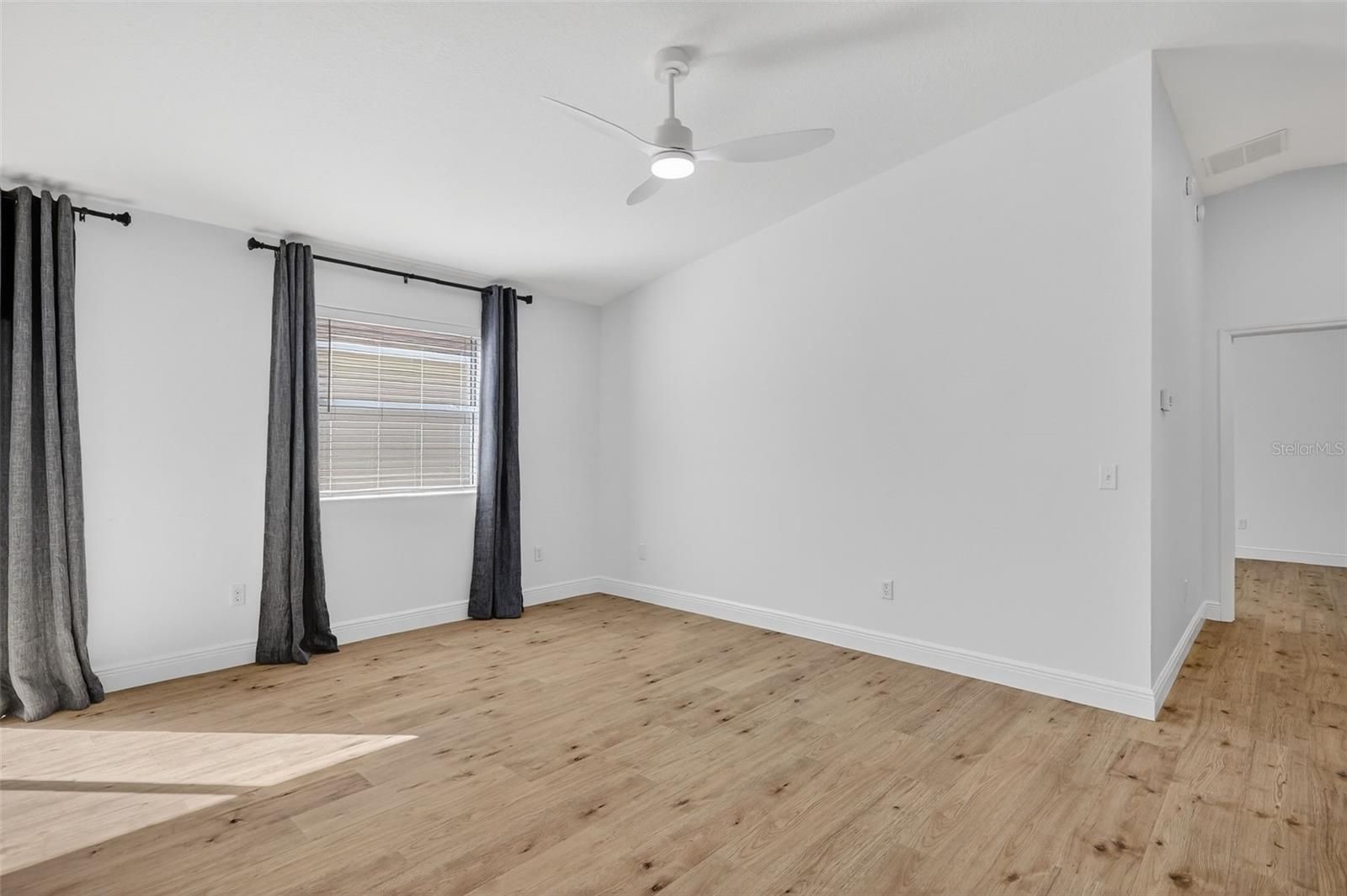 - Ceiling Fan(s), Eat-in Kitchen, High Ceilings, Living/Dining Room, Open Floorplan, Main Level Primary, Solid Surface Counters, Thermostat, Vaulted Ceiling(s), Walk-In Closet(s)