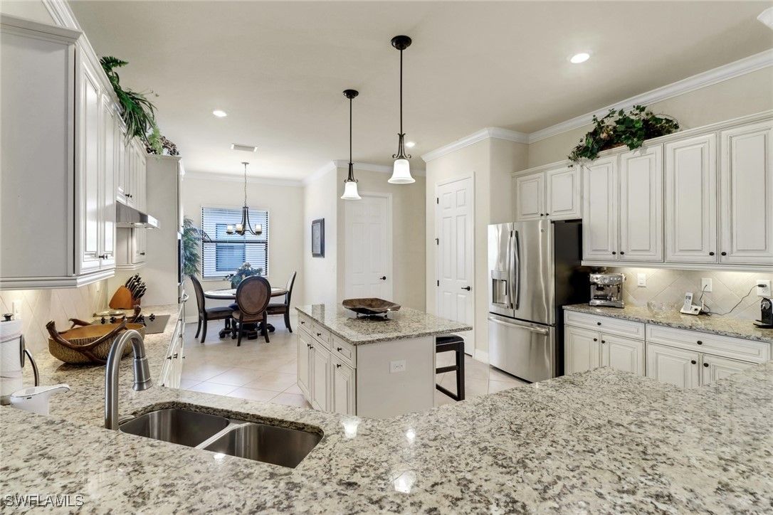 Set within the gated community of Bonita National, this Sanford model offers a well-balanced blend of space, comfort, and everyday livability. The home features 4 bedrooms, 3 baths, a 3-car garage, and approximately 2,271 sq. ft. of thoughtfully arranged living space. Built in 2018 and positioned on a lakefront lot, it enjoys calm water views that add a sense of openness and ease to the home. The Sanford floor plan is appreciated for its practical layout and natural flow. The main living area brings the kitchen, dining space, and great room together, making it easy to stay connected whether you’re hosting friends or enjoying a quiet day at home. The kitchen offers generous counter space and storage and opens directly to the living area, keeping the space functional and inviting. The owner’s suite is tucked away for privacy, while the additional bedrooms provide flexibility for guests, working from home, or additional living needs. A screened lanai with a private heated pool overlooks the lake and creates a comfortable outdoor space to relax, dine, or unwind at the end of the day. It feels like a natural extension of the home and fits well with the Southwest Florida lifestyle. The home includes a Social Membership, allowing residents to enjoy Bonita National’s amenities without the added cost of golf dues. Community features include a resort-style pool with a waterfall, a full-service spa, a fitness center with group classes, tennis courts, and multiple dining options ranging from casual poolside dining to clubhouse meals. The setting offers a balance of activity and relaxation, depending on how you choose to spend your time. Bonita National offers 24-hour gated security and a convenient location between Naples and Fort Myers. Downtown Bonita Springs, Riverside Park events, and popular local dining such as Angelina’s Ristorante and The Bohemian are just a short drive away. This Sanford model delivers comfortable living, lakefront views, and access to amenities that support an easy, well-rounded Southwest Florida lifestyle.