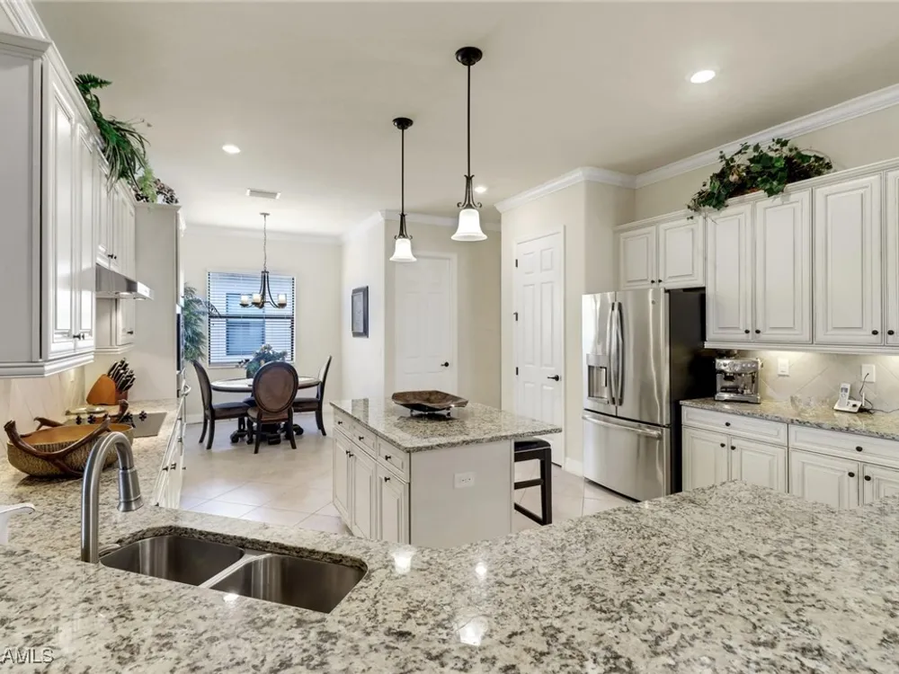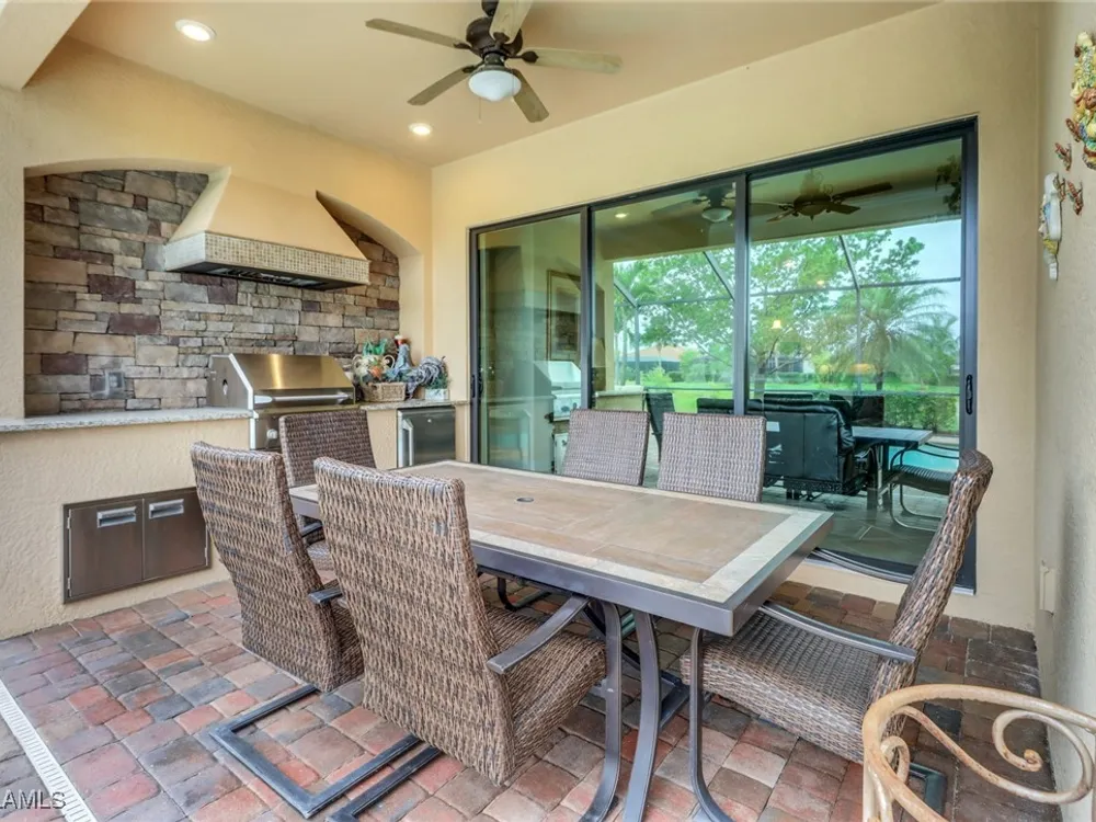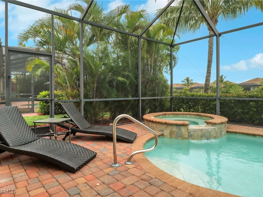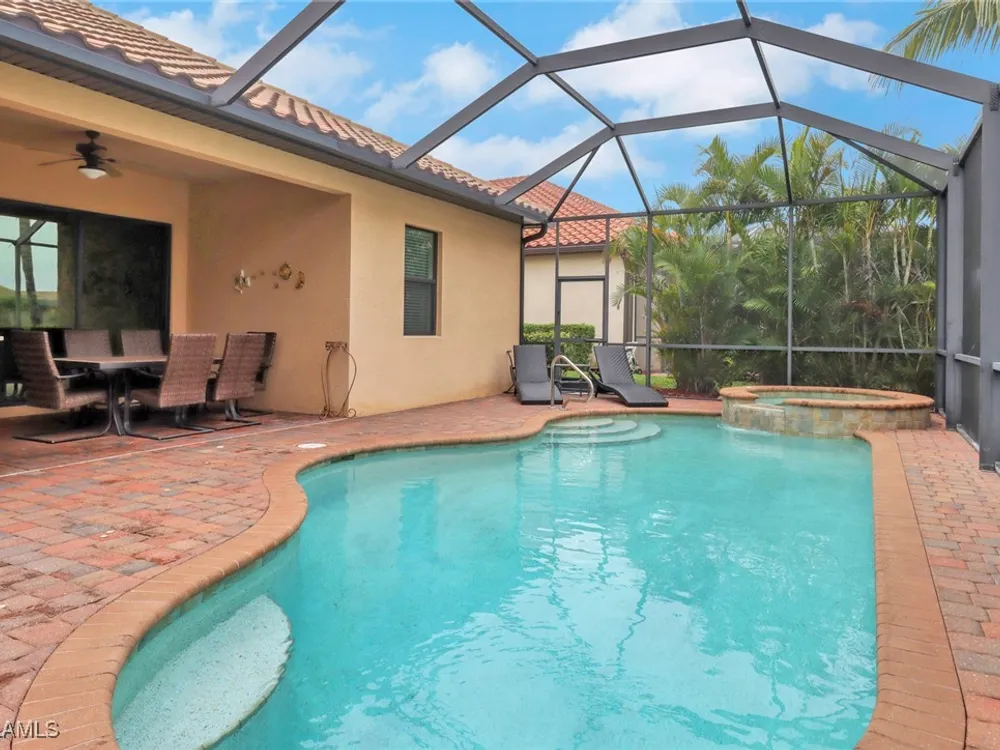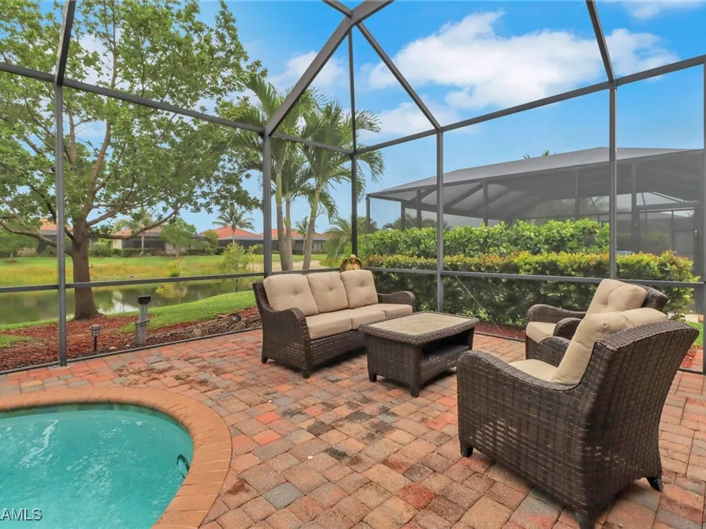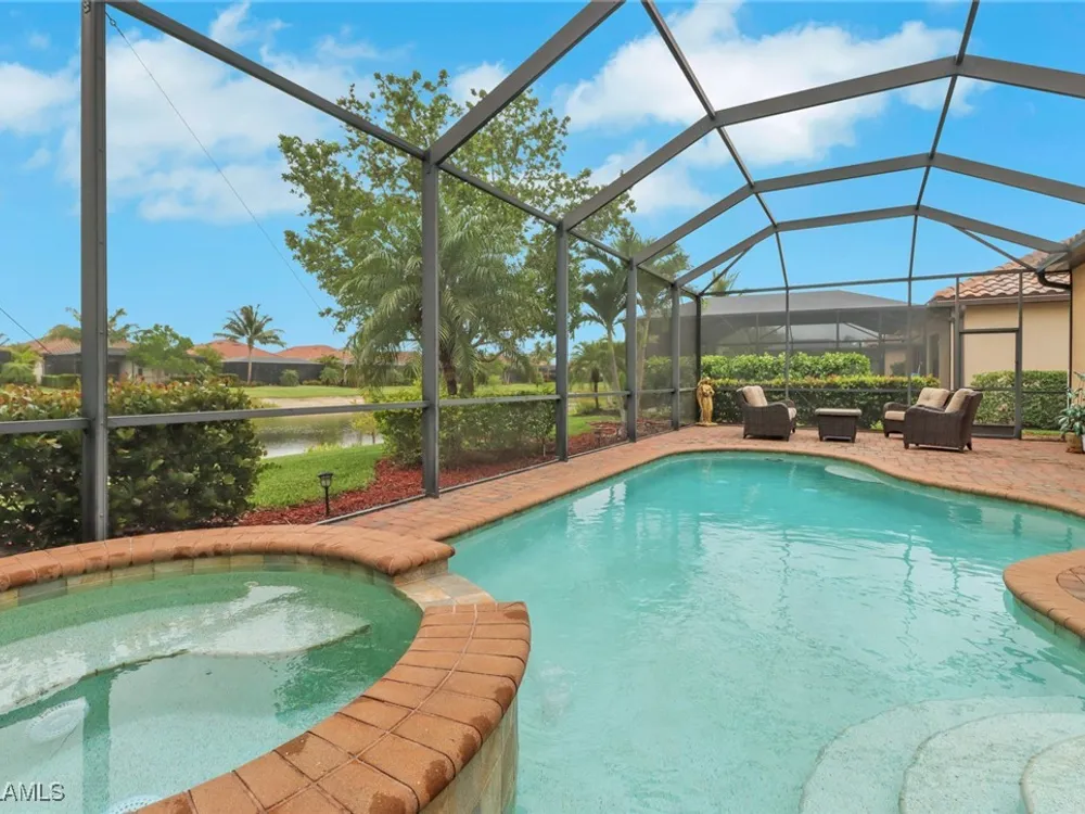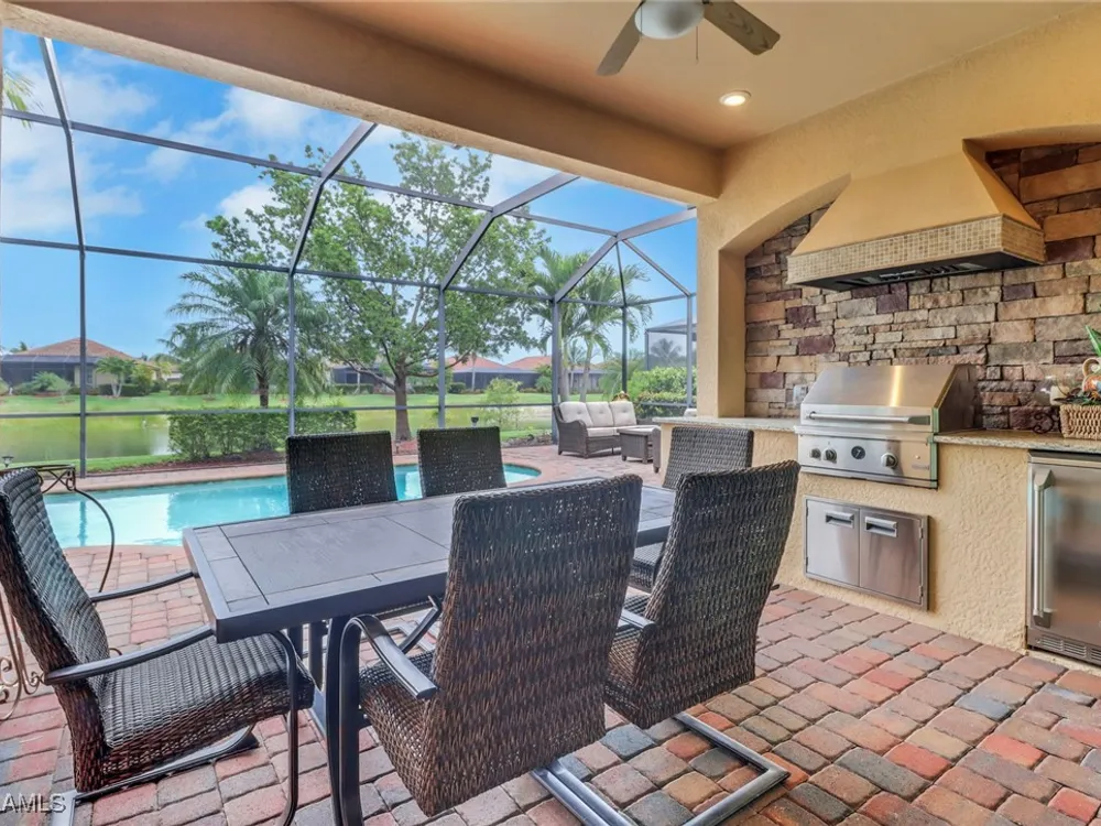 Beautifully maintained Stanford model in Bonita National offering 4 bedrooms, 3 baths, and 2,271 sq ft of open-concept living space. This home features granite countertops, custom cabinetry, stainless steel appliance package, tray ceilings with crown molding, tile flooring in main living & wet areas. Step outside to the screened lanai with a custom outdoor kitchen, heated pool and spa overlooking a tranquil lake. Includes a 3-car garage and full social membership. Enjoy resort-style amenities including a lagoon-style pool, clubhouse dining, fitness center, spa, and tennis.