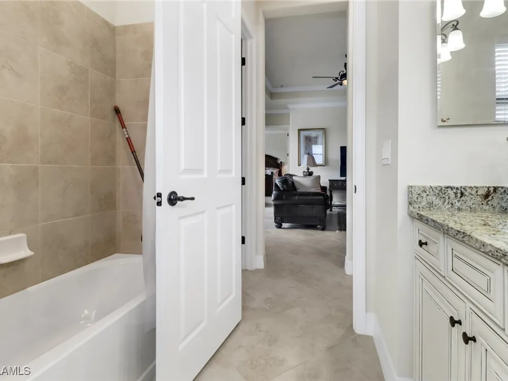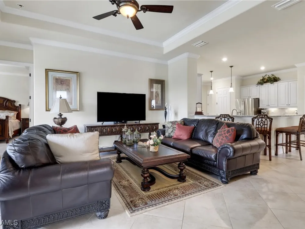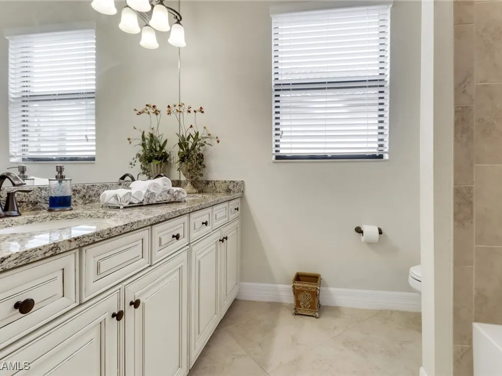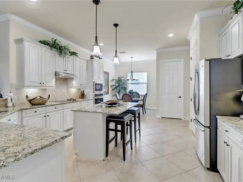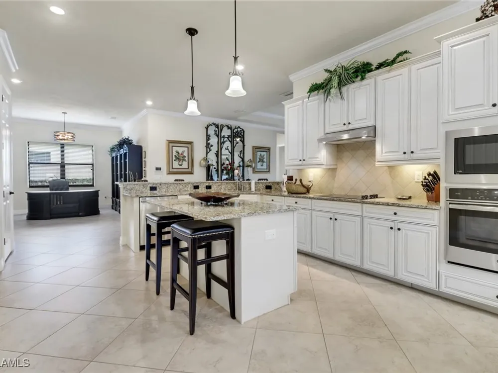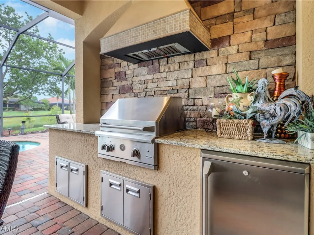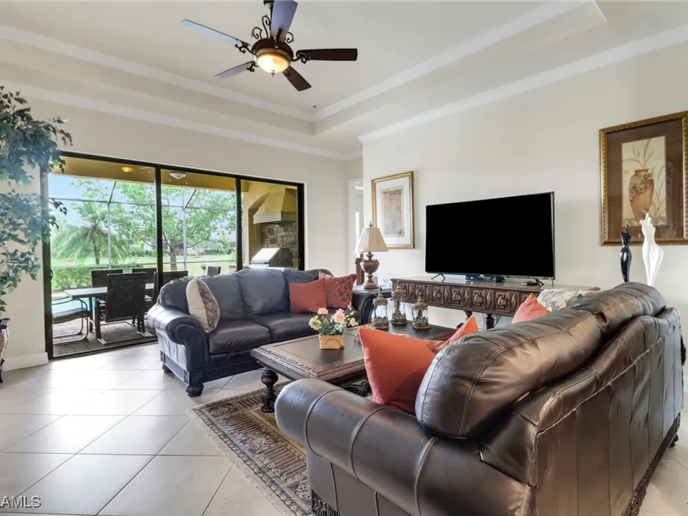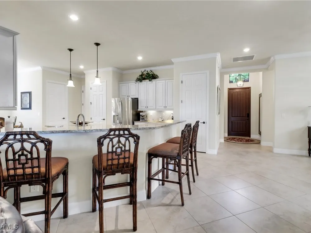 Beautifully maintained Stanford model in Bonita National offering 4 bedrooms, 3 baths, and 2,271 sq ft of open-concept living space. This home features granite countertops, custom cabinetry, stainless steel appliance package, tray ceilings with crown molding, tile flooring in main living & wet areas. Step outside to the screened lanai with a custom outdoor kitchen, heated pool and spa overlooking a tranquil lake. Includes a 3-car garage and full social membership. Enjoy resort-style amenities including a lagoon-style pool, clubhouse dining, fitness center, spa, and tennis.