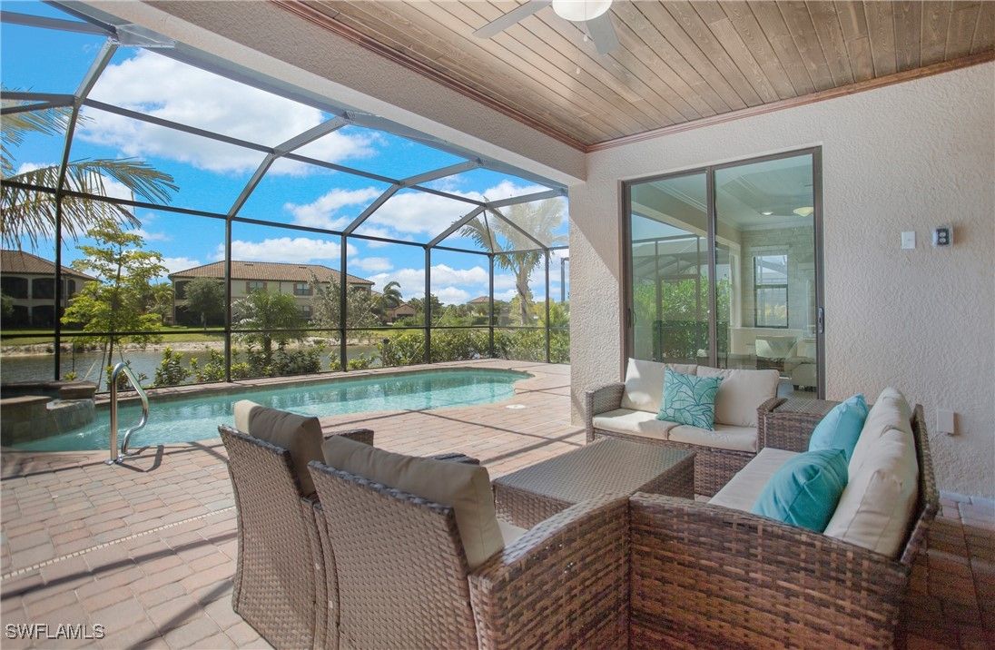 Built in 2021, this beautifully maintained 4-bedroom, 2-bathroom pool home is located in Bonita National Golf & Country Club. This Isabella floor plan is designed for both elegance and comfort. This residence showcases an open concept with exquisite tray ceilings, crown molding, and abundant natural light. The modern kitchen features a spacious island, sleek cooktop with wall oven, and plenty of storage—perfect for everyday living and entertaining. With tile and hardwood floors throughout (no carpet), this home blends style with practicality. Step outside to your private retreat where a sparkling pool, spa, and fully equipped outdoor kitchen await. Overlooking a serene lake view, the covered lanai and pool area offers the ultimate space to relax or host gatherings year-round. Additional peace of mind comes with impact windows, the coveted X flood zone location, and guard gate at the entrance to the community. As a homeowner, you’ll enjoy a Social Membership, granting access to world-class resort amenities including a lagoon-style pool and spa, fitness center, U-Topia Spa, tennis, fine and casual dining, and soon-to-come pickleball and bocce courts.The location is just 10 miles to gulf beaches- Barefoot Beach and Bonita Beach. Convenient location is a straight shot down Bonita Beach Road to shopping, dining, and the upcoming Midtown Bonita development. Everyday conveniences like Publix are only minutes away, while Naples and RSW Airport are all within 20 miles.This home is the perfect blend of luxury, location, and lifestyle — ready for you to enjoy the best of Southwest Florida living.