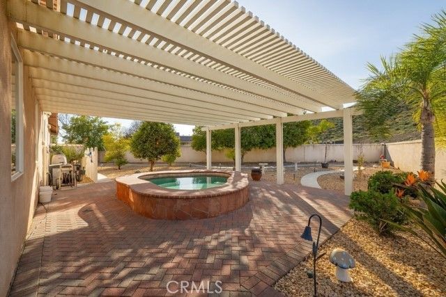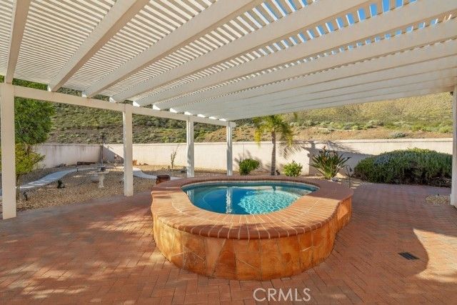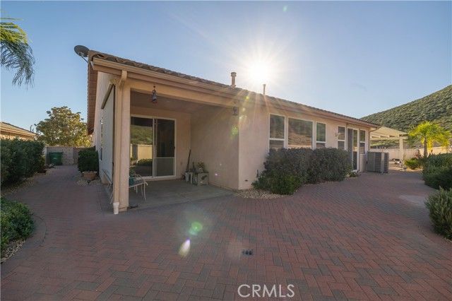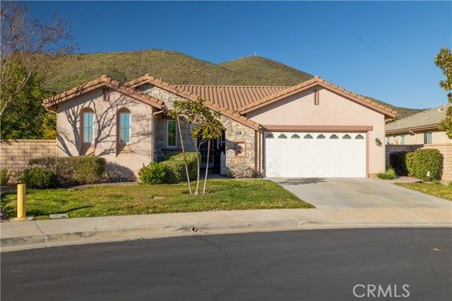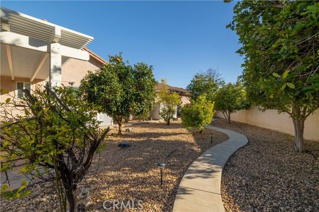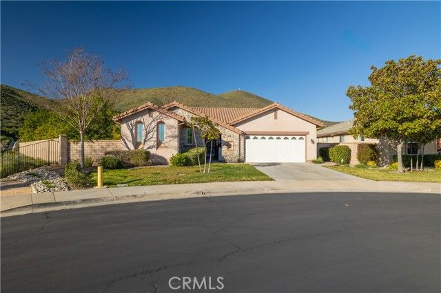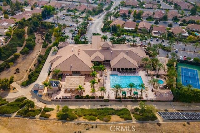 Welcome to the Gated 55+ Resort-Style Community of the Oasis! Take advantage of this rare opportunity! Own a beautifully maintained home located on a large elevated-premium lot. This home offers exceptional privacy with no rear or left side neighbors. Enjoy awesome views of Menifee Valley, hills/mountains, city lights and sunsets. This highly sought-after floor plan offers expansive tile flooring and plantation shutters throughout. The spacious living room is perfect for entertaining highlighted by high tray ceilings, a cozy fireplace, and amazing backyard views framed by the surrounding hills. Gourmet kitchen with butcher block island, granite counter tops, double ovens, crisp white cabinetry, counter height seating, casual eating area and formal dining room. Large laundry room with sink and plenty of cabinets...which leads to the 2 car garage with side storage cabinets and work area. Featuring two generously sized bedrooms and and flexible office/den space. The Primary bedroom offers sliding doors to the scenic rear patio, his and hers closets and vanities, walk-in shower, and large soaking tub. Step outside to the peaceful private backyard which is a true Retreat. Take in the serene nature and sweeping mountain views while relaxing in your Custom Built-In Spa! This low maintenance private yard offers Custom Pavers, Alumawood cover, automatic drip system, fruit trees, and private block walls. New HVAC system replaced in 2024. HOA covers front yard water, landscape care, and trash. Amenities include: large clubhouse, fitness center, library, sparkling pool/spa, tennis/pickle ball and much more! Close to shopping, dining, and freeway. Fantastic location approximately 1 hour from beaches, deserts,and mountains. Short drive to Temecula Valley Wineries. Call for a private tour of this truly special home!