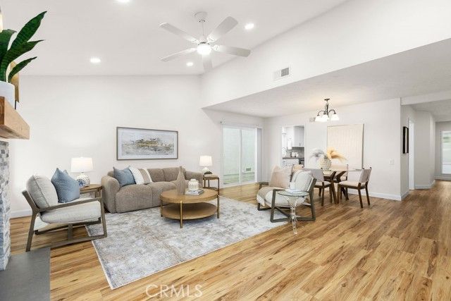 Welcome to 28133 Via Espinoza, a beautifully updated single-level home nestled in the highly sought-after 55+ community of Casta del Sol in Mission Viejo. Ideally situated on a rare single-loaded street, this residence offers exceptional privacy, tranquility, and a truly picturesque setting. Inside, you'll find a light-filled, open-concept layout with vaulted ceilings and spacious living areas designed for both comfort and entertaining. Luxury vinyl plank flooring flows throughout the home, offering both style and durability. The updated kitchen features modern finishes, ample cabinetry, and a functional layout that seamlessly connects to the dining and living spaces. The home offers generously sized bedrooms, including a private primary suite positioned at the front of the home-separated from the main living areas for added peace and privacy-complete with an en-suite bath and abundant closet space. A versatile third bedroom is located just off the spacious family room, making it ideal for a home office, guest room, or optional third bedroom to suit your needs. Step outside to your private patio and take in the beautiful views-perfect for morning coffee or unwinding in a quiet, serene environment. Additional highlights include ample guest parking conveniently located nearby, maki