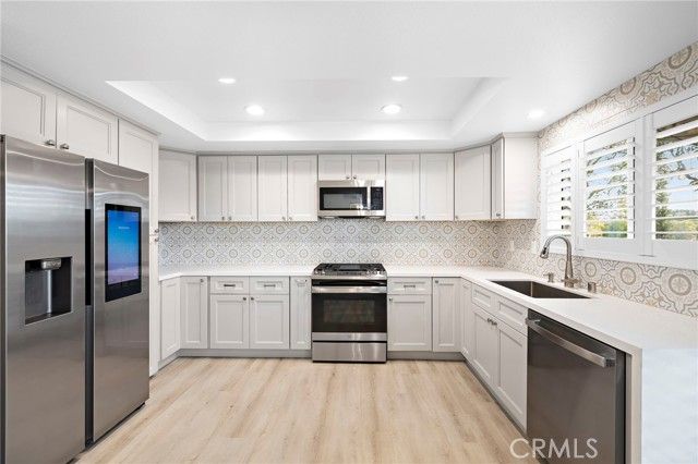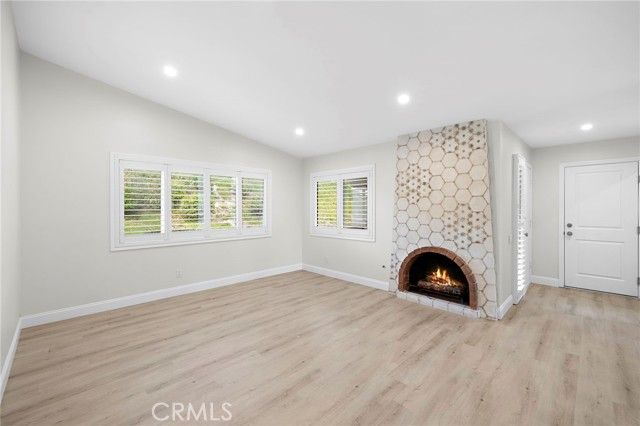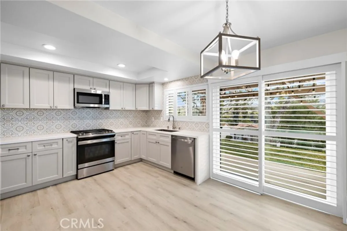 Welcome to the highly coveted 55+ Costa del Sol community in Mission Viejo, where resort-style living meets timeless comfort. This beautifully upgraded single-level home on a single loaded street tucked on a quiet hill with serene mountain views and no direct rear neighbors, offering exceptional privacy. Inside, you're welcomed by brand-new, light-toned LVP flooring and a striking designer fireplace in the inviting living room. The fully remodeled kitchen is a true showstopper, featuring custom cabinetry with soft-close drawers, upgraded GE appliances, a high-tech Samsung refrigerator, custom backsplash, and spacious white quartz countertops with a waterfall edge-ideal for everyday living and entertaining. Both oversized bedrooms are conveniently located off the main living area. The guest bathroom offers custom cabinetry and an upgraded walk-in shower, while the serene primary suite enjoys mountain and hillside views, enhanced privacy, and a beautifully upgraded en-suite bath with custom cabinets and a walk-in shower. Additional highlights include custom shutters, new energy-efficient dual-pane windows and sliders, and thoughtful designer finishes throughout. Residents enjoy Mission Viejo Lake access and an impressive list of amenities including two recreation centers, pools, sp
