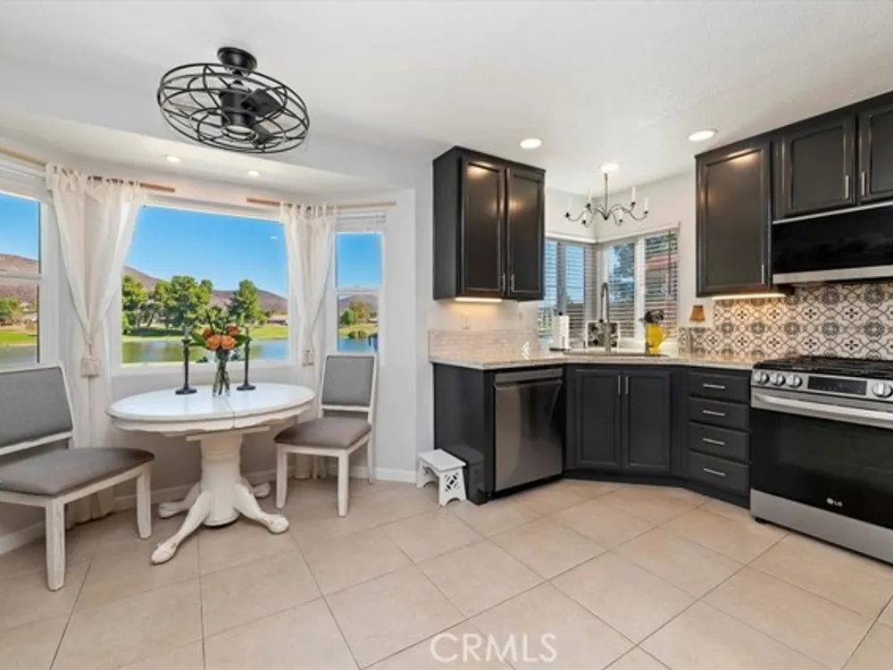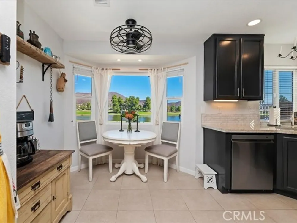 VIEWS OF THE GOLF COURSE, VIEWS OF THE LAKE,VIEWS OF THE MOUNTAINS! This fantastic home was Designer remodeled in 2024. It has NEW windows, interior paint, exterior paint, lighting, toilets, baseboards, rocker switches, blinds, and elevated washer and dryer, upper end LG stainless steel appliances. Also new granite counters , stainless steel large sink and faucet, Back splash in deco tiles, cabinets painted and glazed, new hinges and handles, pullouts and breakfast nook with a killer view. the is a new filtered water system, garbage disposal and ceiling fans, under cabinet lighting. TV/office room (3rd bedroom) has a built-in desk(closet is removed) and tv mount. Large primary suite with dual vanity, large shower and slider to front patio, as well as a walk in closet and ceiling fan. There is tile throughout the house except bedrooms with carpet. Primary living areas have cathedral ceilings. Water heater and AC replaced in the past 3-4 year. The tile roof was redone with new 2 ply paper in 2024. The 2 car garage has built in shelves, and attic storage. Astro turf front yard, paver walks and accents. The property has easy to maintain landscaping and plants. All of this PLUS it is located the Palmilla 55+ community, with a community pool/spa, as well as you have access to plus the