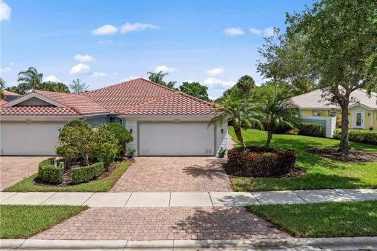 Located on a quiet, short street, this beautifully updated Capri model offers a bright, coastal-inspired retreat with 2 bedrooms, an open den, and 2-car attached garage. NEW ROOF 2023. The extended lanai offers pavers and captures a serene lake view, enhanced by picture-screen panels and a larger retractable awning for sun protection, creating an inviting space to relax any time of day. Inside, the home showcases quartz countertops, a coordinated backsplash, pull-out drawers, and a spacious new kitchen sink. Recent upgrades include vinyl flooring throughout (no carpet), fresh exterior paint, warm interior tones, and updated lighting and fans. Crown molding and custom bead board accents in the bedrooms add a refined coastal touch. Built by DiVosta with poured concrete and reinforced construction, this home reflects lasting quality and thoughtful design. Located in Village Walk of Bonita residents enjoy a wide array of amenities including lighted tennis courts, pickleball, bocce, resort-style and lap pools, a full-service fitness center, dining, salon services, and more. Scenic walking paths, butterfly gardens, and opportunities for birdwatching enhance the community’s natural appeal. Conveniently situated just minutes from Bonita Beach, dining, RSW Airport, and Midtown at Bonita. Low HOA fees and pet-friendly living complete this exceptional offering.