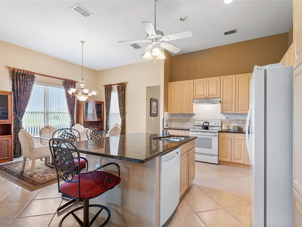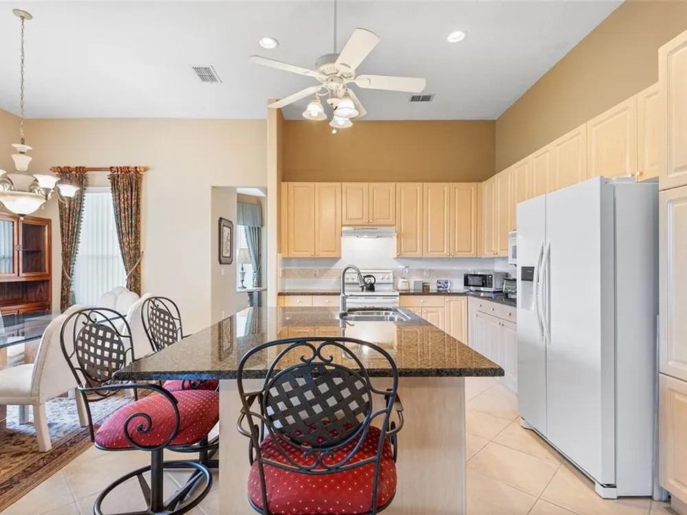 Just minutes from shopping, hospital, dining, and major roadways, discover resort-style living in this beautifully maintained 3-bedroom, 2 and a half-bath home located in the desirable 55+ golf community of Summit Greens. Perfectly positioned to overlook the lush fairways, this single-story gem blends comfort, convenience, and style in an amenity-rich setting. Sited on an expansive 10,315 sq ft lot, the home is graced by mature landscaping and a serene neighborhood setting ideal for outdoor enjoyment. Step inside to an inviting open layout with abundant natural light and thoughtful upgrades, perfect for relaxation and entertaining. The primary suite features custom shelving in both closets for organized, elegant storage. The kitchen is equipped with a brand-new refrigerator (1/2025), and the home outside has been freshly painted (2023) for a move-in-ready feel. Major systems have been meticulously cared for, including a new shingle roof (11/29/2024), new A/C compressor and handler (2021), efficiency of gas central heating, gas water heater, gas connection for stove, plus the convenience of an alarm system and central vacuum system. Enjoy the tranquil golf course views from your screened lanai—ideal for morning coffee or evening sunsets. Summit Greens offers a championship golf course, clubhouse, fitness center, pool, tennis, and a vibrant calendar of social activities, all within a secure, gated environment. This home combines low-maintenance living with modern comfort in one of Clermont’s most sought-after 55+ communities—don’t let this one get away!