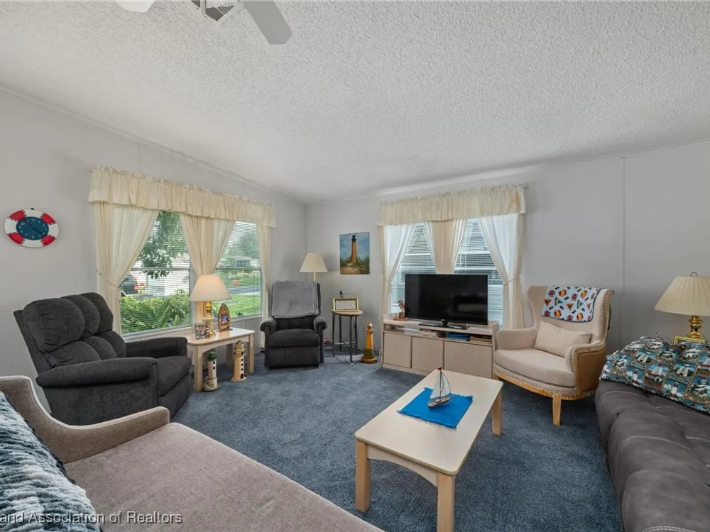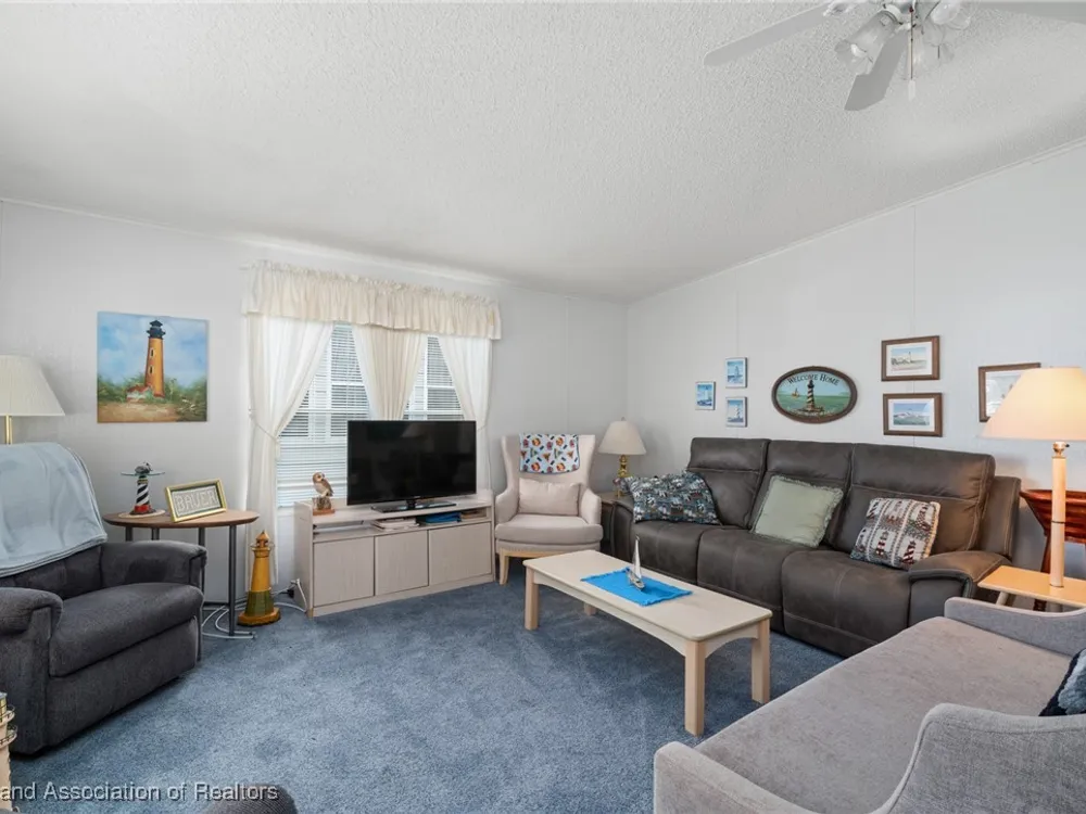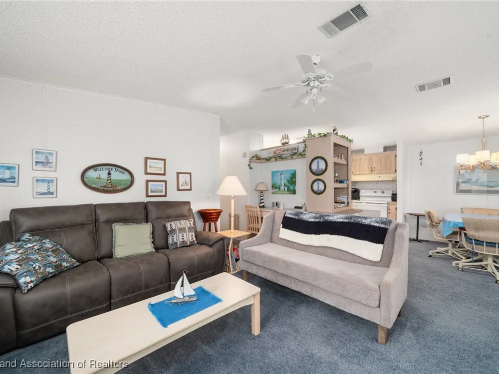 Welcome to your next home in Marina Cove, the sought-after 55+ community nestled within Highlands Ridge! This fully furnished 2-bedroom, 2-bathroom home is move-in ready—just bring your clothes! Priced to sell, this residence offers low lot rent and all the essentials for comfortable living, including a 2019 roof, neutral tones throughout, and cozy carpeted living areas and bedrooms. The kitchen features newer appliances, making meal prep a breeze, while the oversized one-car garage provides extra storage and convenience. Don’t miss out on this charming home in a vibrant golf community—schedule a viewing today!