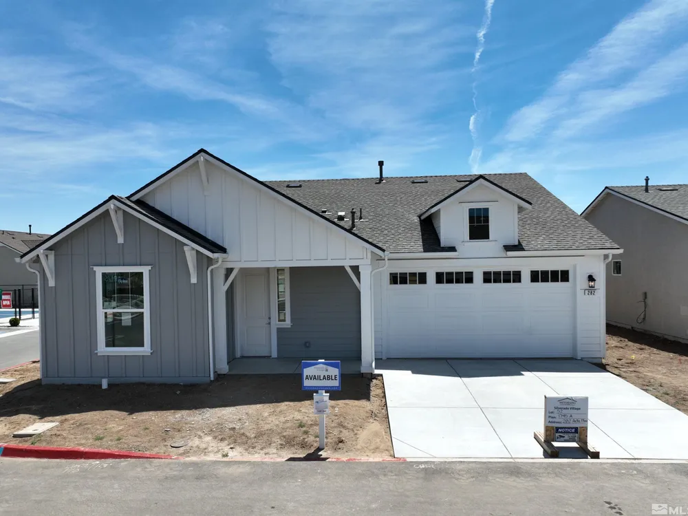 New home under construction in our brand-new gated active adult community, Silverado Village. Close in 60 days! This home has 2 bedrooms with office, covered patio, fireplace, tankless water heater, upgraded maple cabinets, lower rollout shelves in kitchen, under cabinet lighting, upper laundry cabinets, lower laundry cabinet with sink, zero threshold tiled shower in primary bath, tiled shower in secondary bath, GE stainless steel built in appliances with double oven and 5 burner cooktop, insulated garage, Buyer to select counter tops and flooring. This gated boutique community is gated and will have a 3,500+ clubhouse with fitness center and gathering area, outdoor heated resort style pool and spa, indoor aerobic pool, dedicated lifestyle and fitness director, fitness room, multi-purpose room, outdoor seating with a beautiful water wall and 8' fire pit, BBQ, dog park, dog grooming and dog wash station, paseos throughout the community. Interior photos are of the same floor plan that's being offered for sale. At this stage of construction, buyers have the opportunity to select their countertop, flooring, lighting, and plumbing fixtures. Seller does have incentives on this home using their preferred lender.