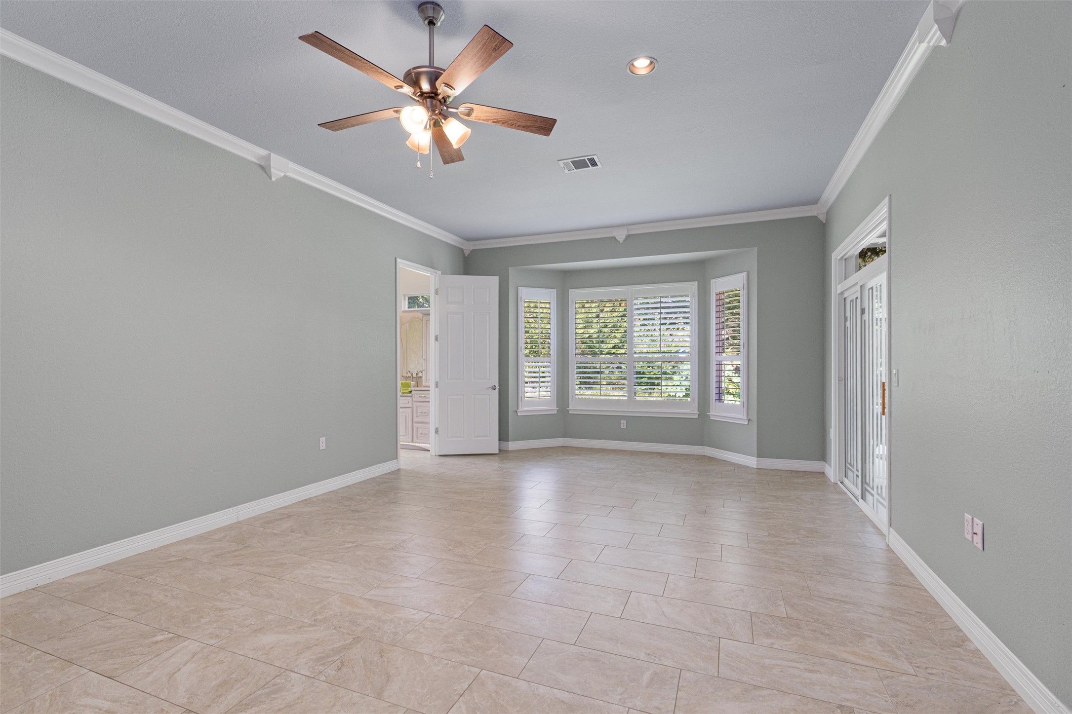 - Bookcases, Built-in Features, Ceiling Fan(s), Crown Molding, Separate/Formal Dining Room, Double Vanity, Entrance Foyer, High Ceilings, Kitchen Island, Multiple Dining Areas, Main Level Primary, Open Floorplan, Pantry, Quartz Countertops, Recessed Lighting, Study, Walk-In Closet(s)