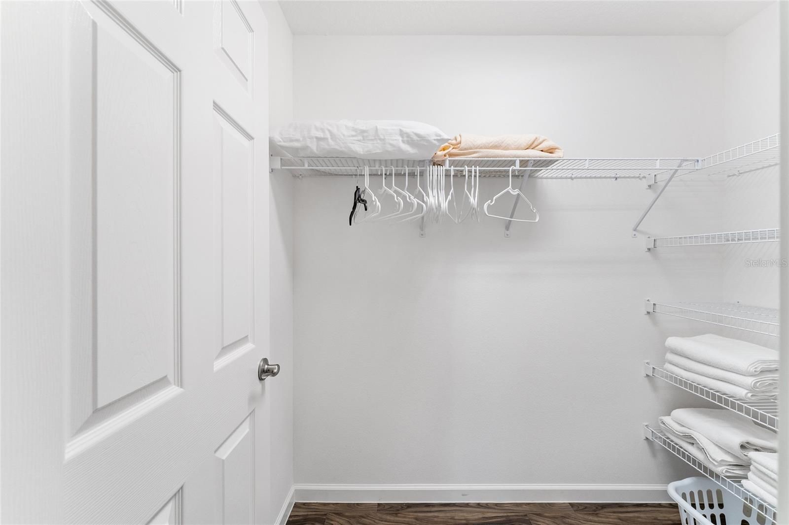- Ceiling Fan(s), High Ceilings, Living/Dining Room, Open Floorplan, Main Level Primary, Split Bedrooms, Thermostat, Walk-In Closet(s), Window Treatments