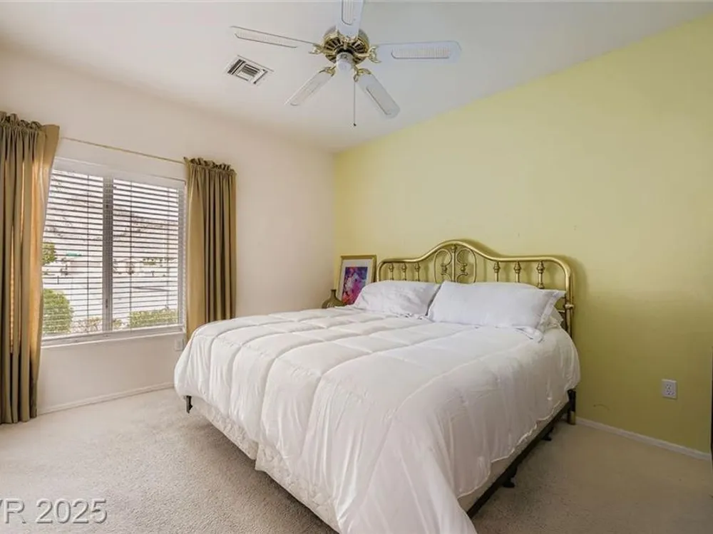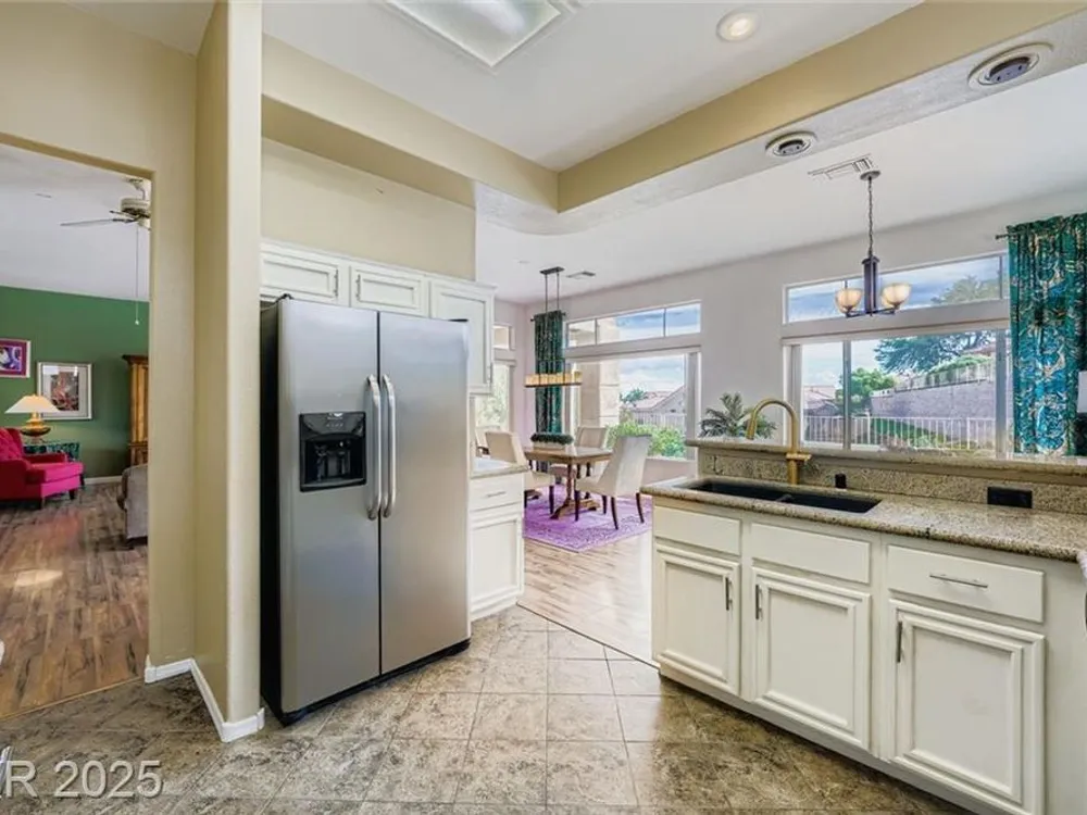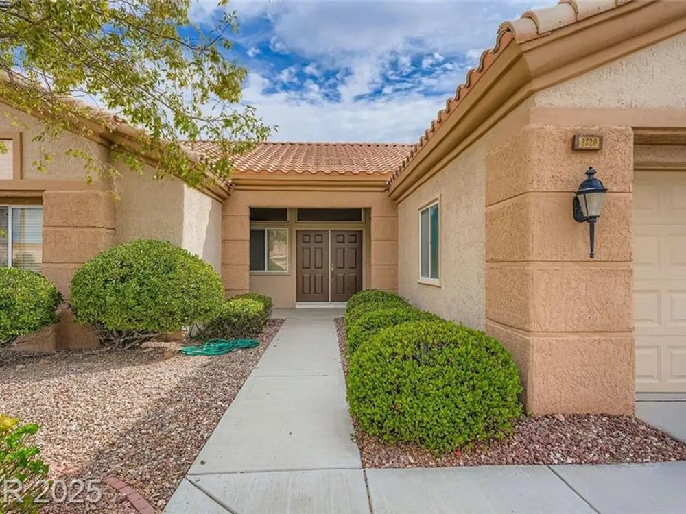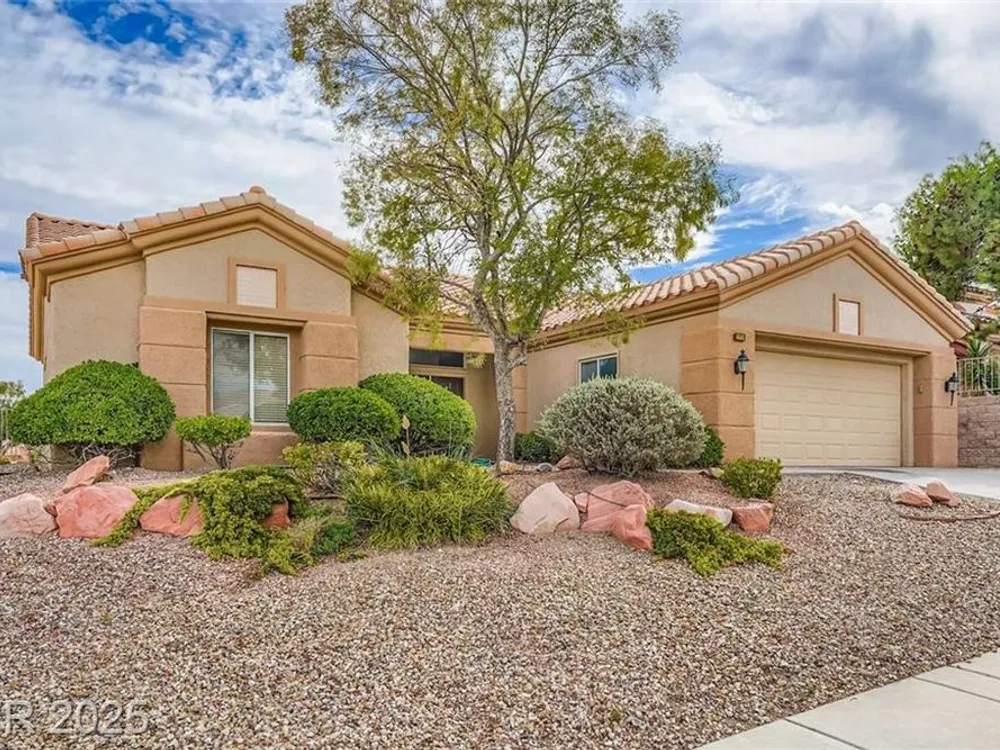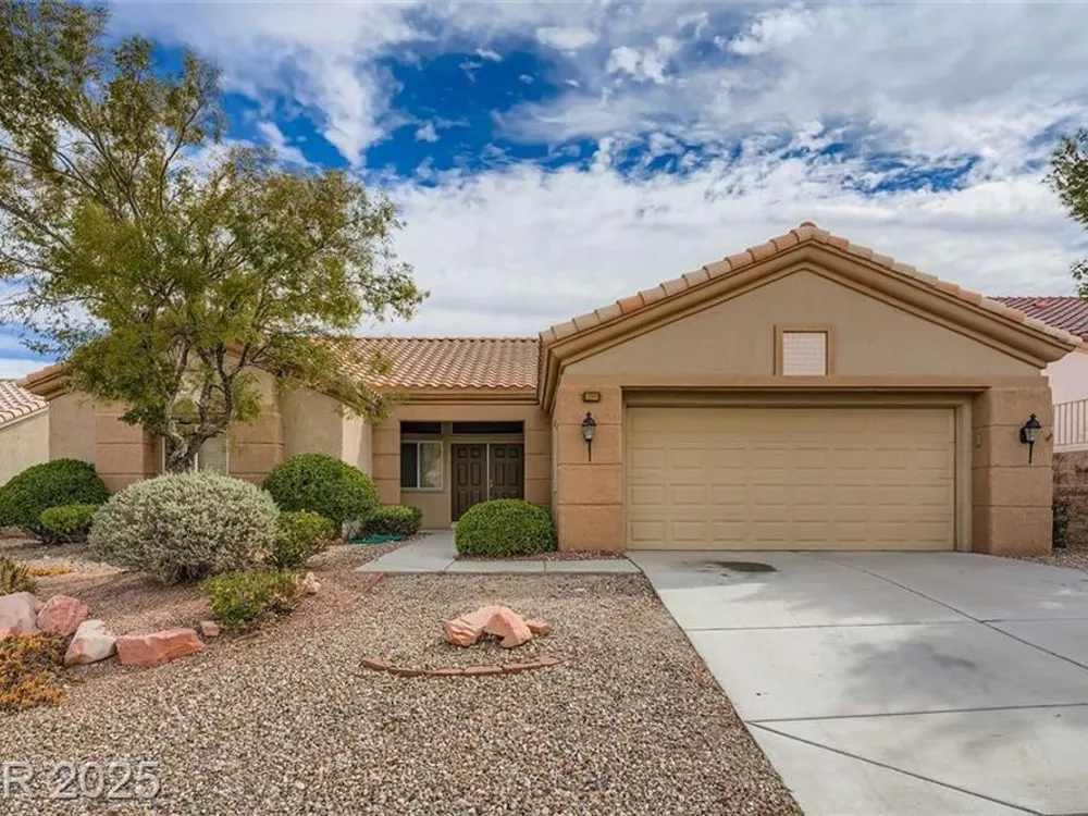 Fantastic Minden Model in Sun City Summerlin. This colorful, clean, and charming 2-bedroom, 2-bath home with a 2-car garage is perfectly situated on a raised, private lot in the west end of the community. You'll enjoy the elevated views directly from your backyard, with additional mountain views from the front. Inside, the thoughtfully designed layout features a bright and open kitchen complete with stainless steel appliances, granite countertops, ample cupboards, and a pantry. The primary suite offers comfort and convenience with dual closets (including a walk-in) and a beautifully appointed primary bath with dual sinks. The guest bathroom has been stylishly upgraded with a granite countertop and a modern, elegant sink. Plus a new water heater! Located in the premier 55+ community of Sun City Summerlin, residents enjoy access to a wealth of amenities, including clubhouses, fitness centers, 3 golf courses, indoor & outdoor swimming pools, pickleball, softball field, & over 80 clubs!