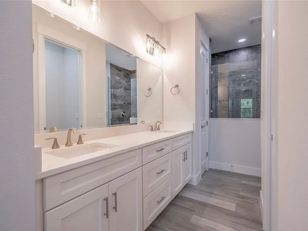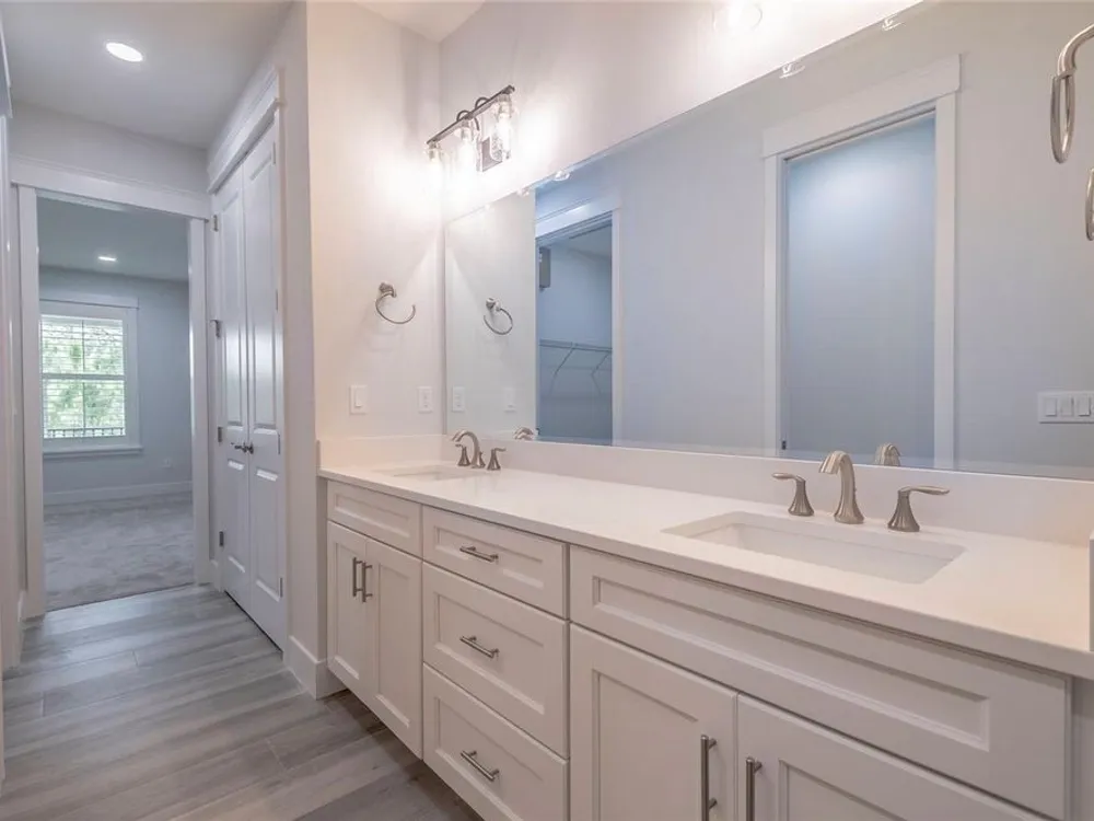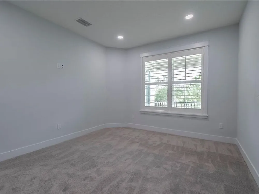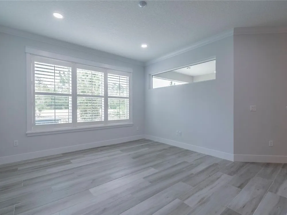 - Ceiling Fan(s), Crown Molding, Eat-in Kitchen, High Ceilings, Open Floorplan, Upper Level Primary, Solid Surface Counters, Solid-Wood Cabinets, Split Bedrooms, Thermostat, Walk-In Closet(s), Window Treatments