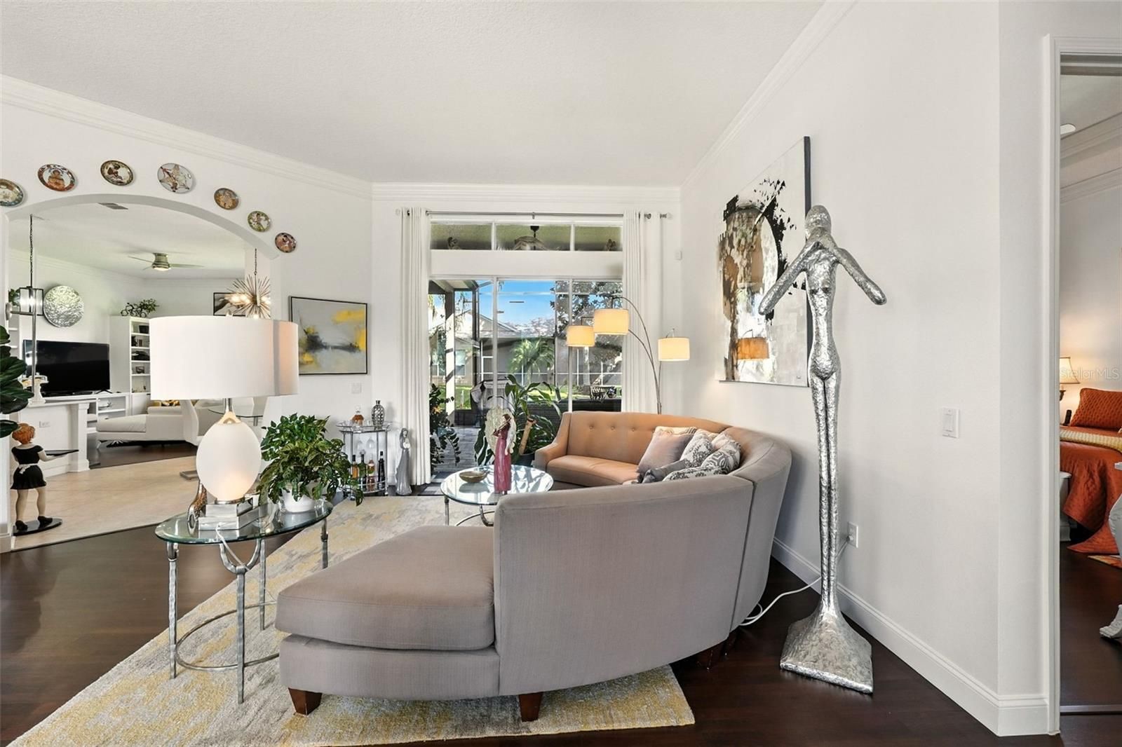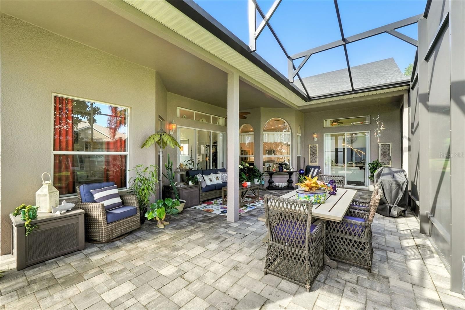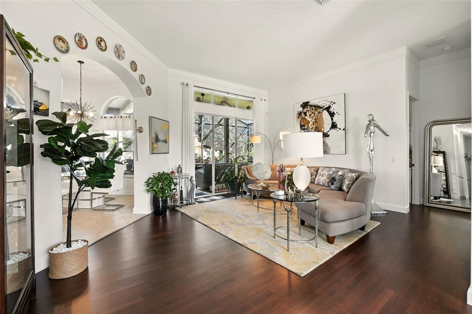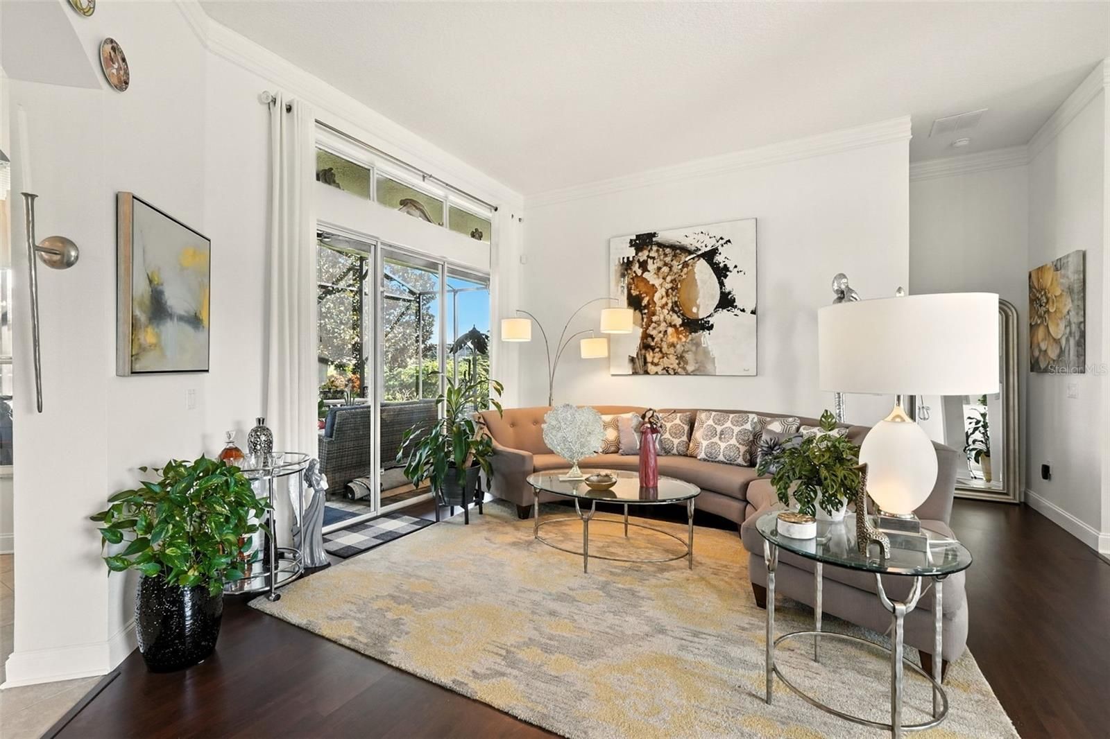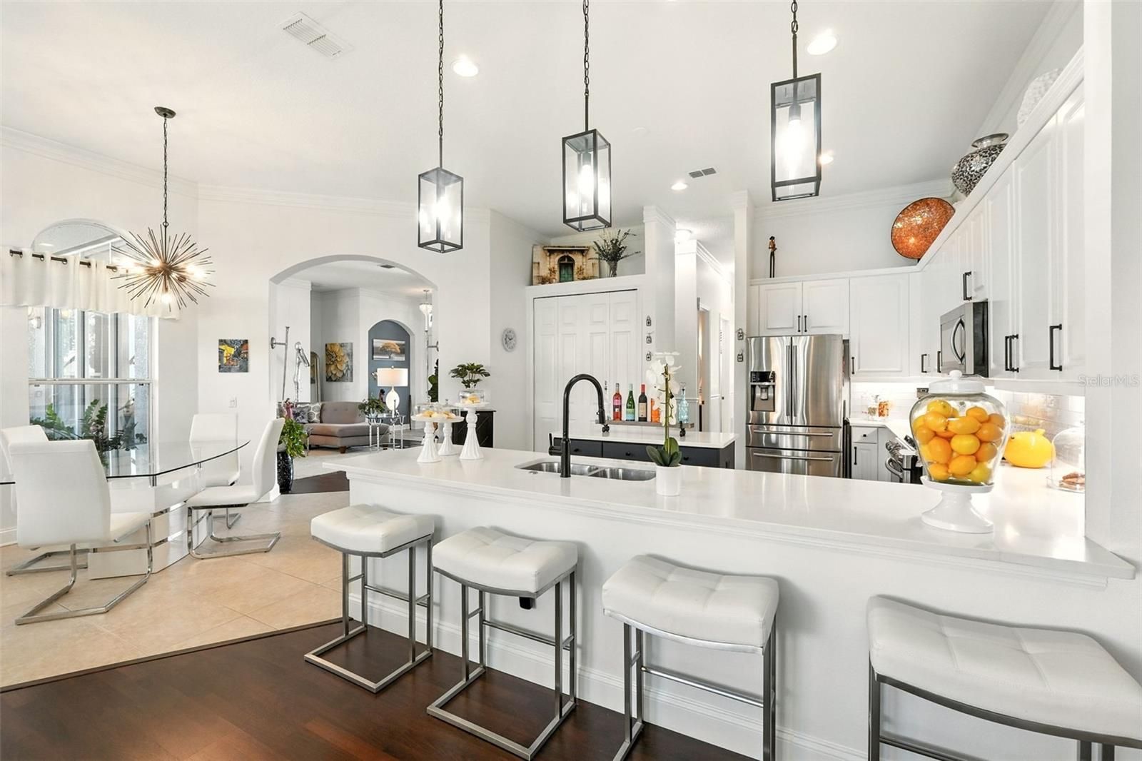 Welcome to one of the finest homes in the highly sought-after 55+ community of Summit Greens! From the moment you enter through the etched-glass double doors, you’ll be impressed by the soaring 12-foot ceilings, elegant crown molding, and rich wood flooring that set the tone for this meticulously maintained, move-in-ready home. The gourmet kitchen is a chef’s dream, featuring 42" solid wood cabinets, granite countertops, under-cabinet lighting, a spacious center island, breakfast bar, and an oversized pantry. The stove is gas. The open layout flows seamlessly into the living areas and out to the extended screened patio—perfect for entertaining or enjoying breezy Florida afternoons. The luxurious primary suite boasts a tray ceiling, dual walk-in closets, and a spa-like bath with marble countertops, dual vanities, a large soaking tub, and a walk-in shower with a seat. An additional bonus room offers flexible space for a home office, den, or hobby room. Summit Greens offers a vibrant active-adult lifestyle with a guarded gate, full lawn maintenance, indoor & outdoor heated pools, tennis, golf, fitness center, social clubs, and more—all just 20 minutes from Disney and Orlando attractions yet nestled in the tranquil rolling hills of Lake County. This home truly has it all—luxury, comfort, and an unbeatable location. Don’t miss it!