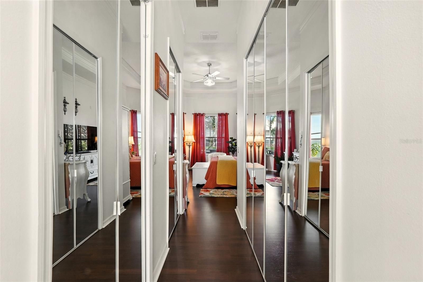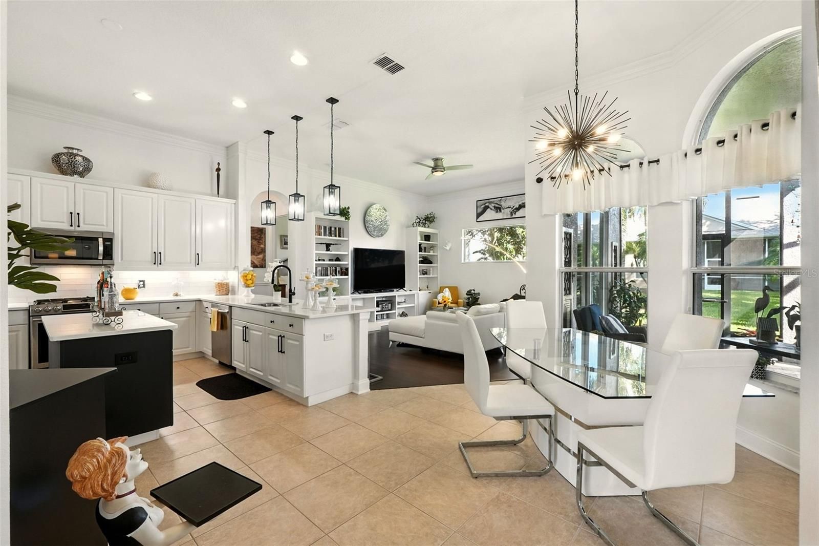 - Cathedral Ceiling(s), Ceiling Fan(s), Crown Molding, Eat-in Kitchen, High Ceilings, Kitchen/Family Room Combo, Open Floorplan, Main Level Primary, Solid-Wood Cabinets, Split Bedrooms, Stone Counters, Thermostat, Tray Ceiling(s), Vaulted Ceiling(s), Walk-In Closet(s)