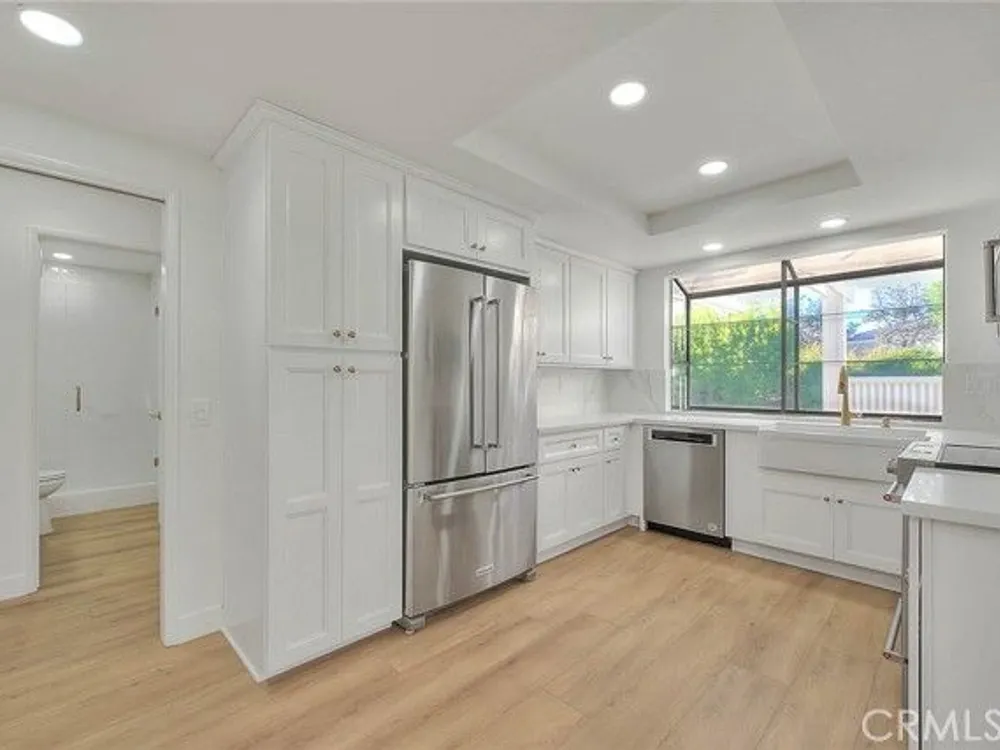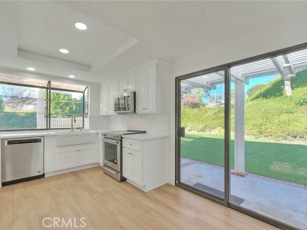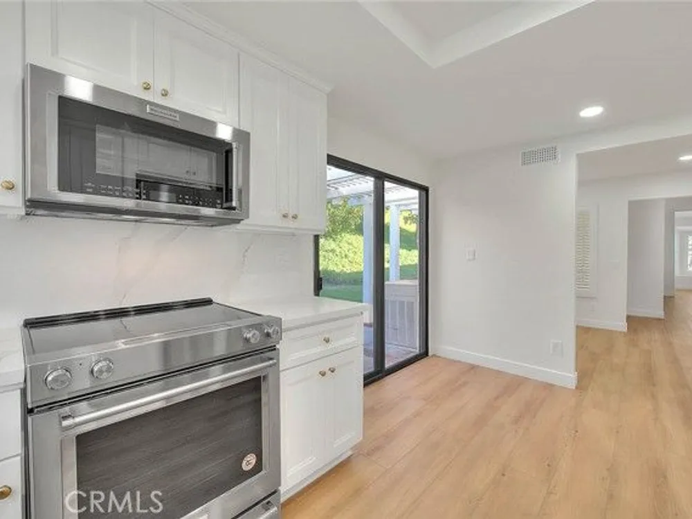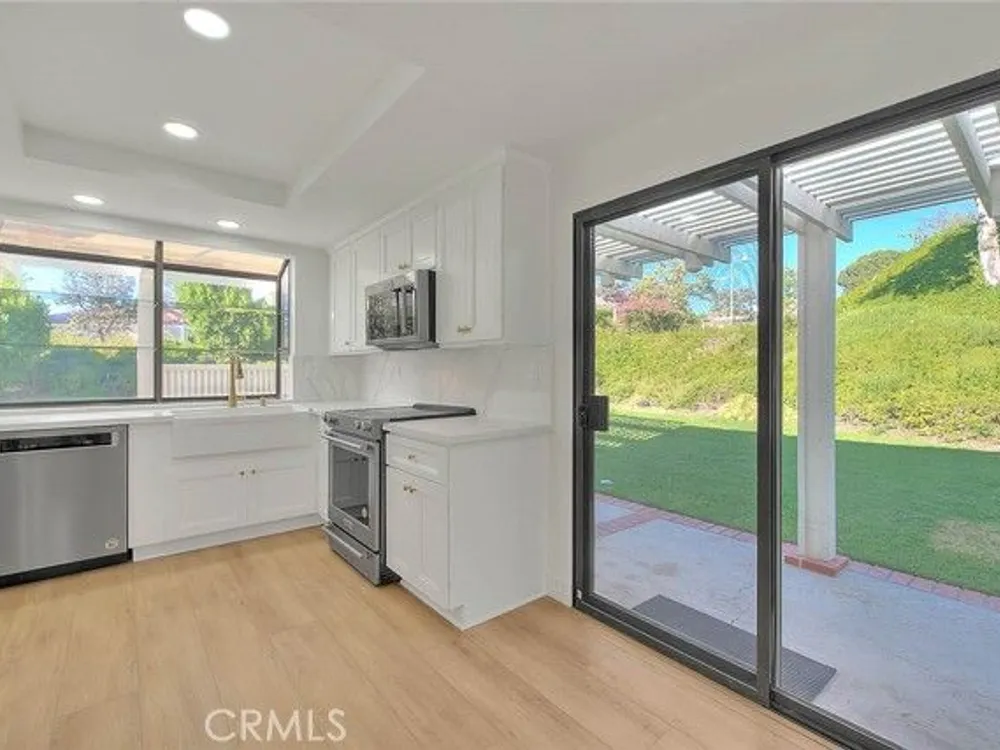 Casta Del Sol Stunner! Welcome home to this tastefully remodeled 2 bedroom/2 bath plus den home located in the Prestigious gated 55+ community! LOCATION, LOCATION, LOCATION! This desirable SINGLE story property is peacefully tucked away on a quiet cul-de-sac, located at the end of the street with lovely lush greenbelts surrounding the home. A very private and serene setting you will enjoy! Wrap around covered patio is perfect for enjoying the outdoor setting that this particular property features. Light and bright freshly painted interior greets you as you enter the home, high ceilings create a lovely open feeling to the space. The living room showcases a dramatic floor to ceiling brick fireplace. Brand new luxury plank vinyl flooring enhances the entire interior of the home along with LED lighting throughout, new baseboards, new ceiling fans and other lighting fixtures, new door hardware plus more! Situated off the living room is a wonderful space that would make a peaceful retreat, den or perfect for a home office, an abundance of natural light and large bay window create an inviting setting. The floorplan features a formal dining room and also an atrium, the atrium is behind double French doors and has new flooring. Tastefully, remodeled kitchen boasts new cabinetry, farmhouse sink, new stainless steel kitchen appliances, quartz counters and decorative backsplash. There is space for informal secondary dining in the breakfast nook within the kitchen. The primary bedroom is generous in size and features on-suite bathroom and a nicely sized walk in closet. Both bathrooms have been upgraded with new flooring, new vanities, new toilets, faucets, mirrors, shower valves and the primary bathroom has a new frameless shower door, guest bathroom also has new shower doors. Both bathrooms done in soothing white shades regarding the vanity, wall color and shower tile. 2 car garage has an abundance of storage cabinetry as well as additional overhead pull down storage. This community features so many wonderful amenities for its residents, access to nearby Lake Mission Viejo, community pool and spa, outdoor cooking areas, picnic areas, sports courts, billiards, recreational room, library, tennis courts, pickle ball and MORE!!!! For the golf enthusiast Oso Creek Golf Course borders this amazing community. A fabulous place to live and play, all within the gated security of this amazing development!