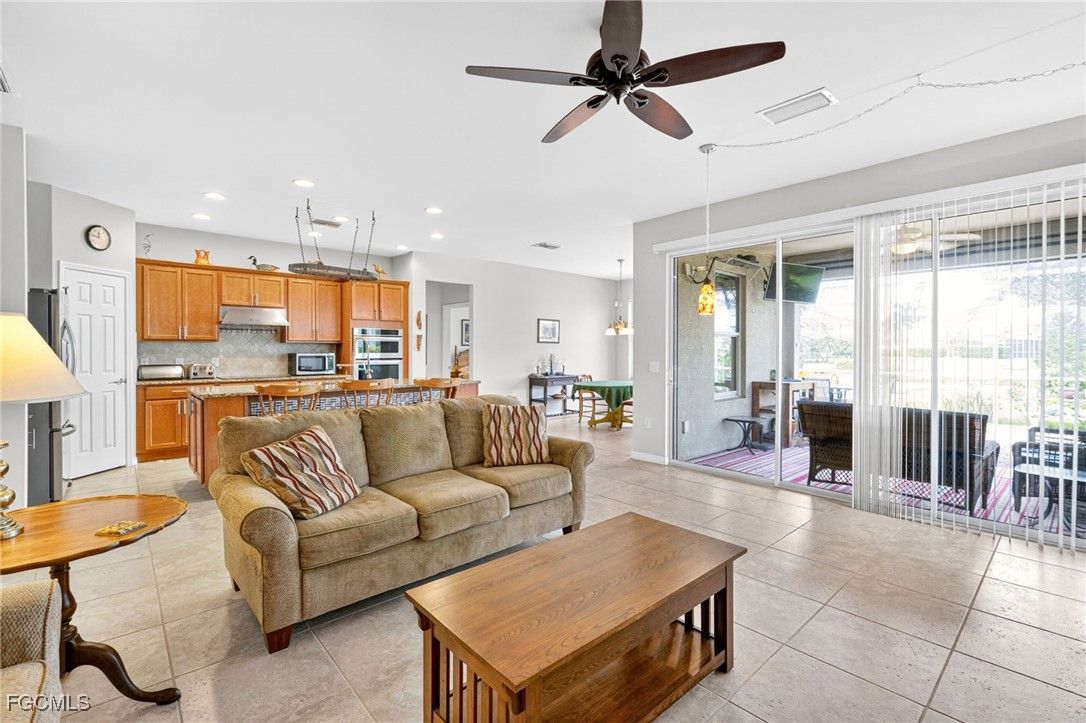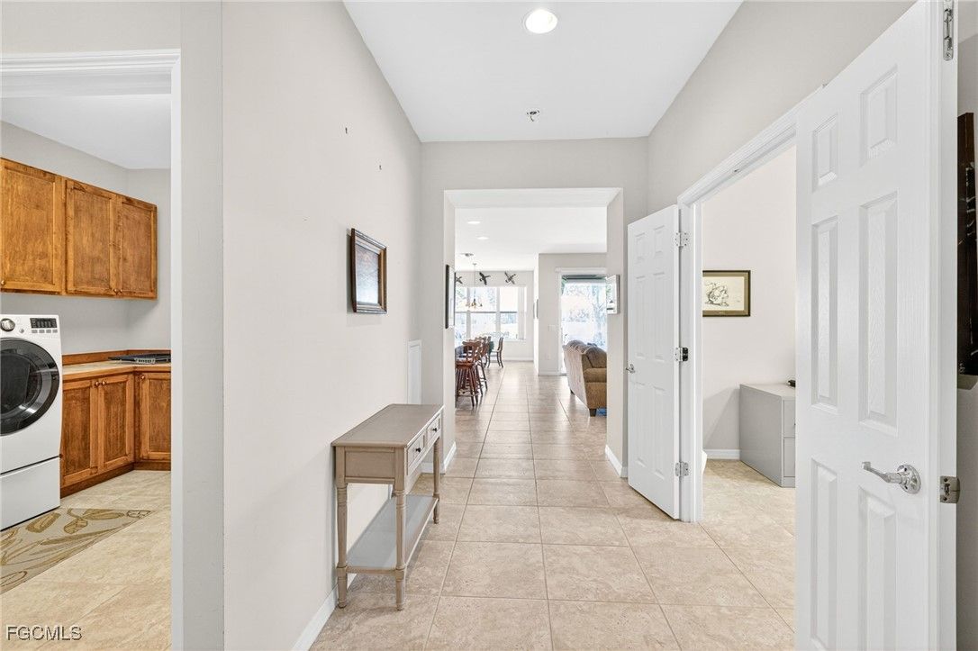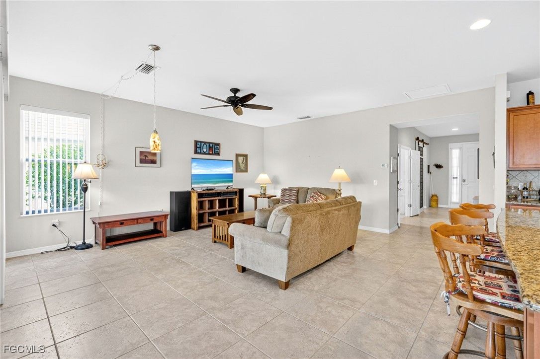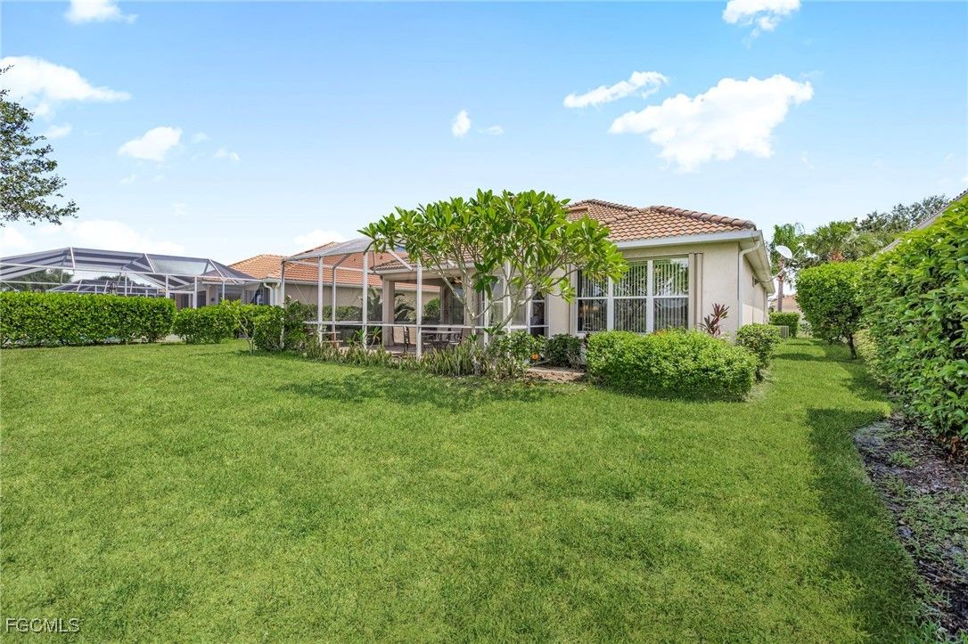 NEW LOWER PRICE — MOVE-IN READY AND PRICED TO SELL! Fully furnished and ready for immediate enjoyment, this beautifully maintained one-story home delivers effortless luxury with 1,920 sq. ft. of refined living space. Designed for comfort and tranquility, it offers 2 bedrooms plus a versatile flex room — ideal for guests, a home office, or a quiet retreat. The open-concept layout connects the spacious living area with a modern kitchen, perfect for entertaining or casual everyday living. Expansive lake views fill the space with natural light, creating a serene, welcoming ambiance throughout. Situated in a secure, no-flood zone community, this home features accordion hurricane protection, automatic shutters, and a screened lanai with a remote-control shade — the ultimate spot for peaceful mornings or sunset relaxation. Upgrades include stylishly renovated bathrooms, durable flooring, and an oversized garage complete with custom shelving and a built-in workbench. Offered fully furnished, non-smoking, and pet-free, this turnkey residence blends luxury, safety, and ease — a rare find for those seeking refined comfort in Bonita Springs. Highlights: - Open-concept kitchen & living area with lake views - Flexible den for guest room or office use - Secure, gated, no-flood zone community - Accordion hurricane protection & automatic shutters - Screened lanai with remote-control shade - Upgraded bathrooms & durable flooring - Oversized garage with custom shelving & workbench - Turnkey furnished, non-smoking, pet-free - Will remove any future not wanted